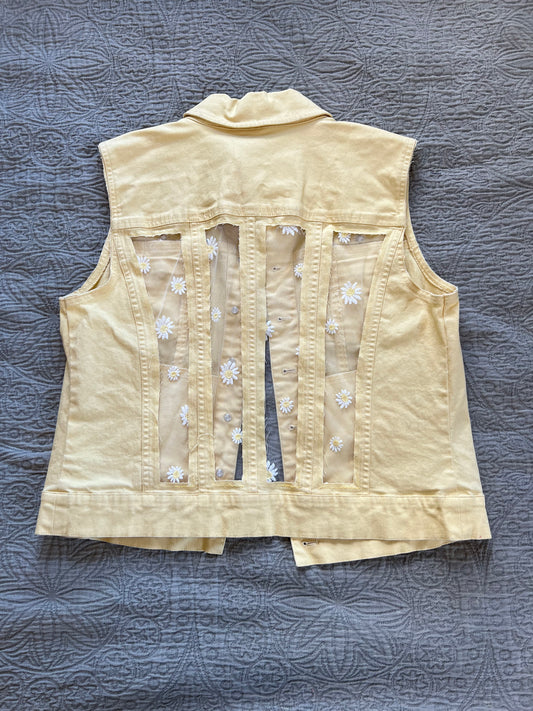 Cropped Green Denim Appliqué Wildflowers [XL]
