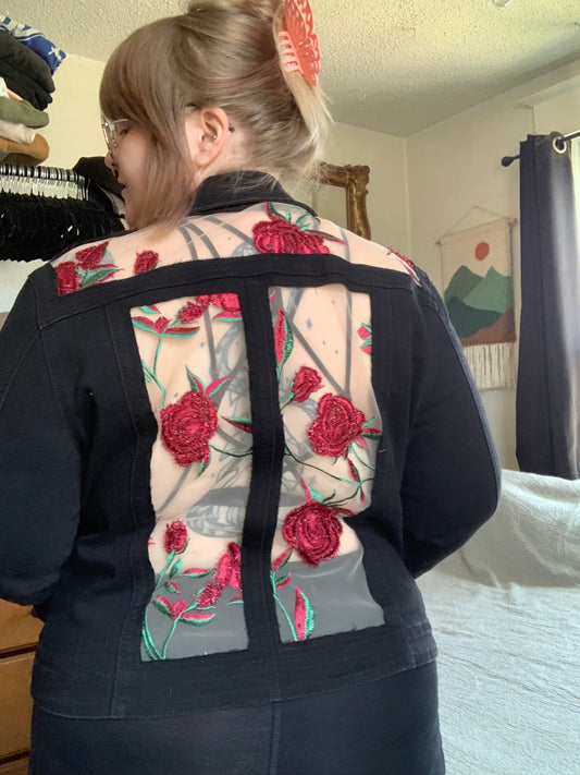Embroidered Black Denim Roses Jacket [1X]Regular price $90.00 USDRegular priceUnit price / per-