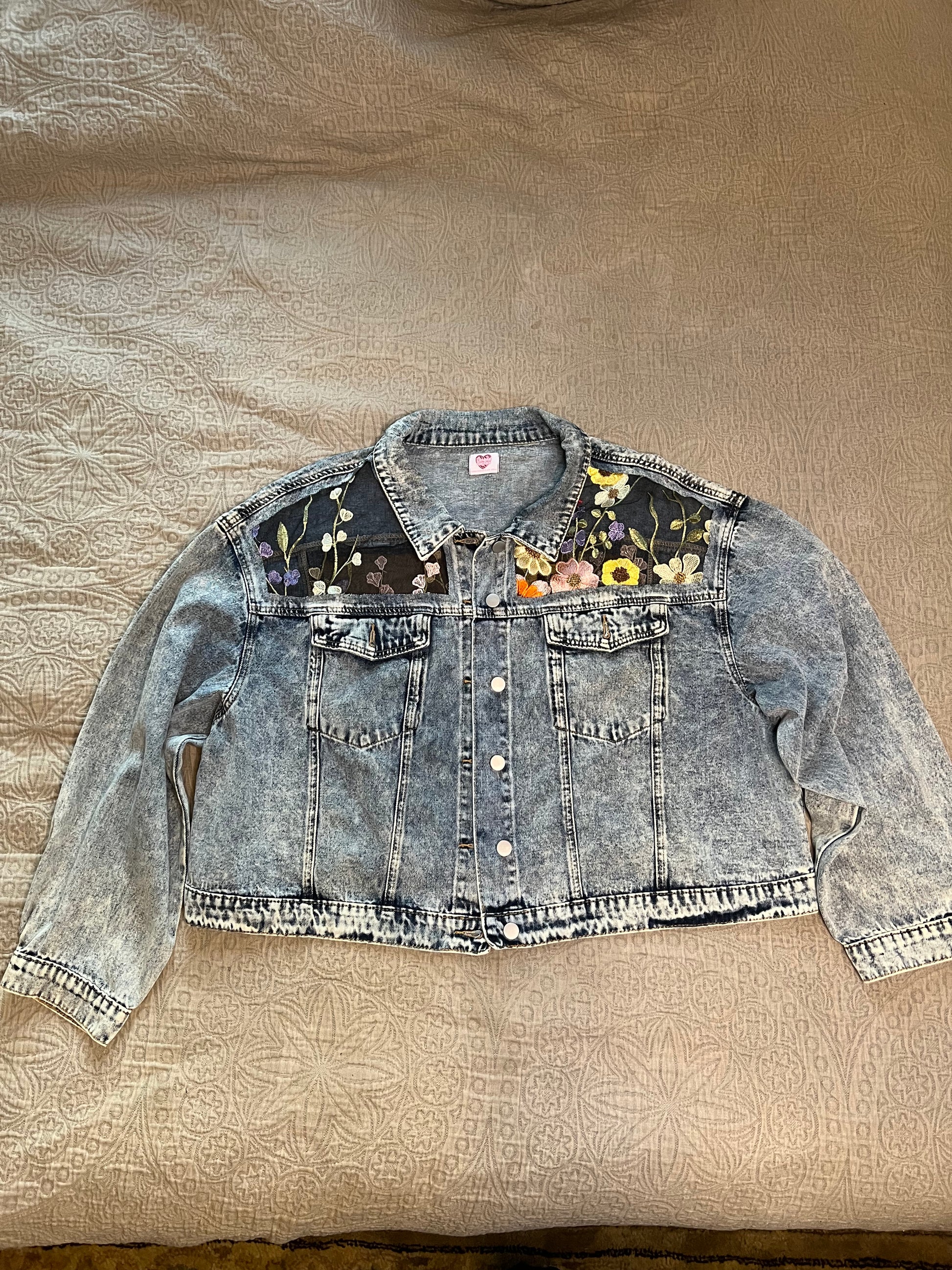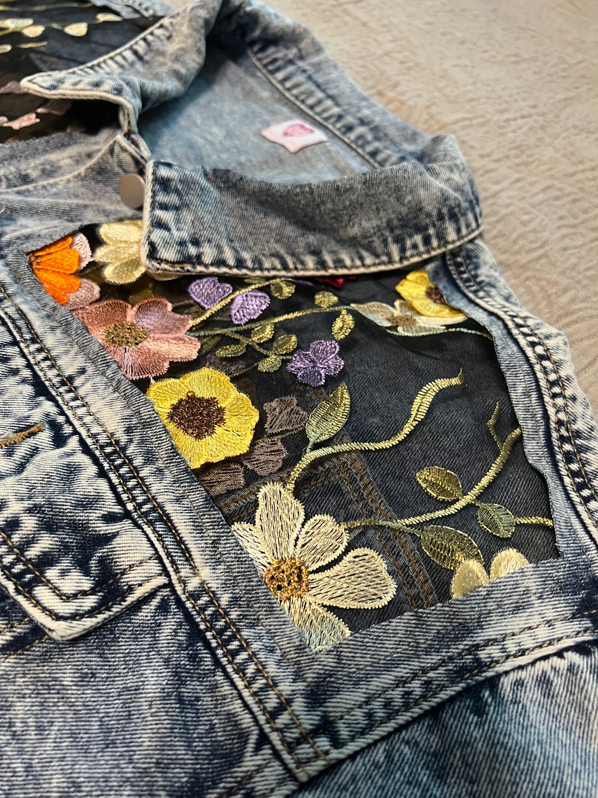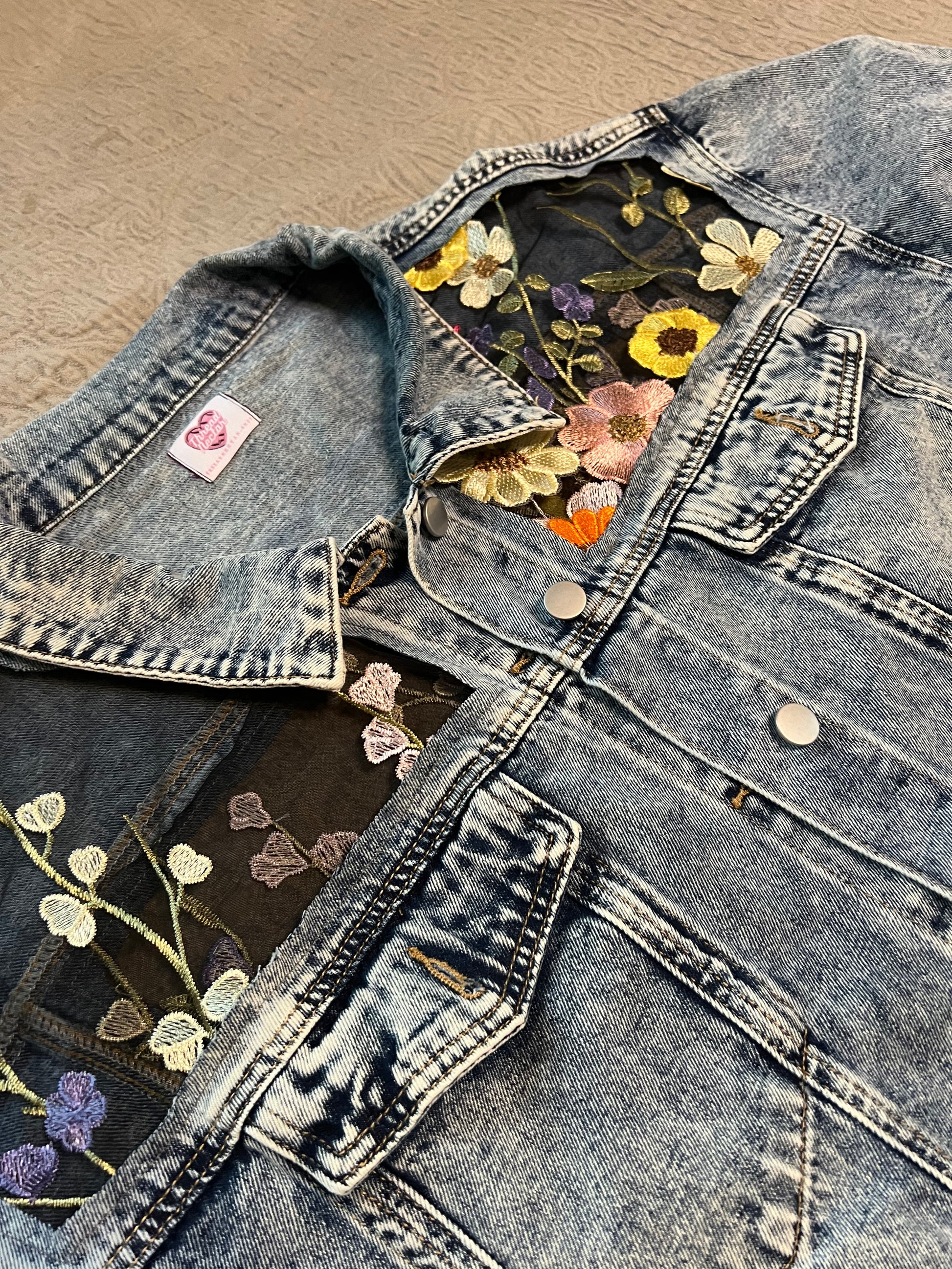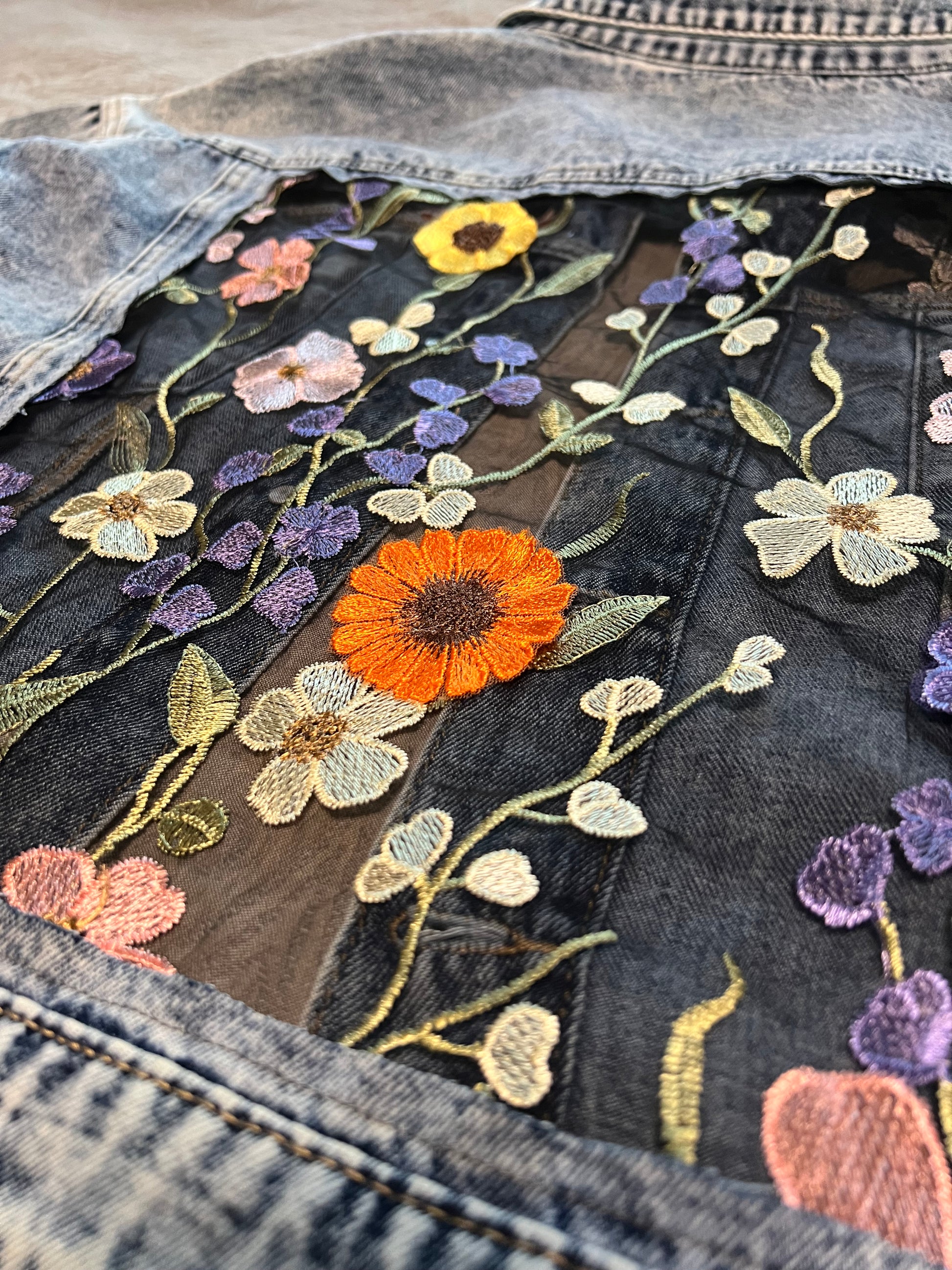 Acid Wash Cropped Denim Wildflowers Jacket [4X]