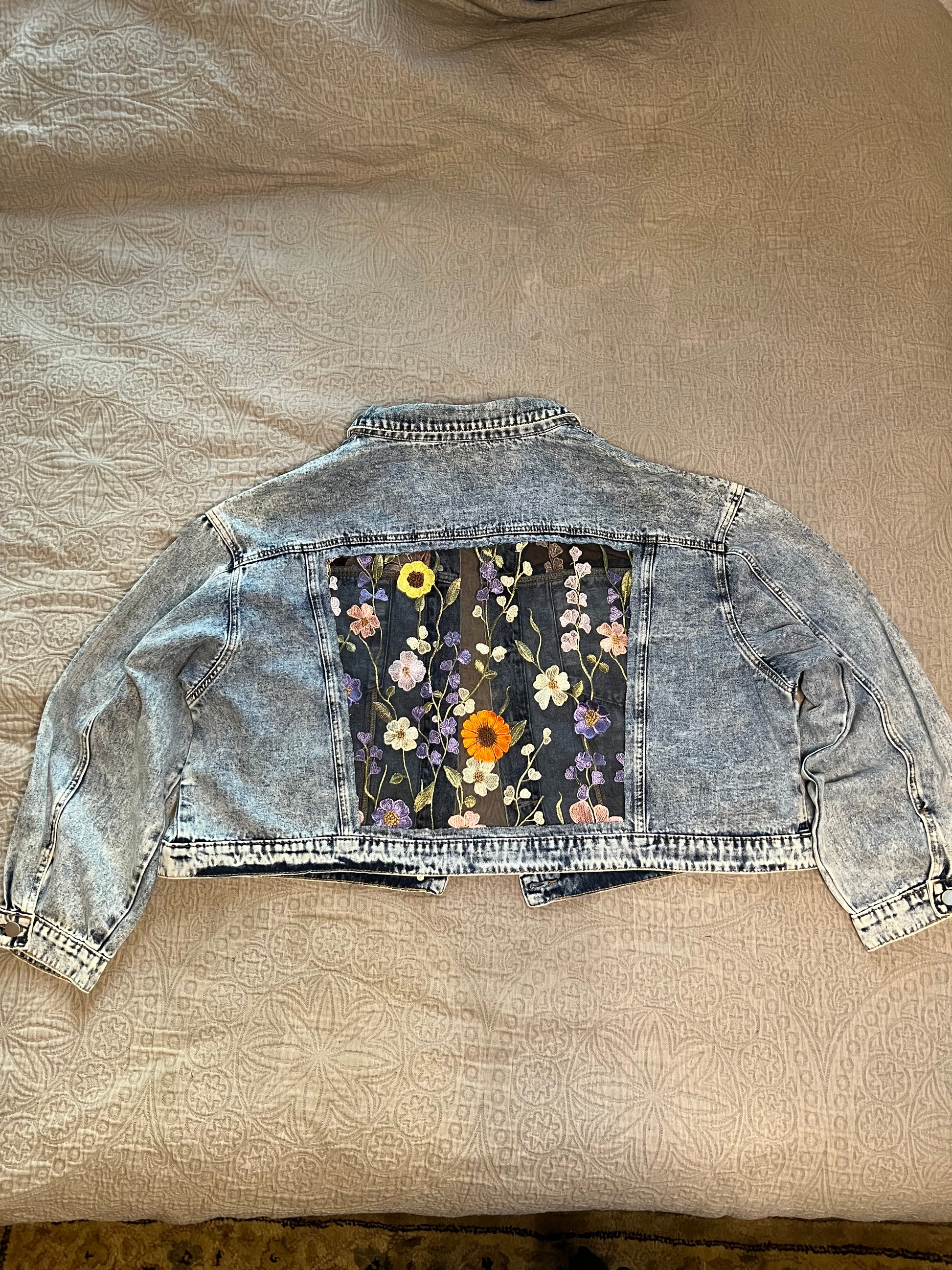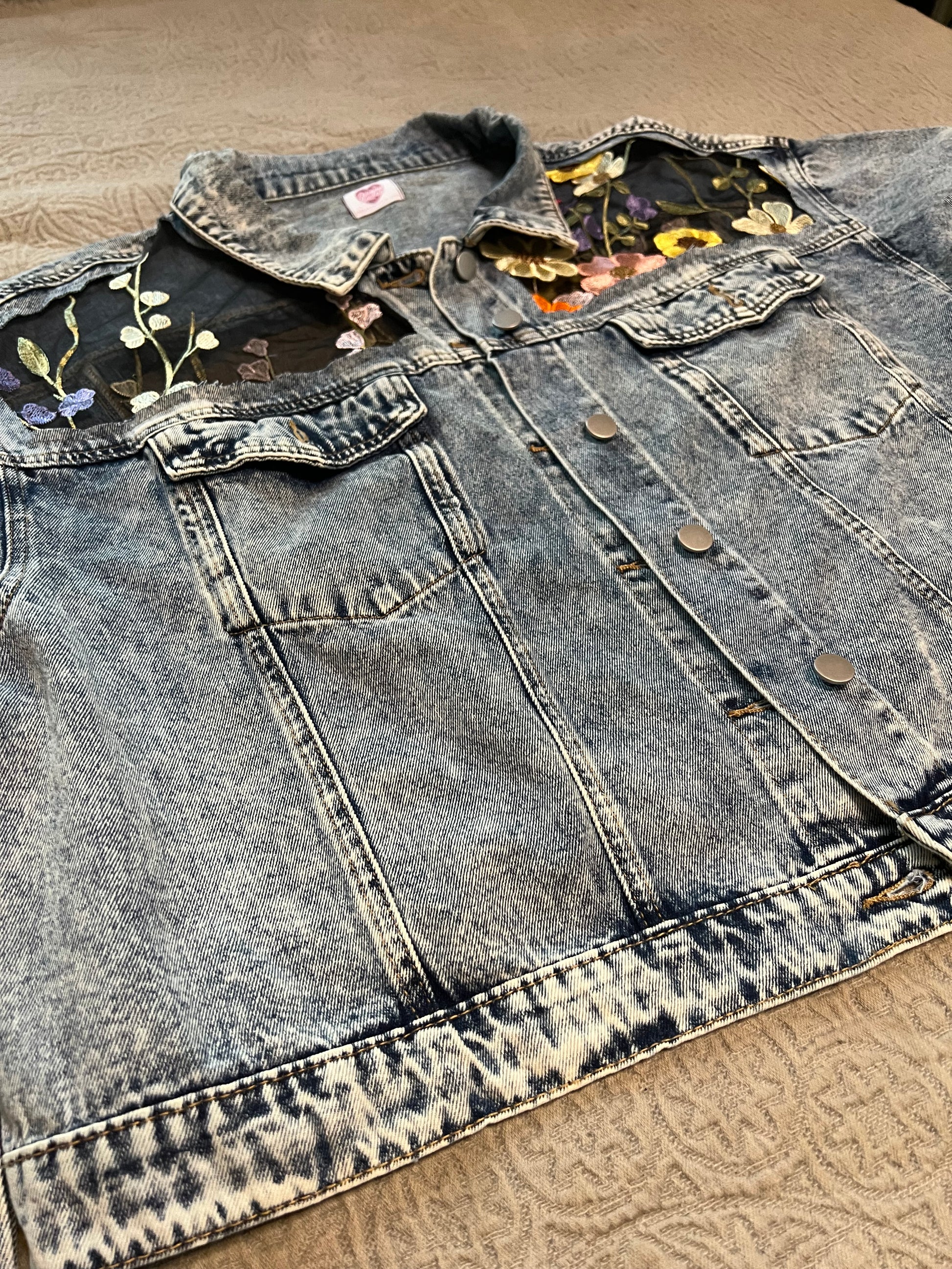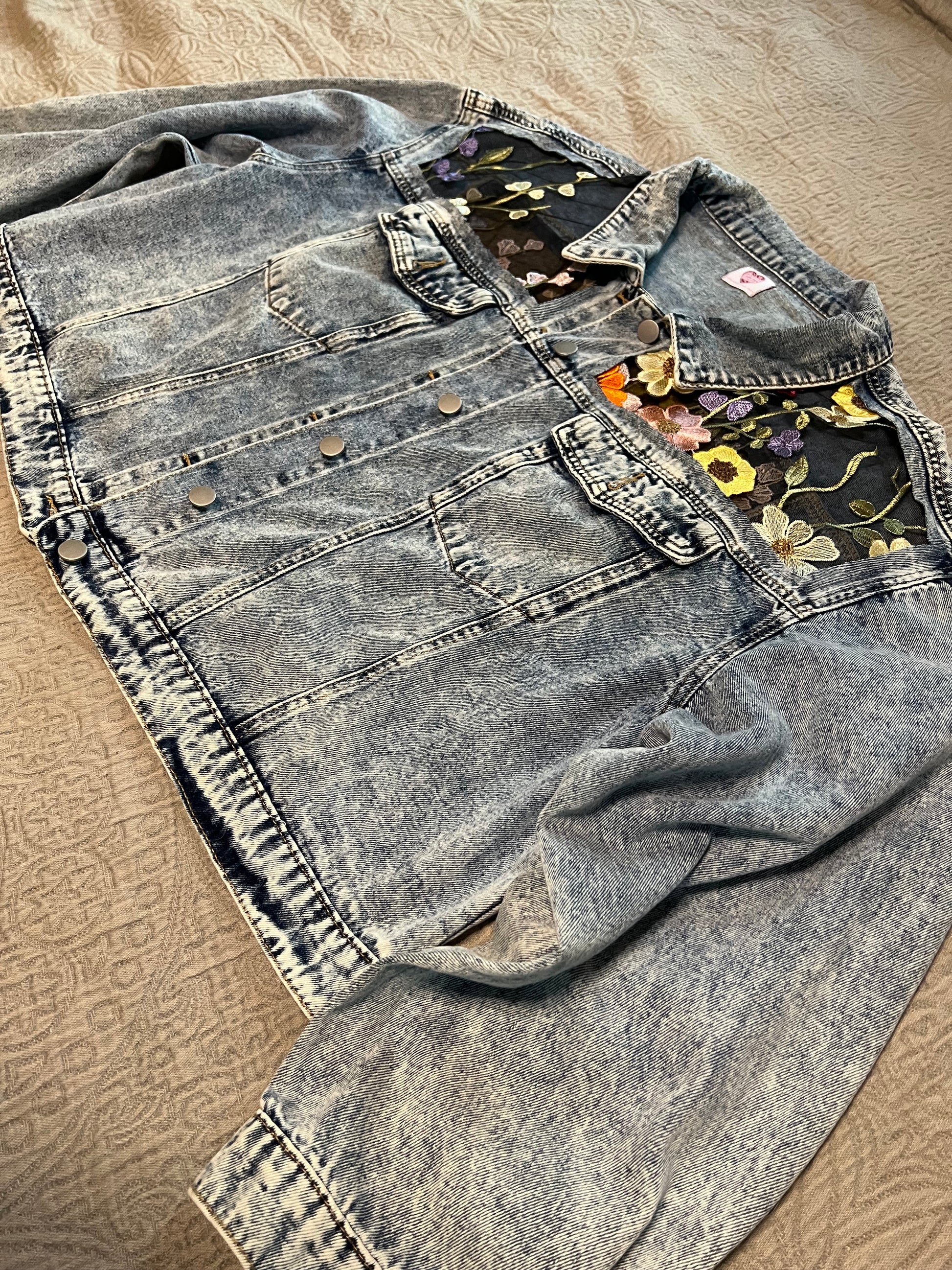Acid Wash Cropped Denim Wildflowers Jacket [4X]