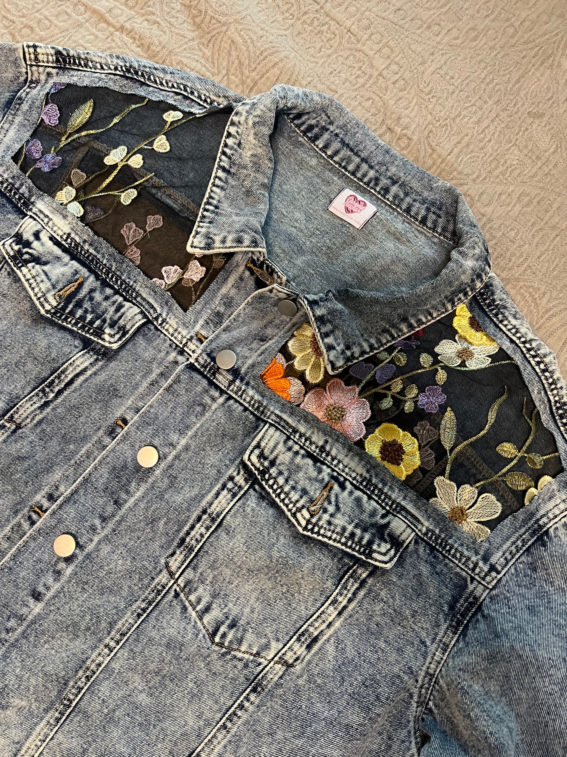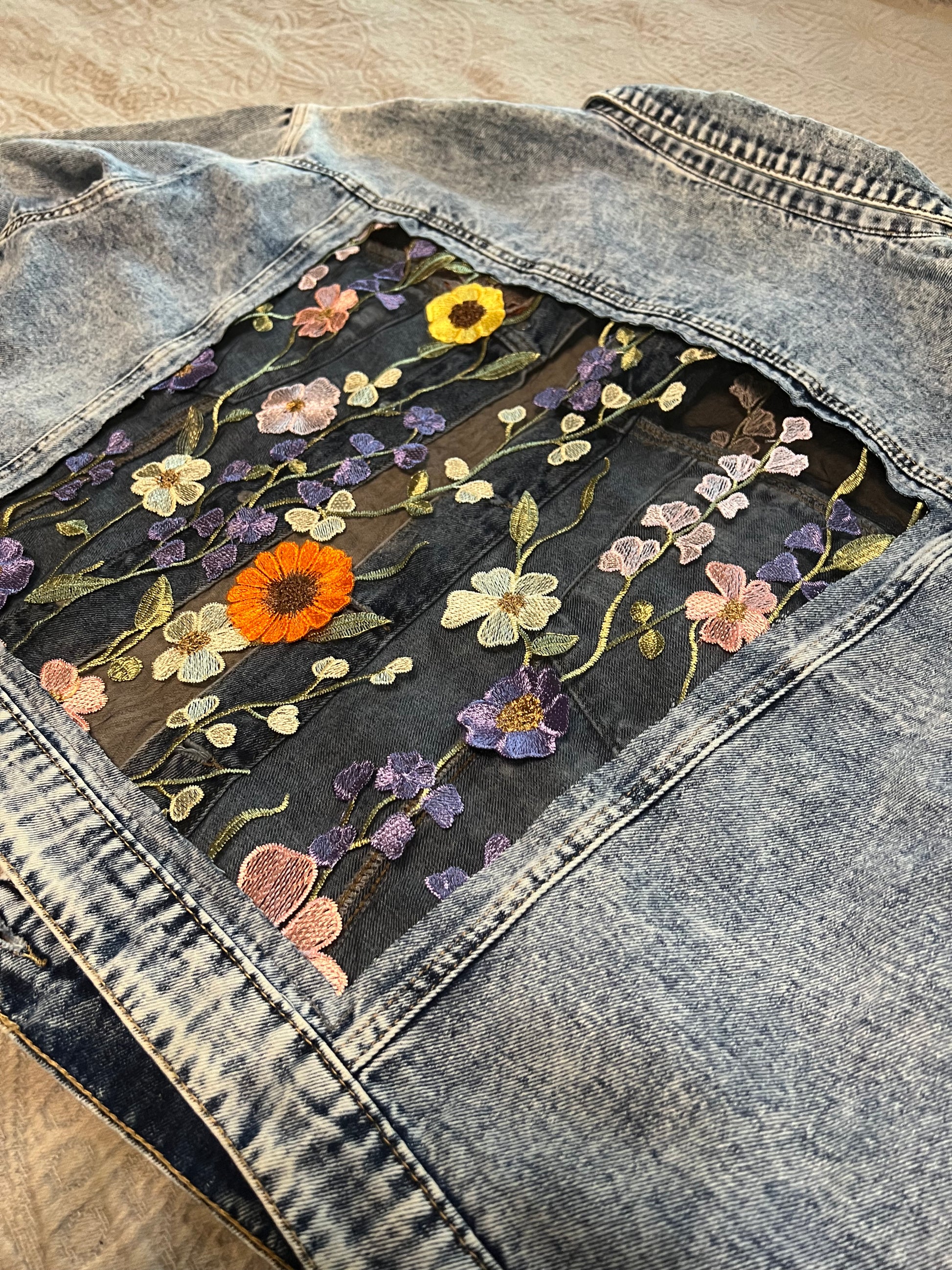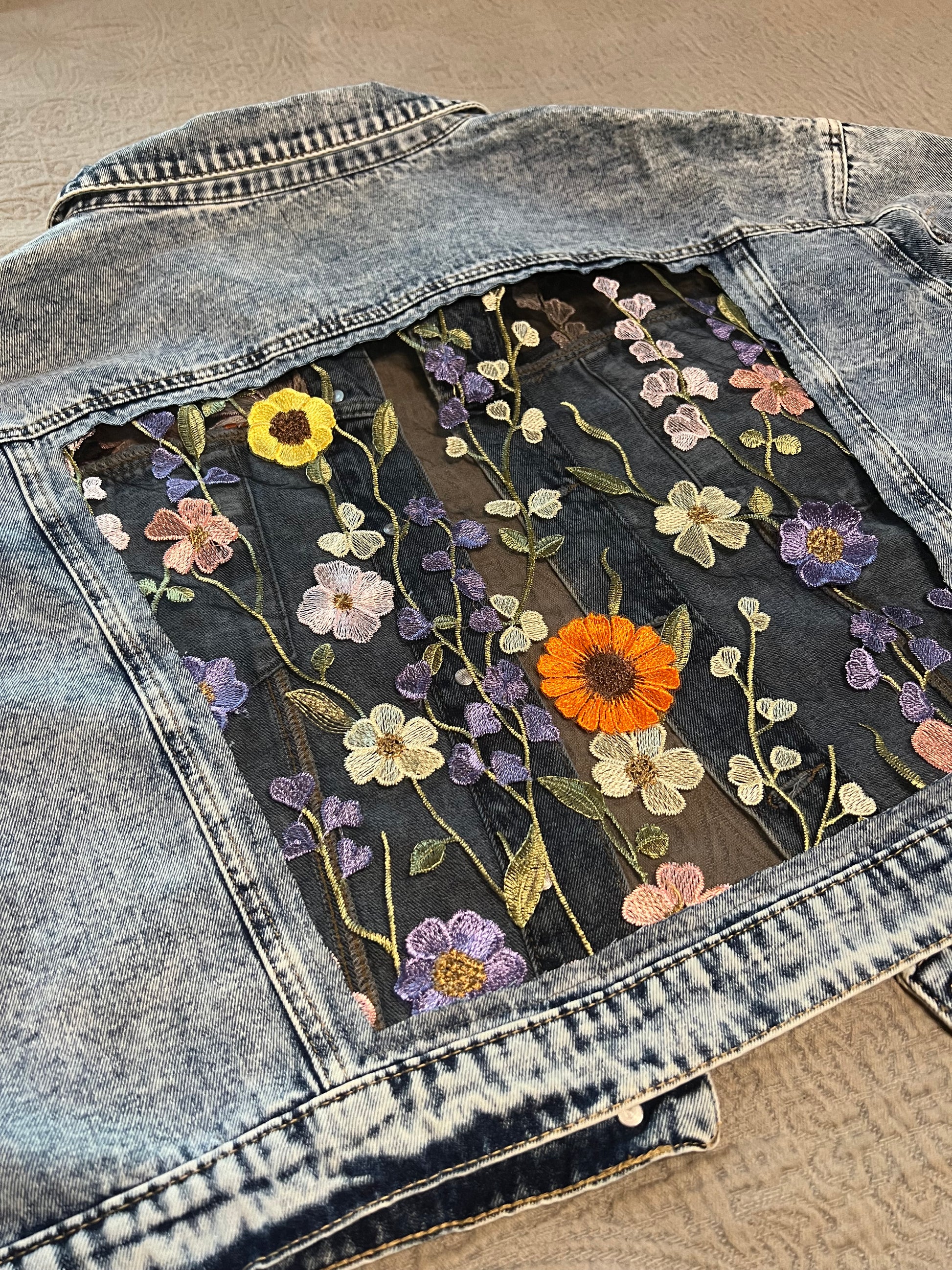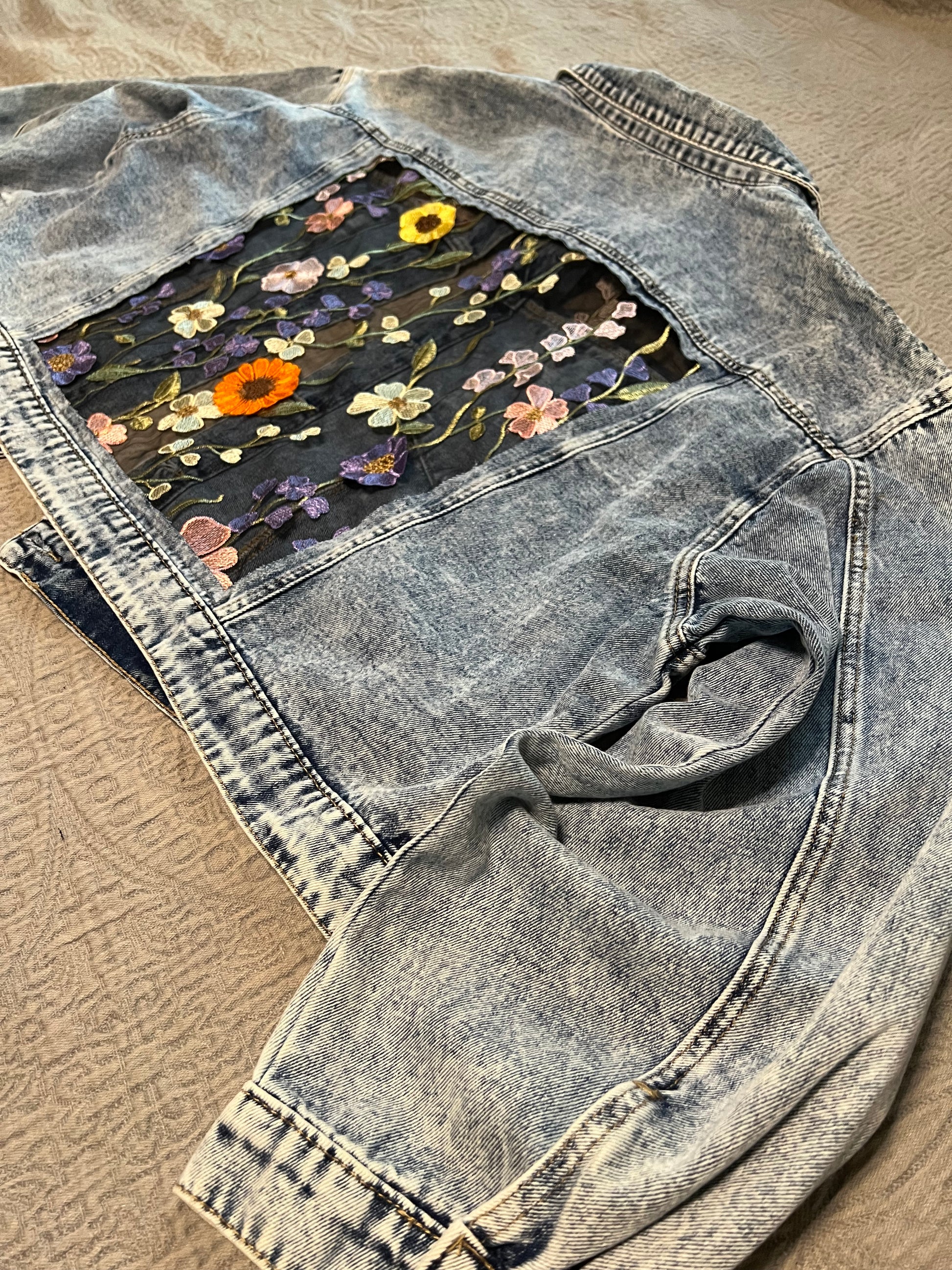 Acid Wash Cropped Denim Wildflowers Jacket [4X]