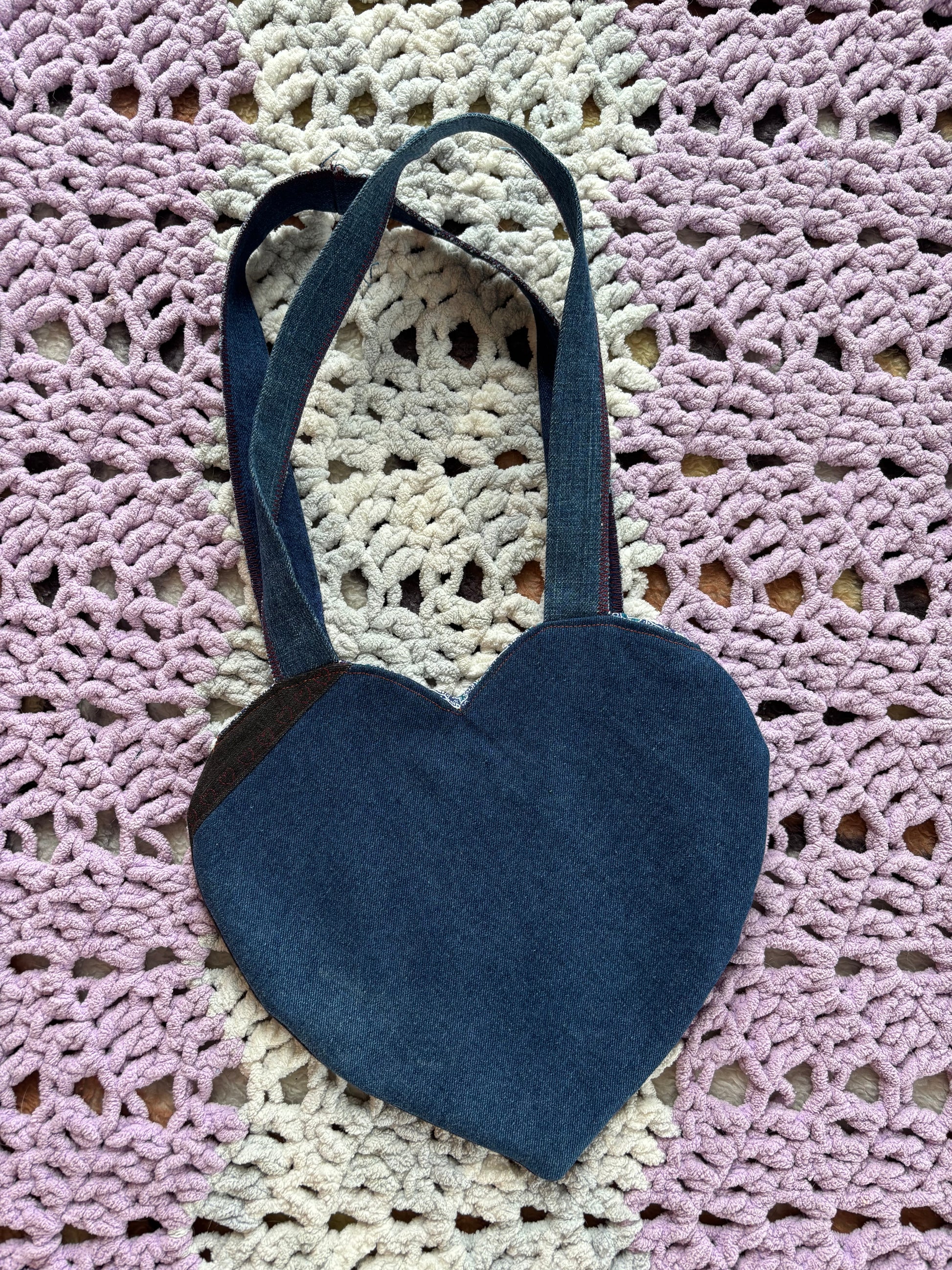 With tons of designing and love I bring you sustainable heart bags made from the scrap denim from making jackets and reclaimed lining fabrics from estate sales, thrift stores and clothing that would've otherwise been in the landfill 💜