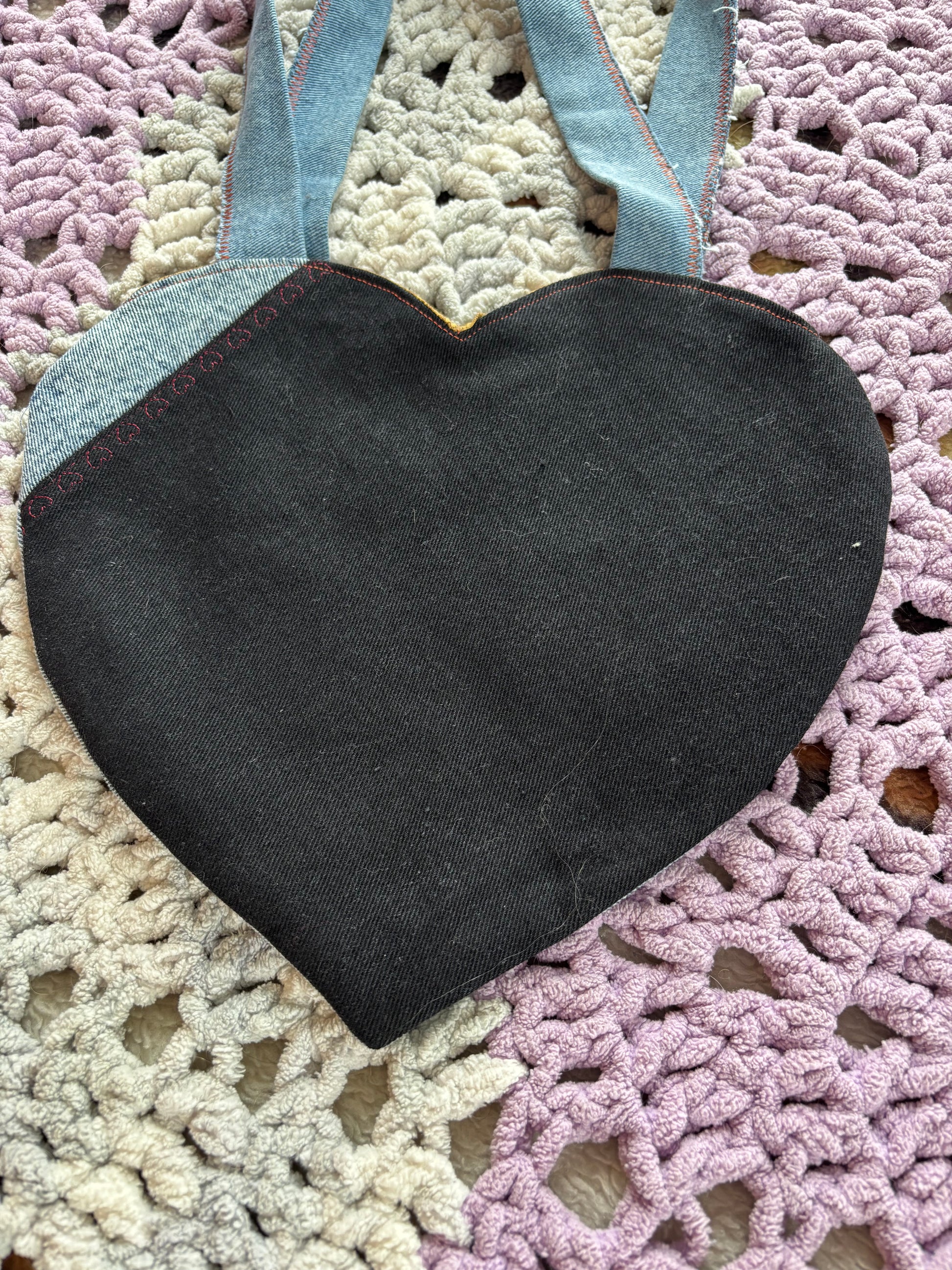 With tons of designing and love I bring you sustainable heart bags made from the scrap denim from making jackets and reclaimed lining fabrics from estate sales, thrift stores and clothing that would've otherwise been in the landfill 💜