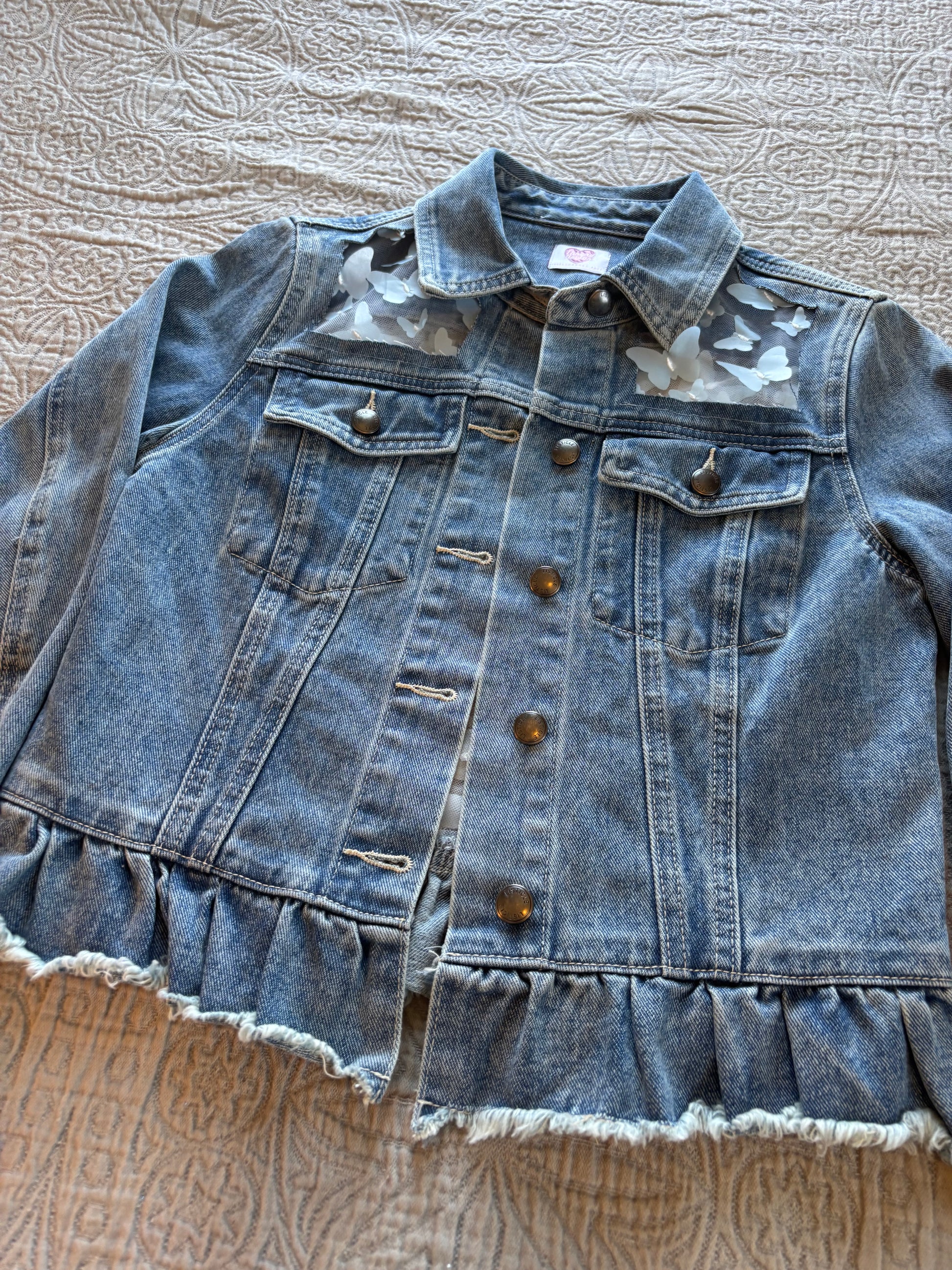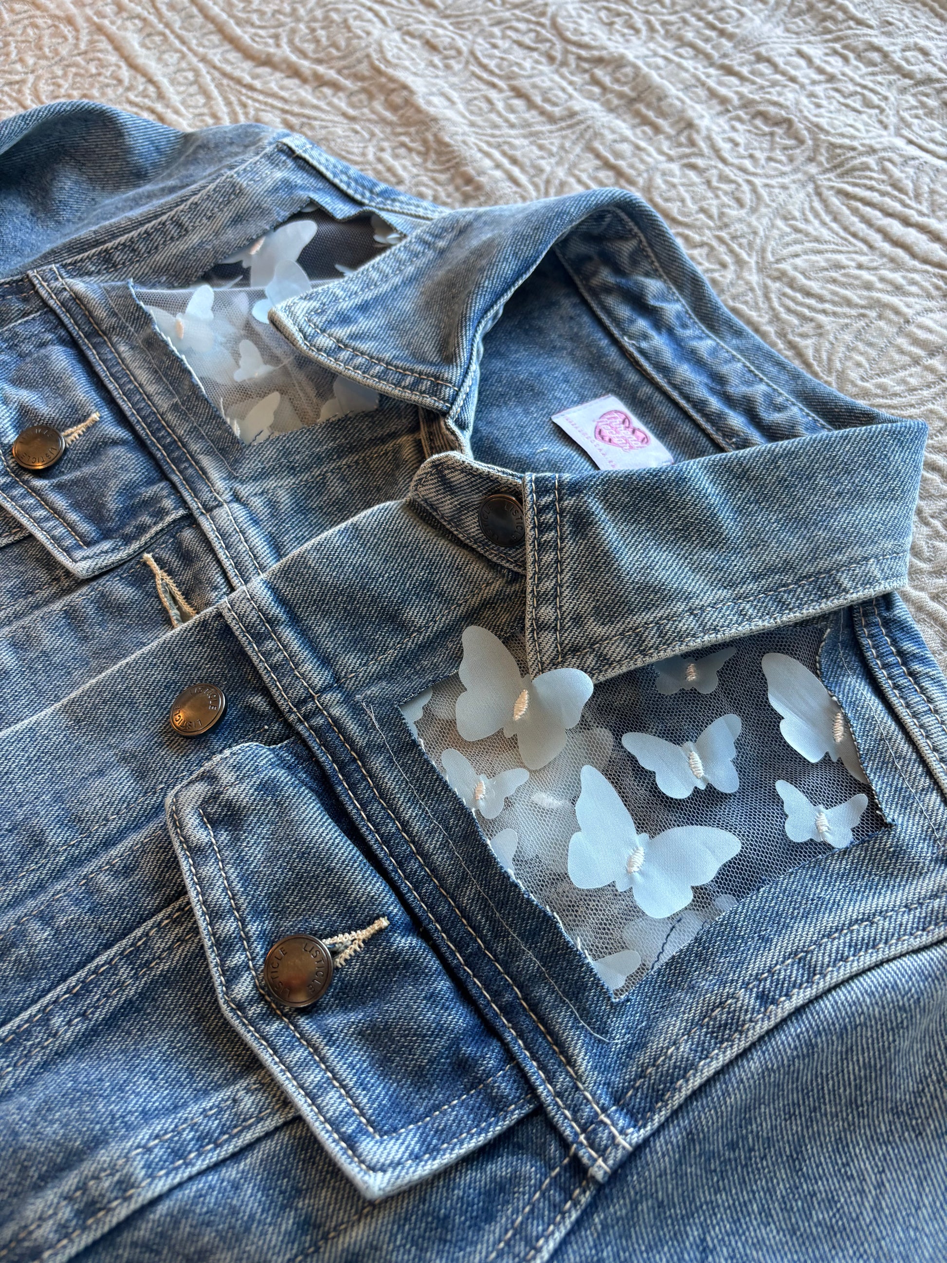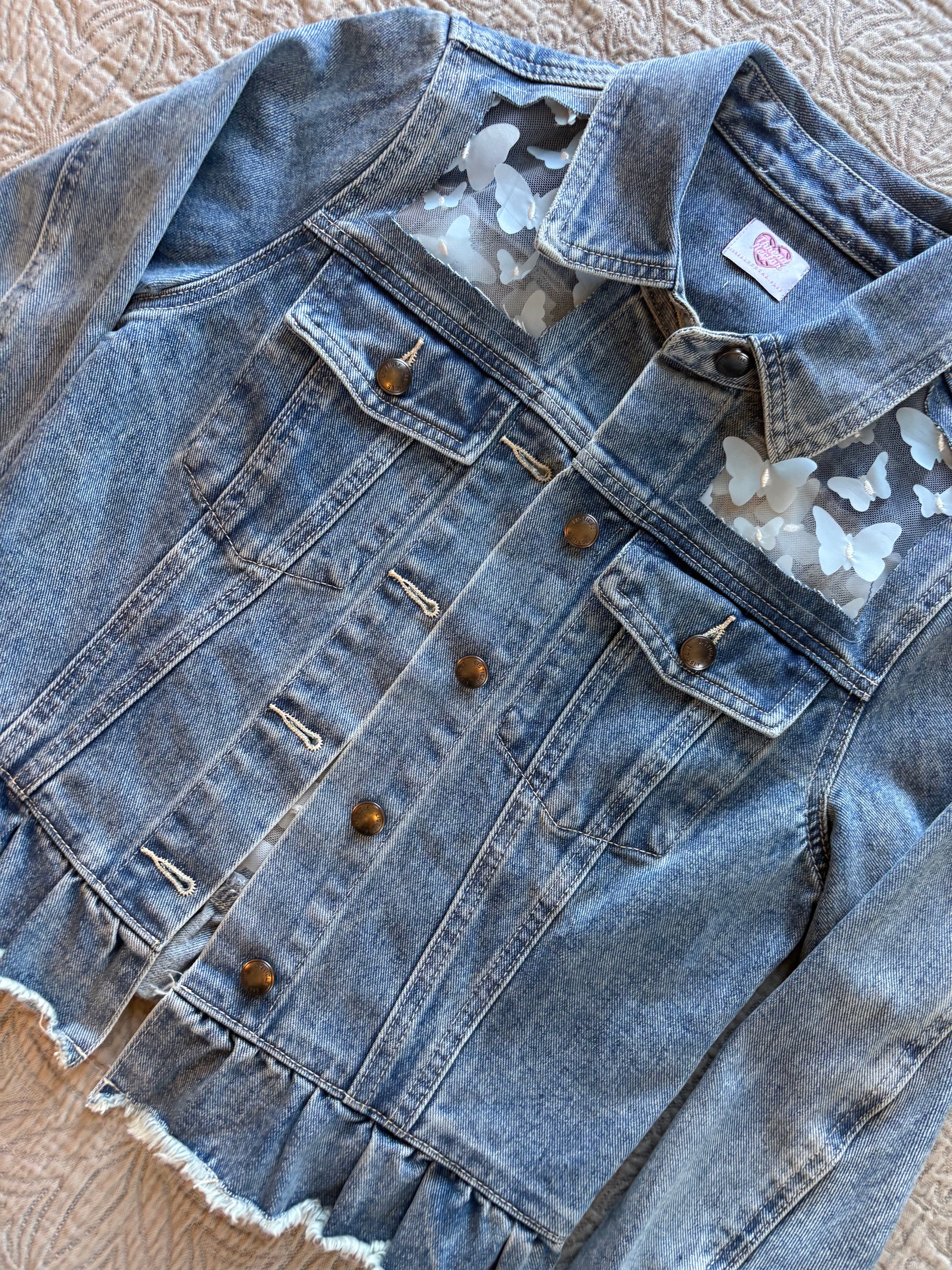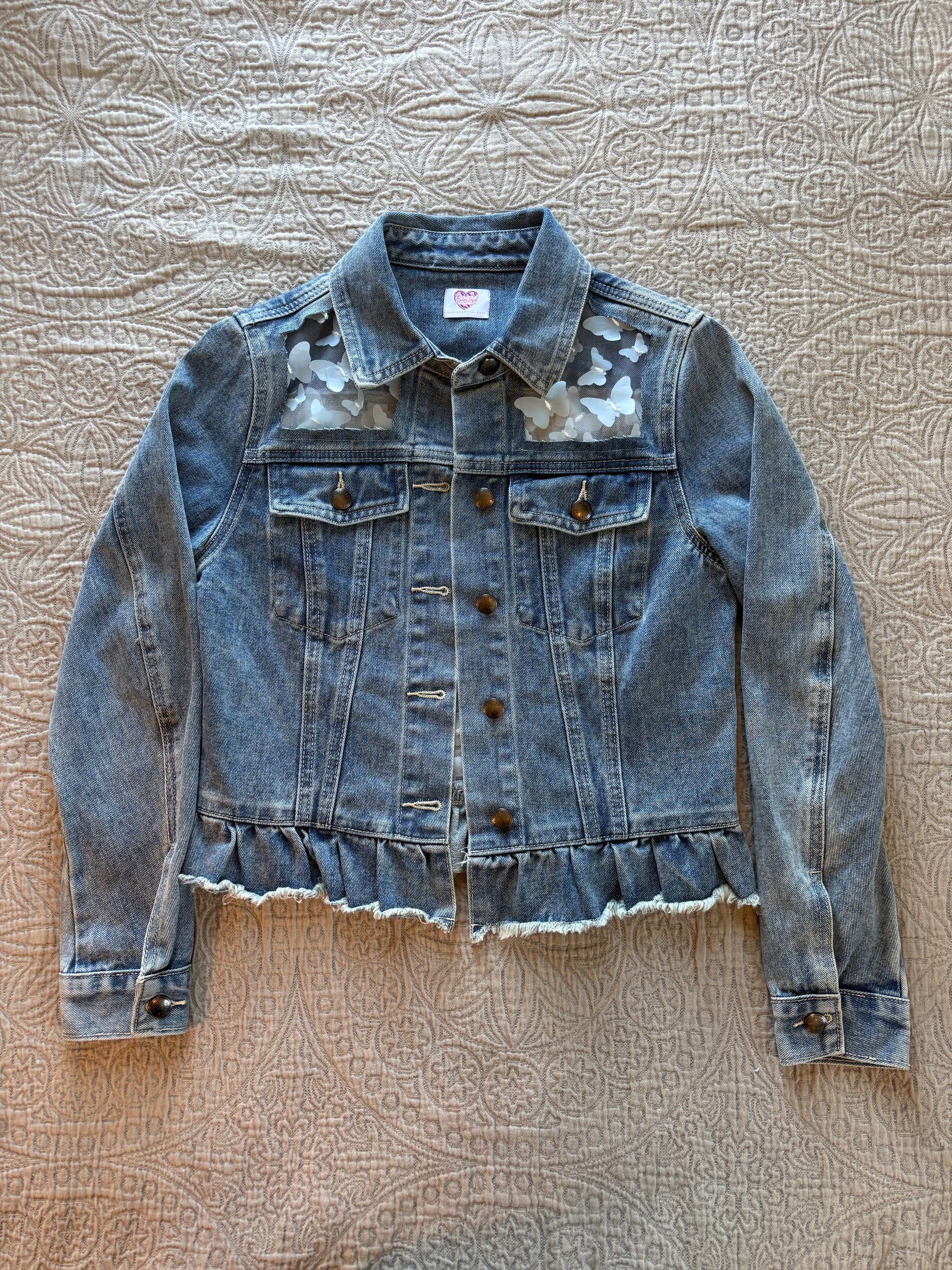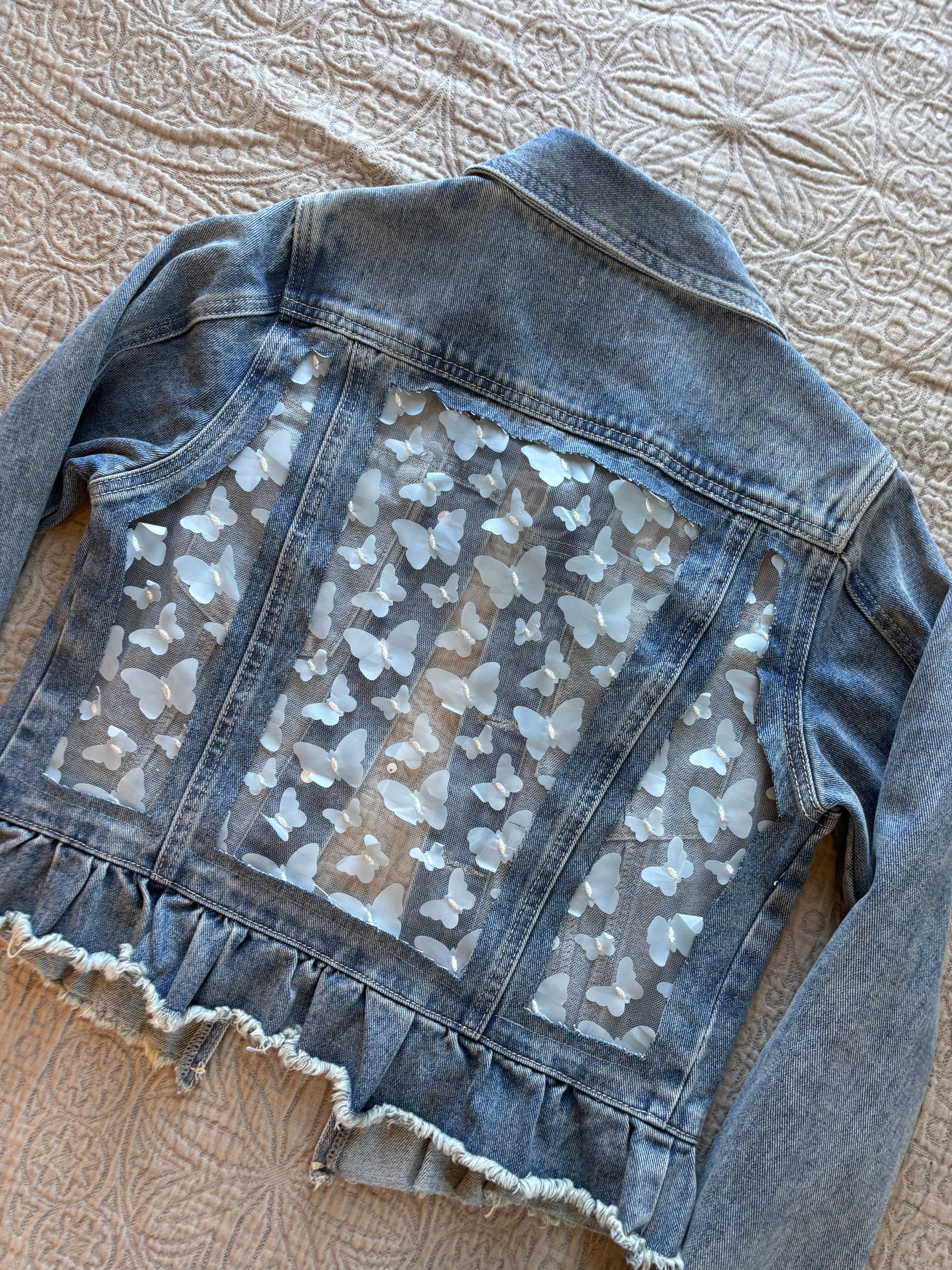 Blue Butterflies Light-Wash Denim Jacket [M]