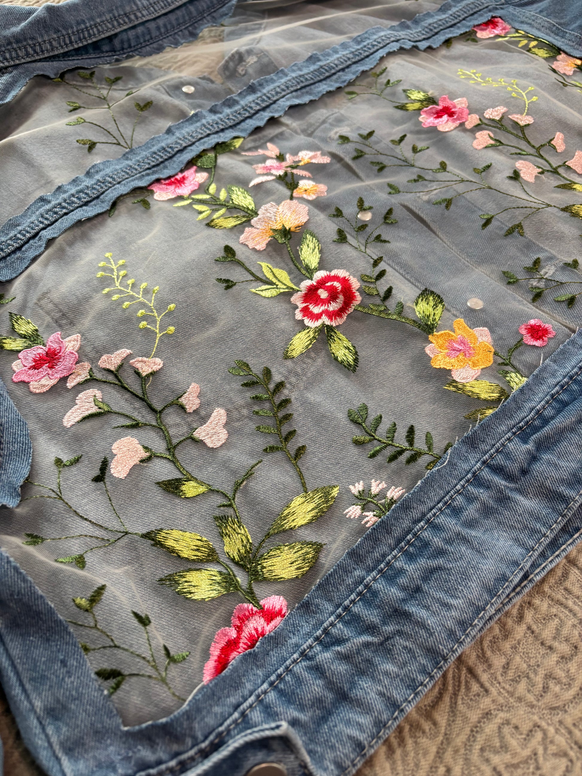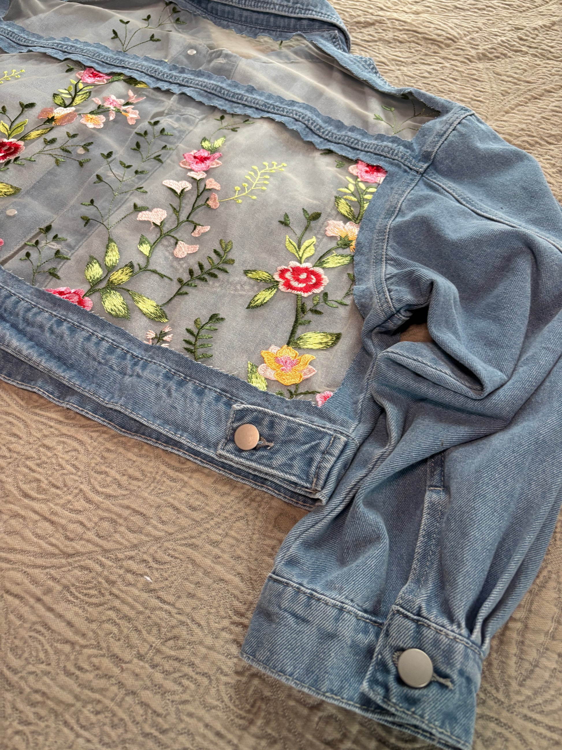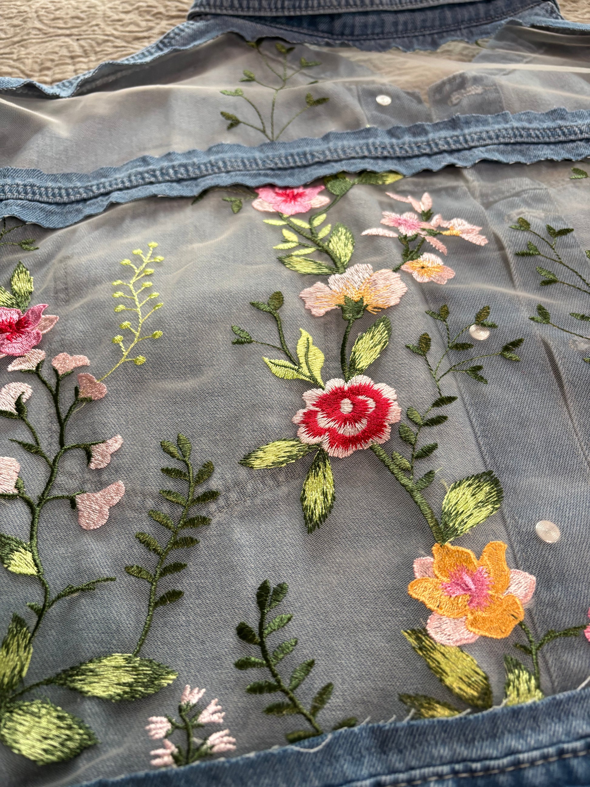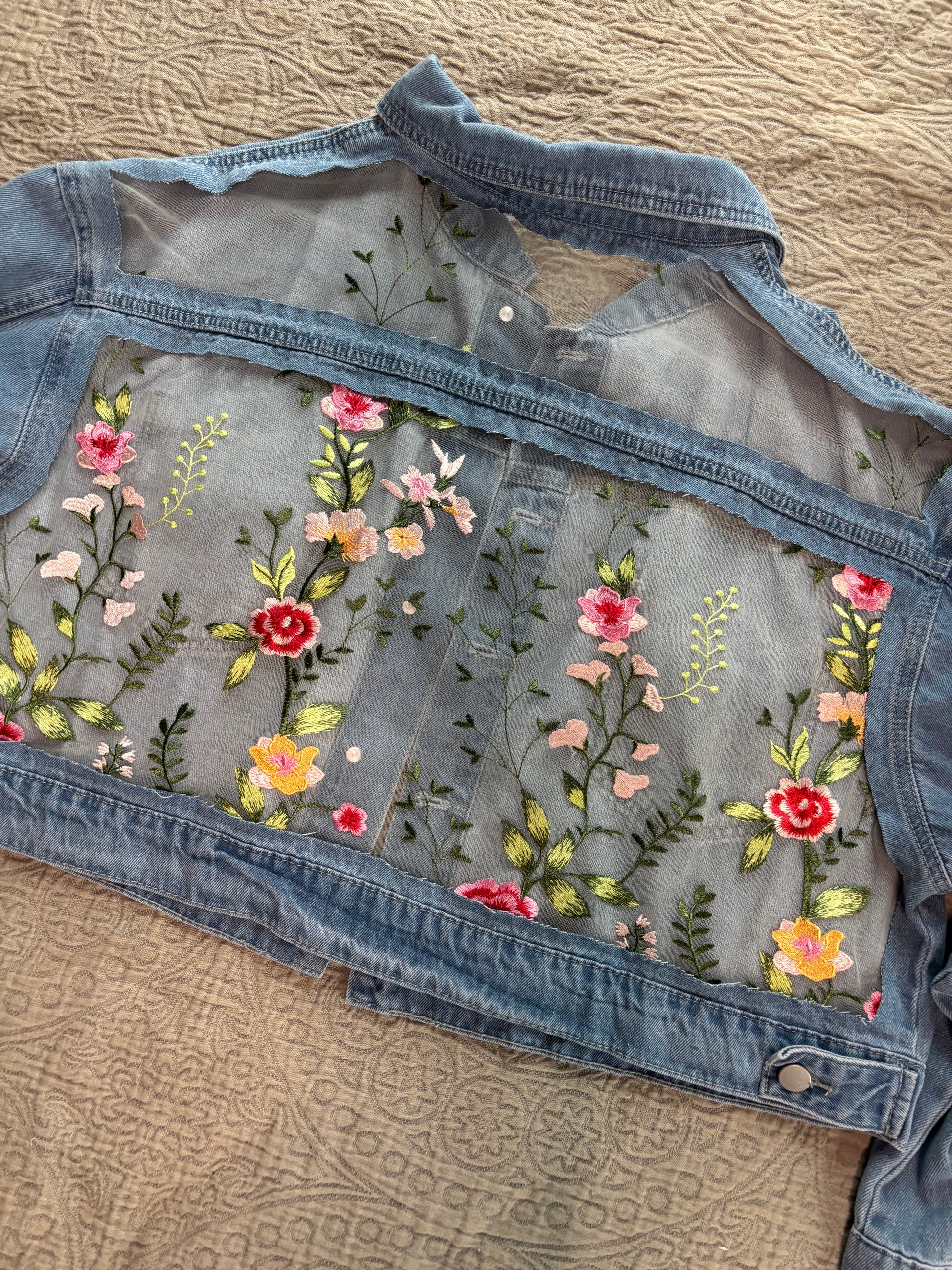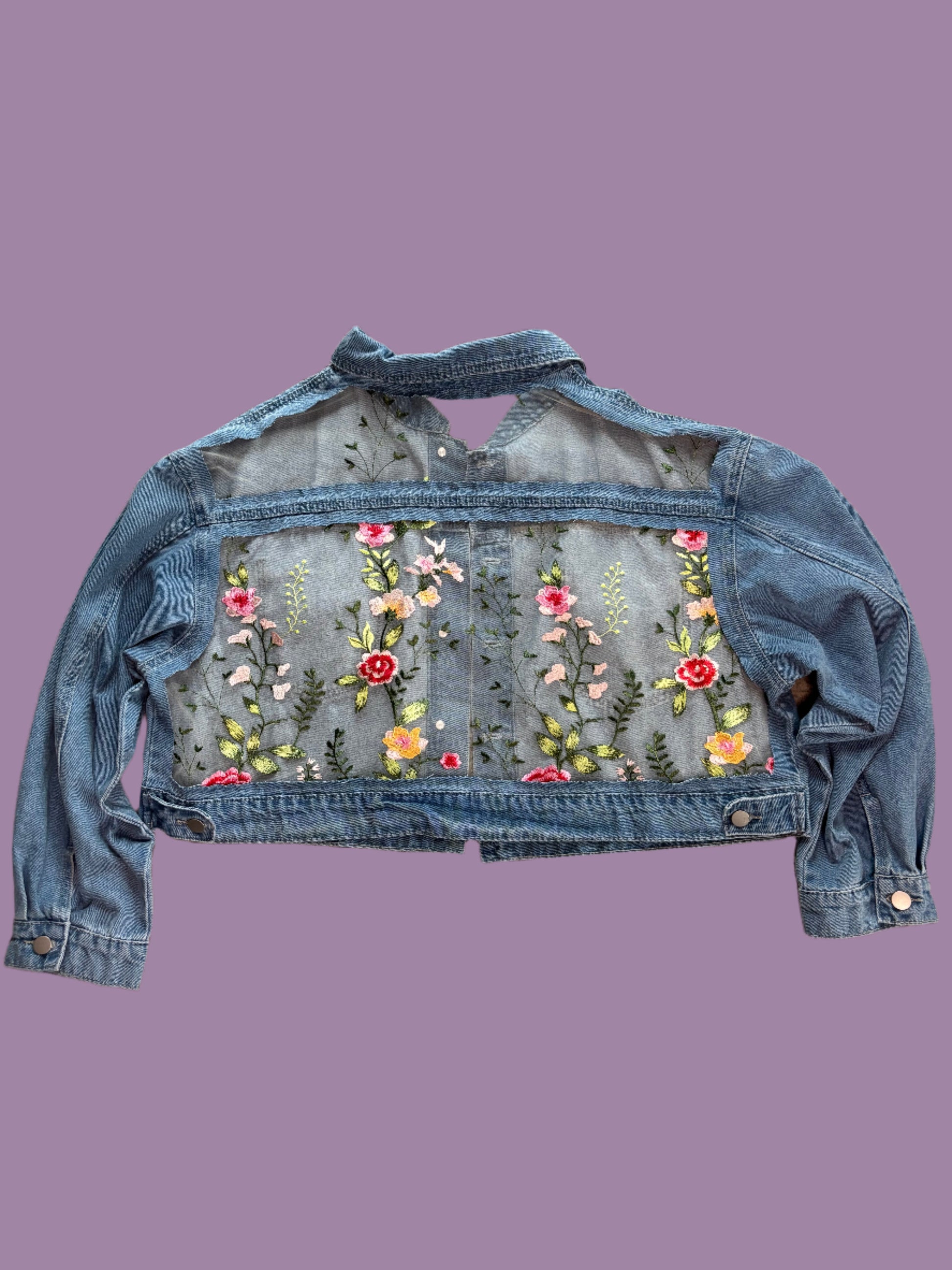 Cropped Denim Pink Floral Jacket with Bows [3X]