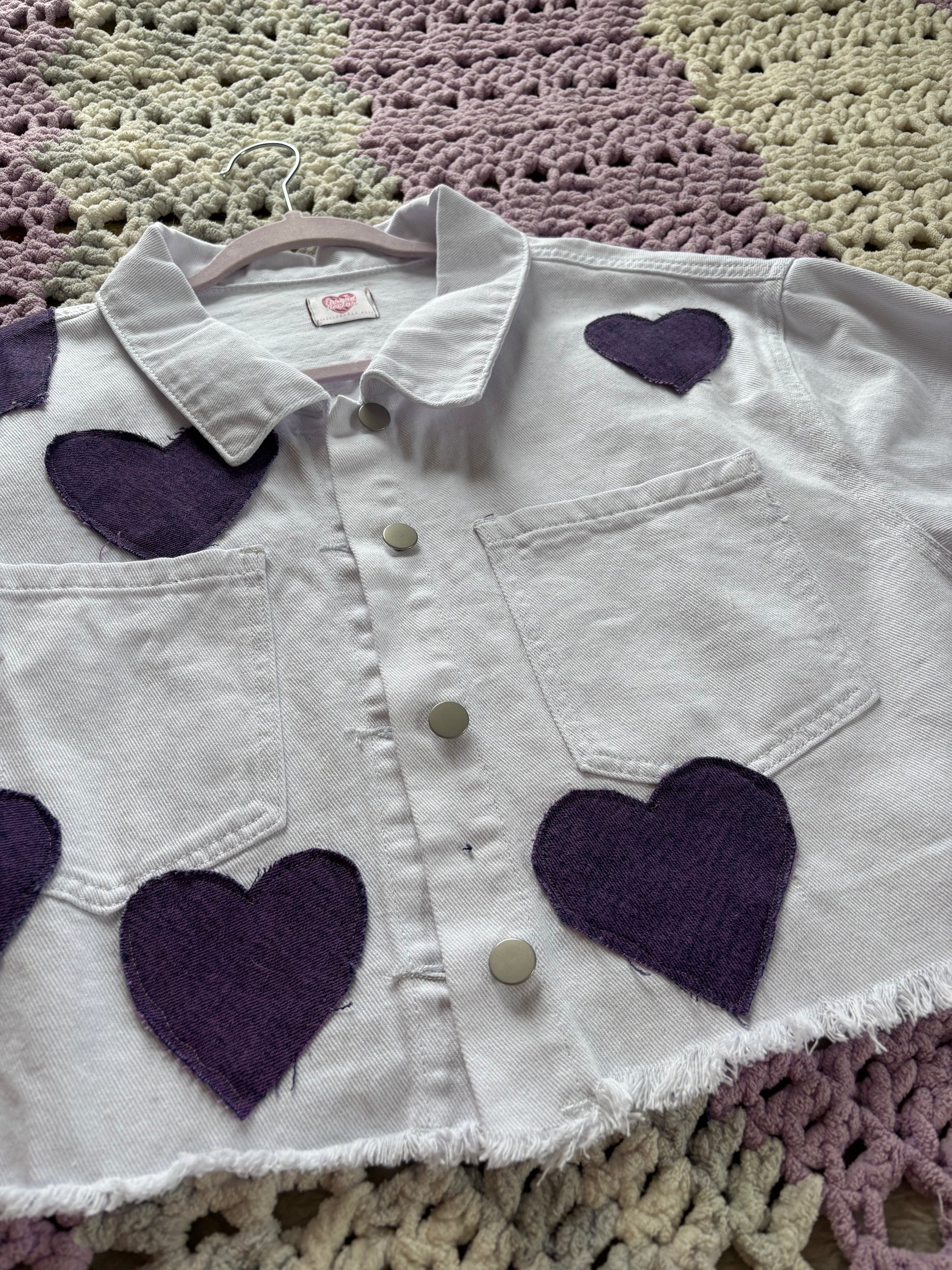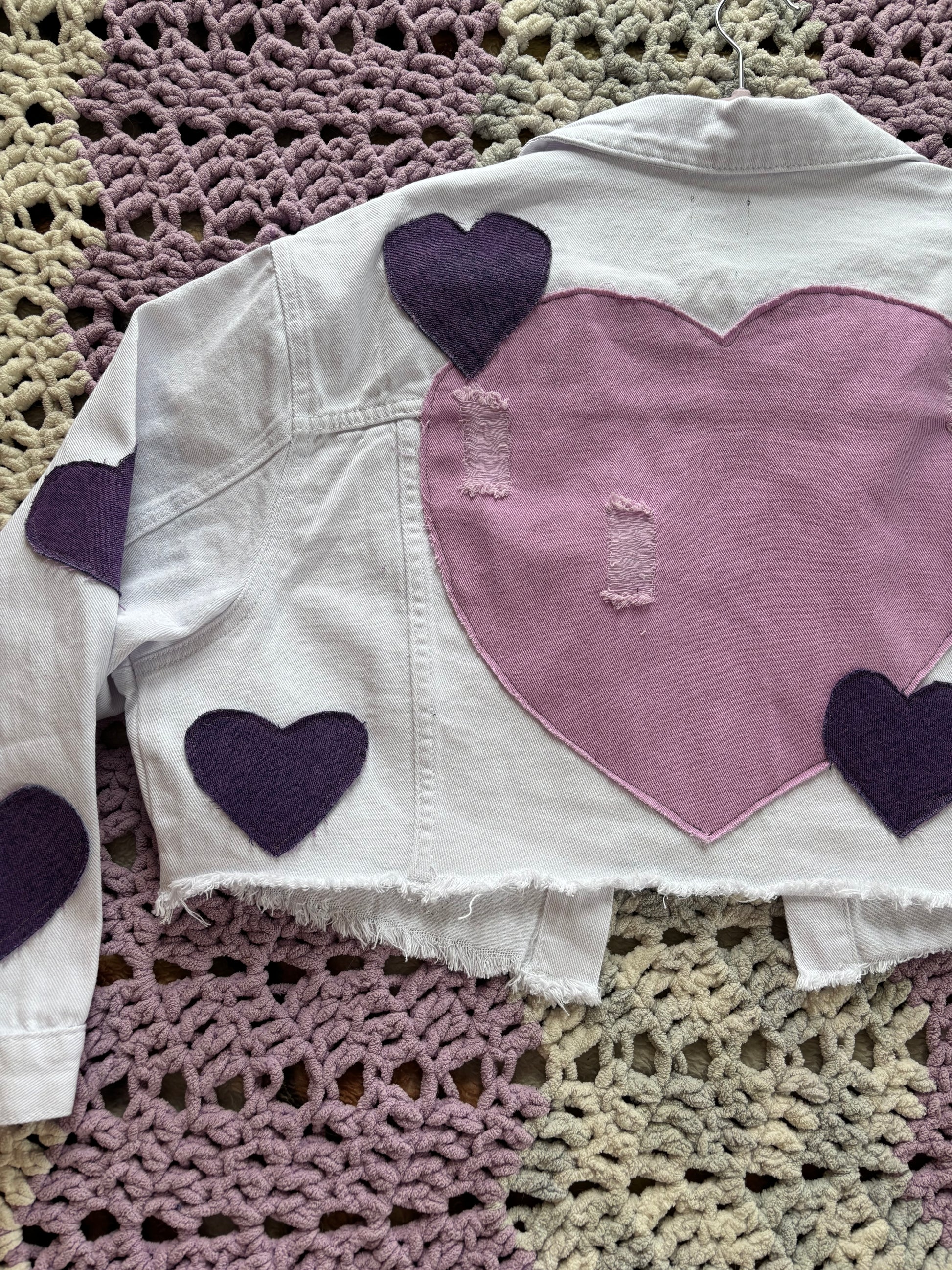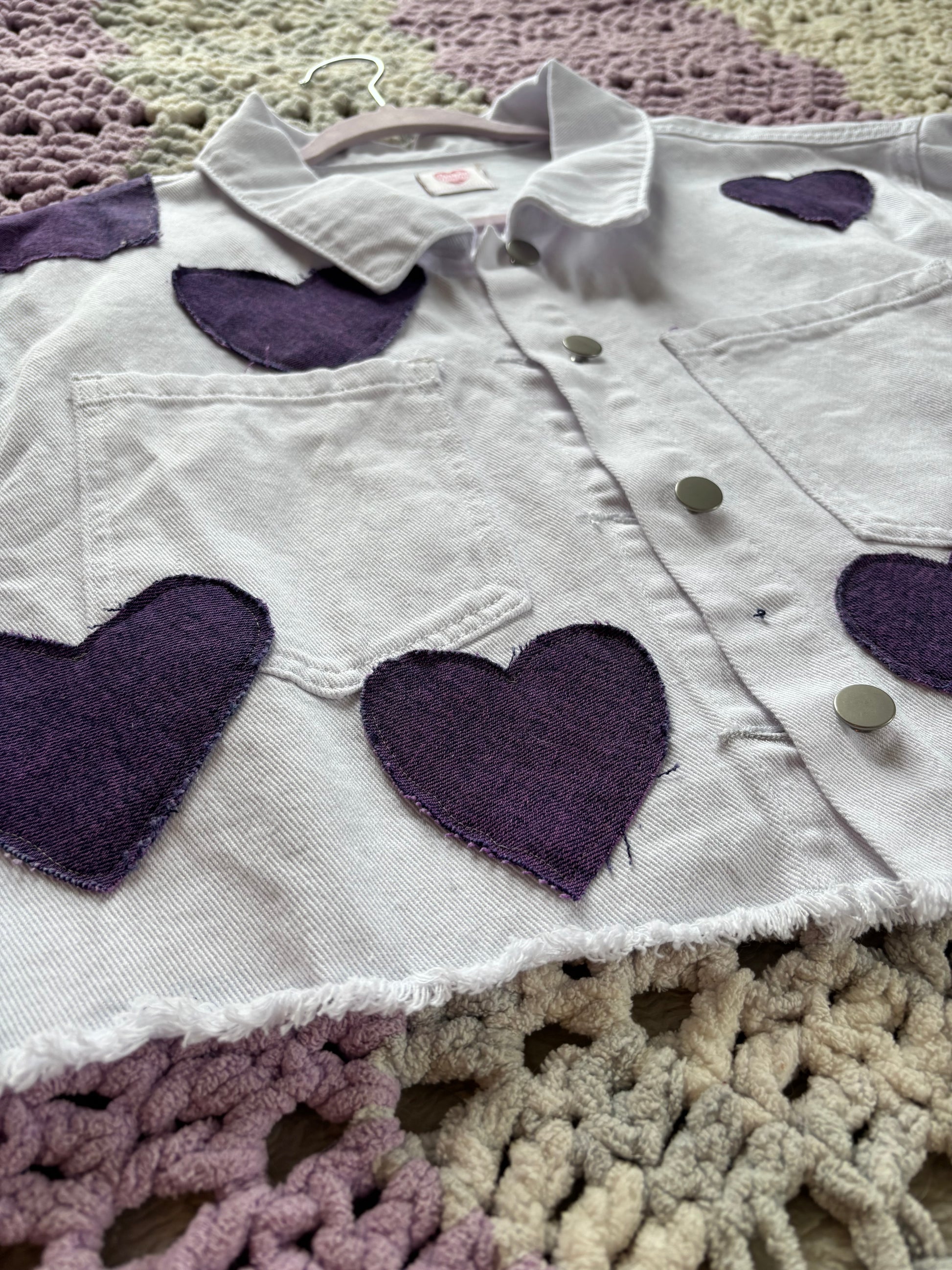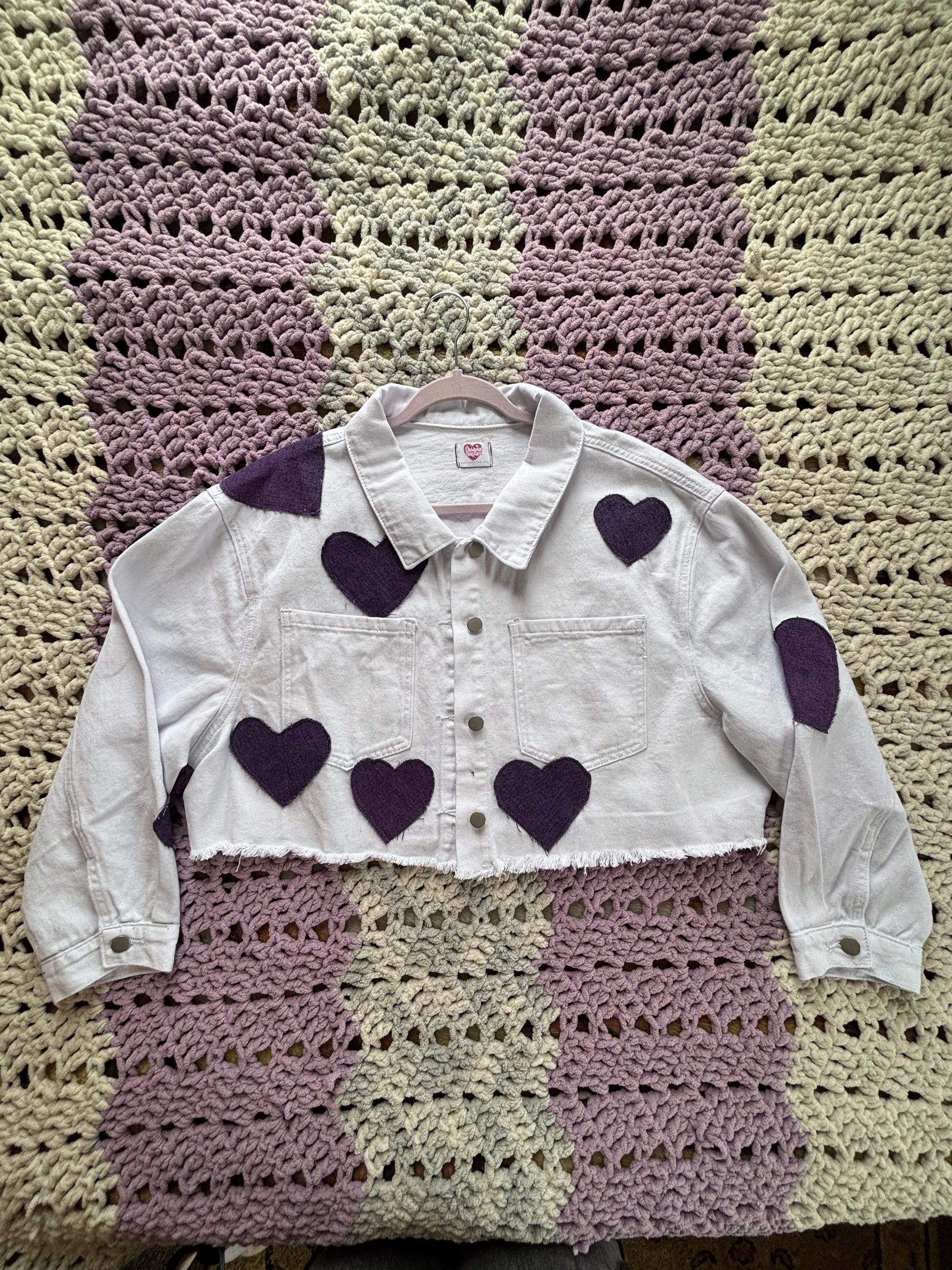 Cropped White Denim Frayed Purple Hearts Jacket [3X]