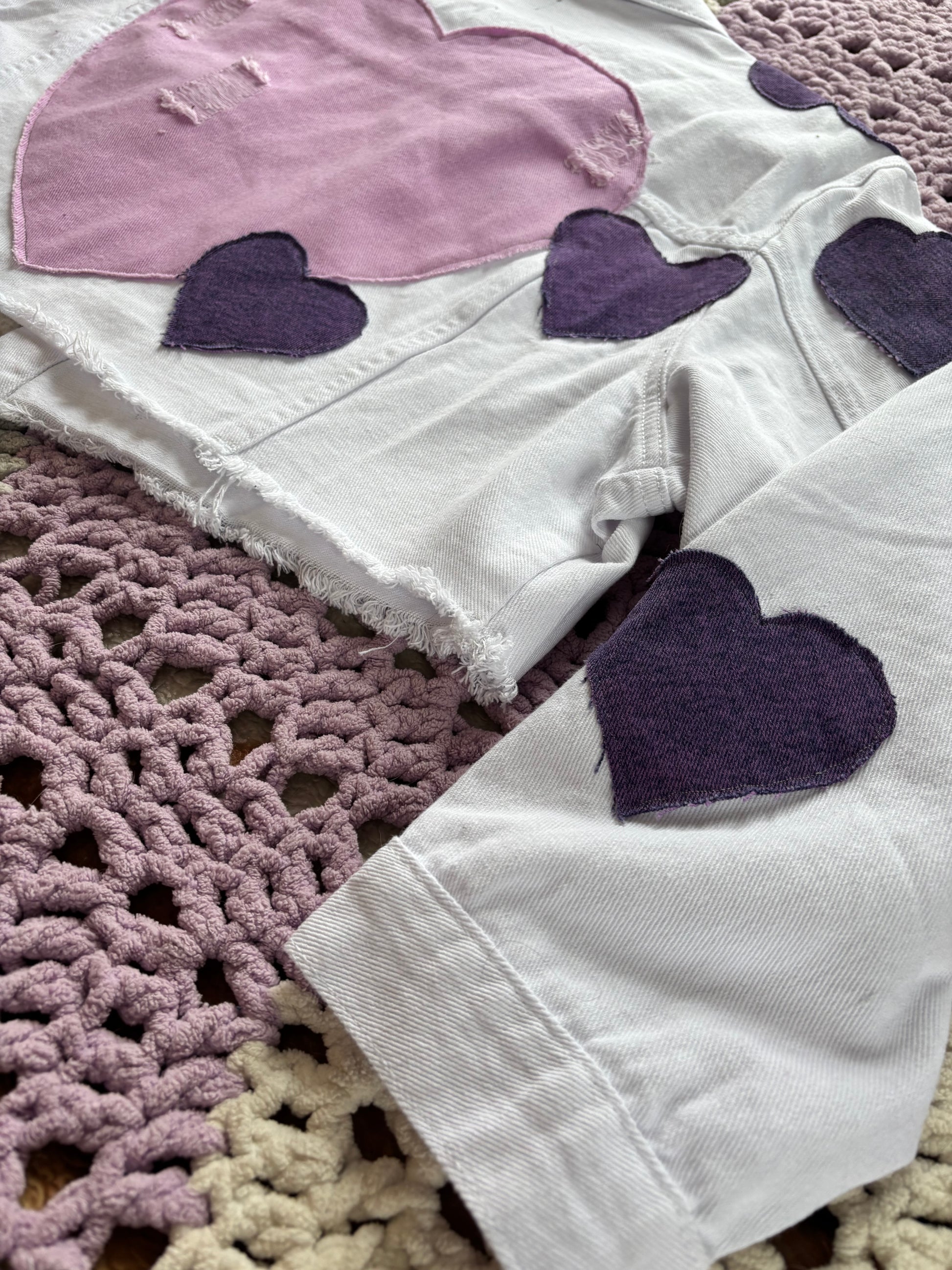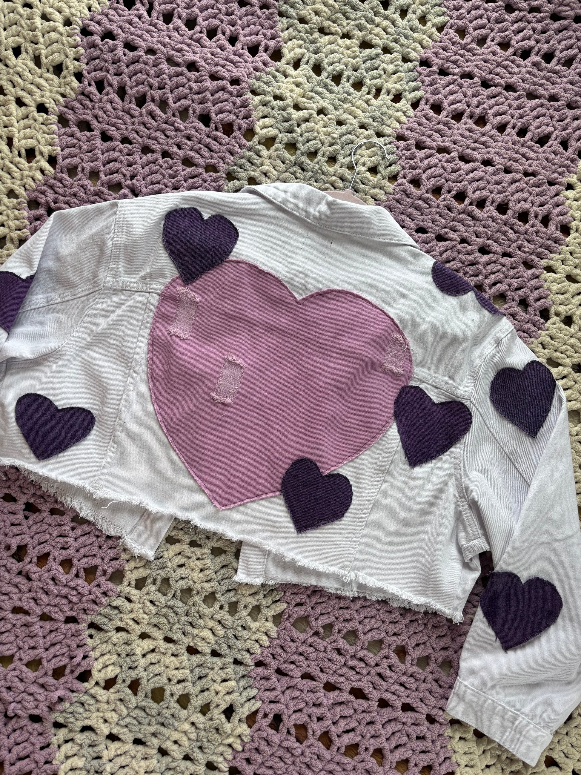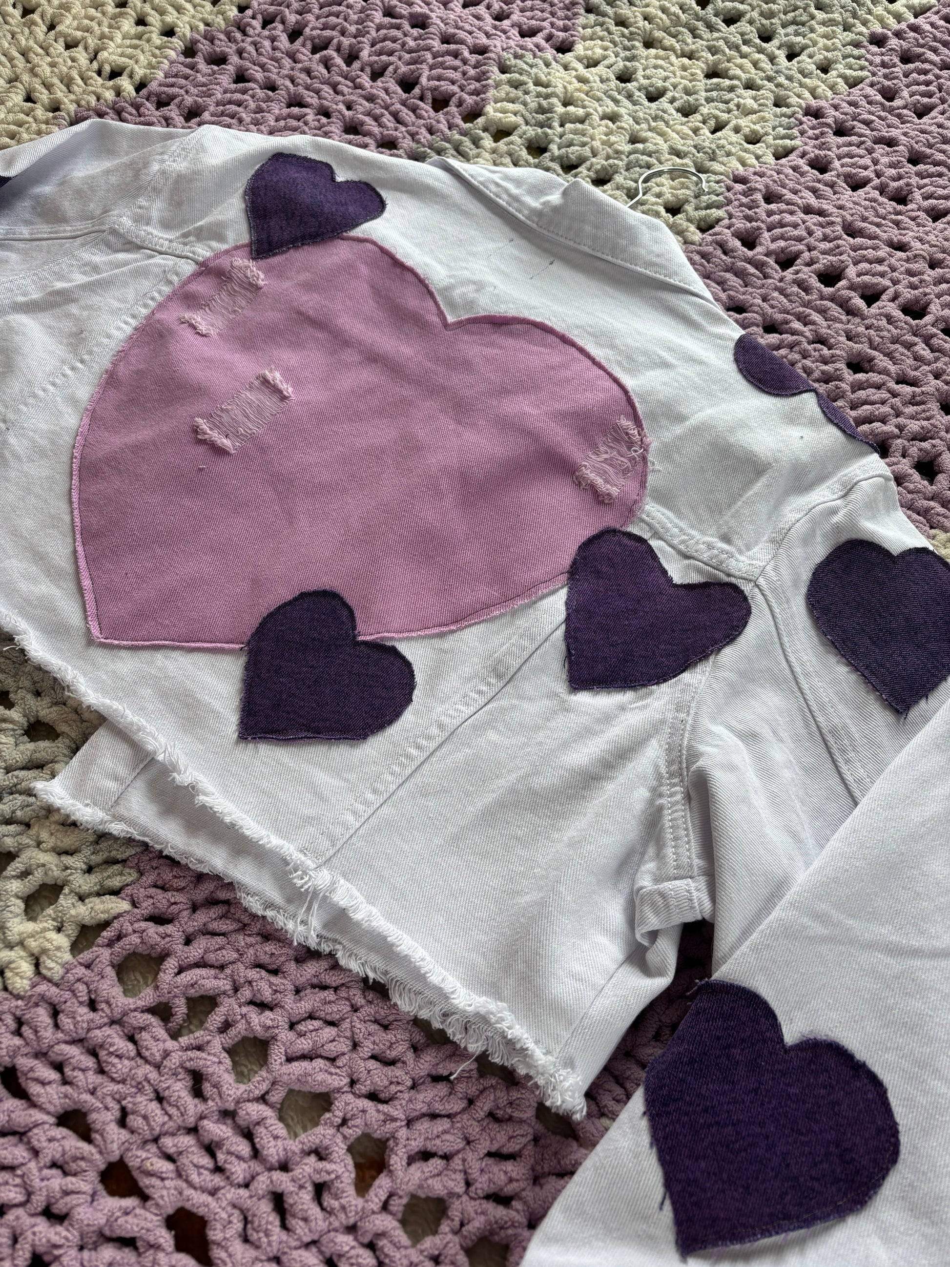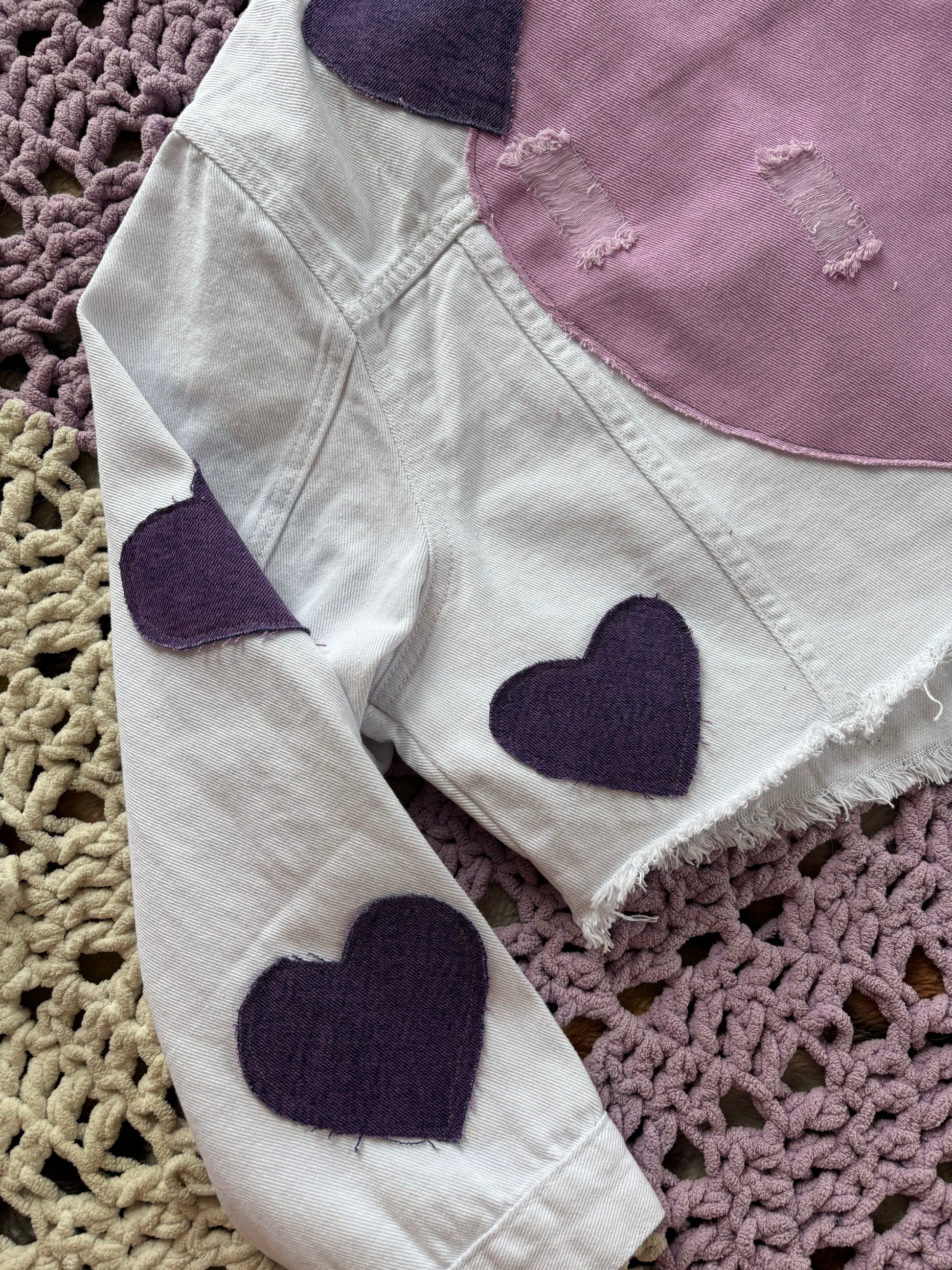 Cropped White Denim Frayed Purple Hearts Jacket [3X]
