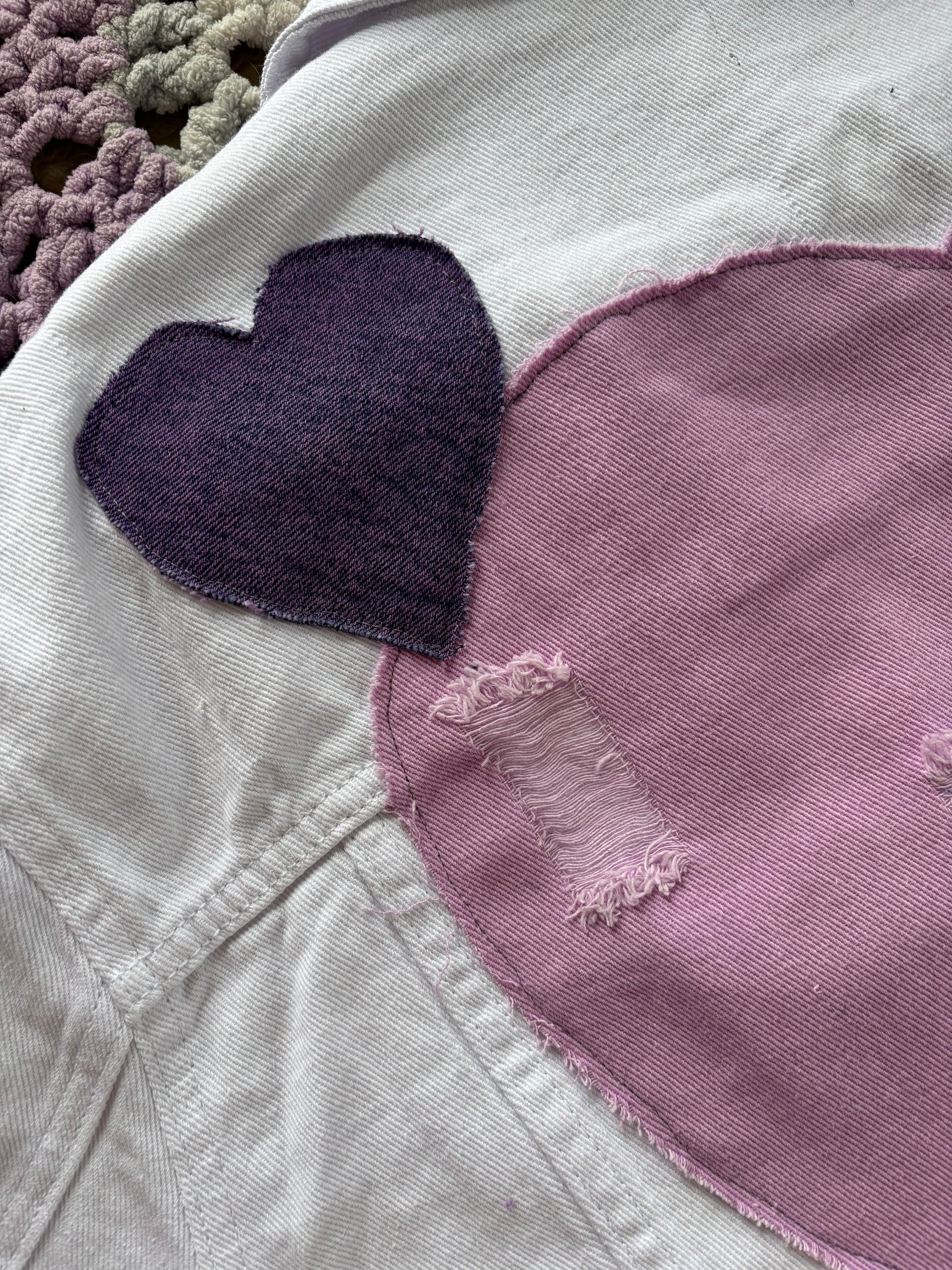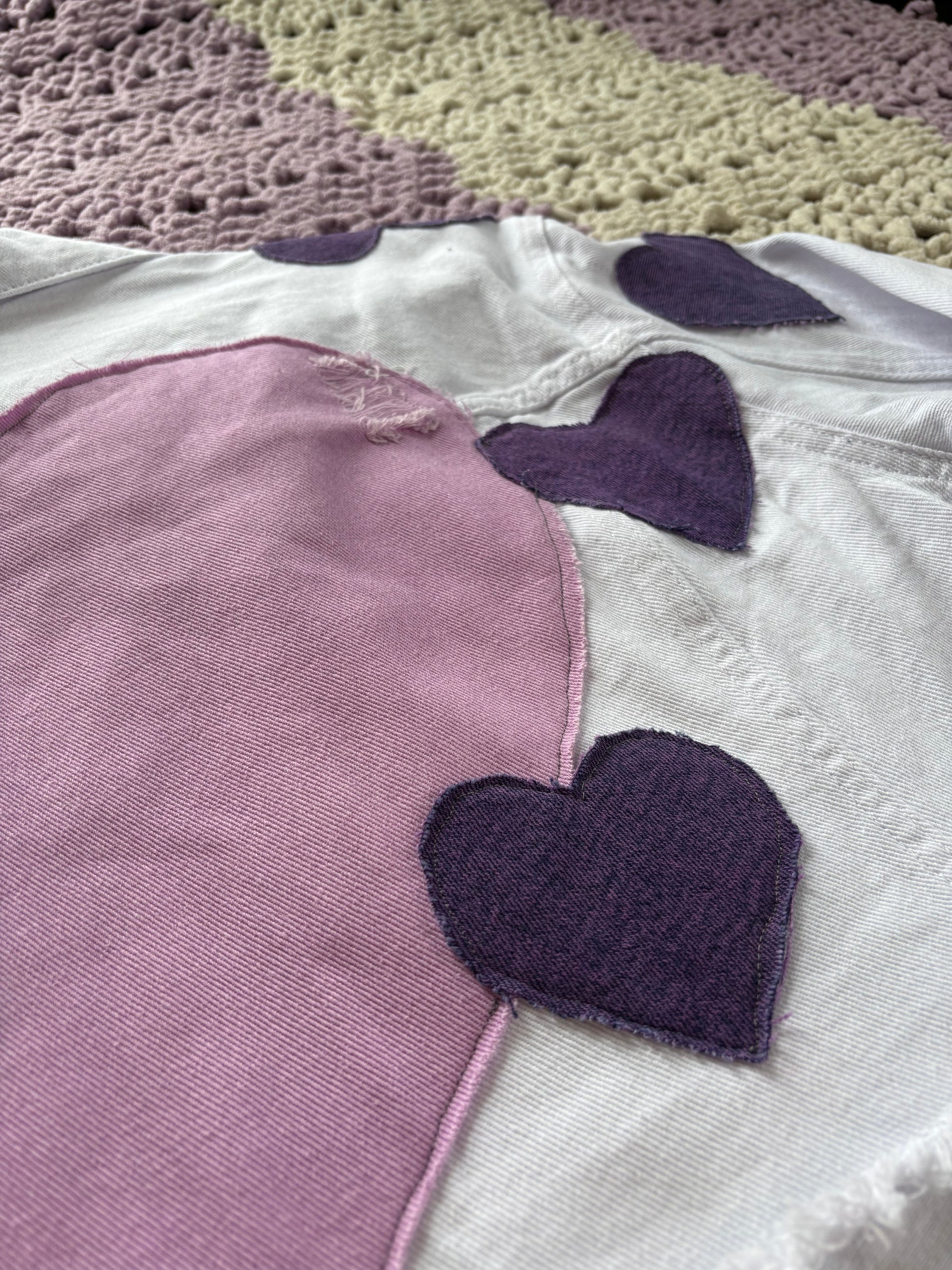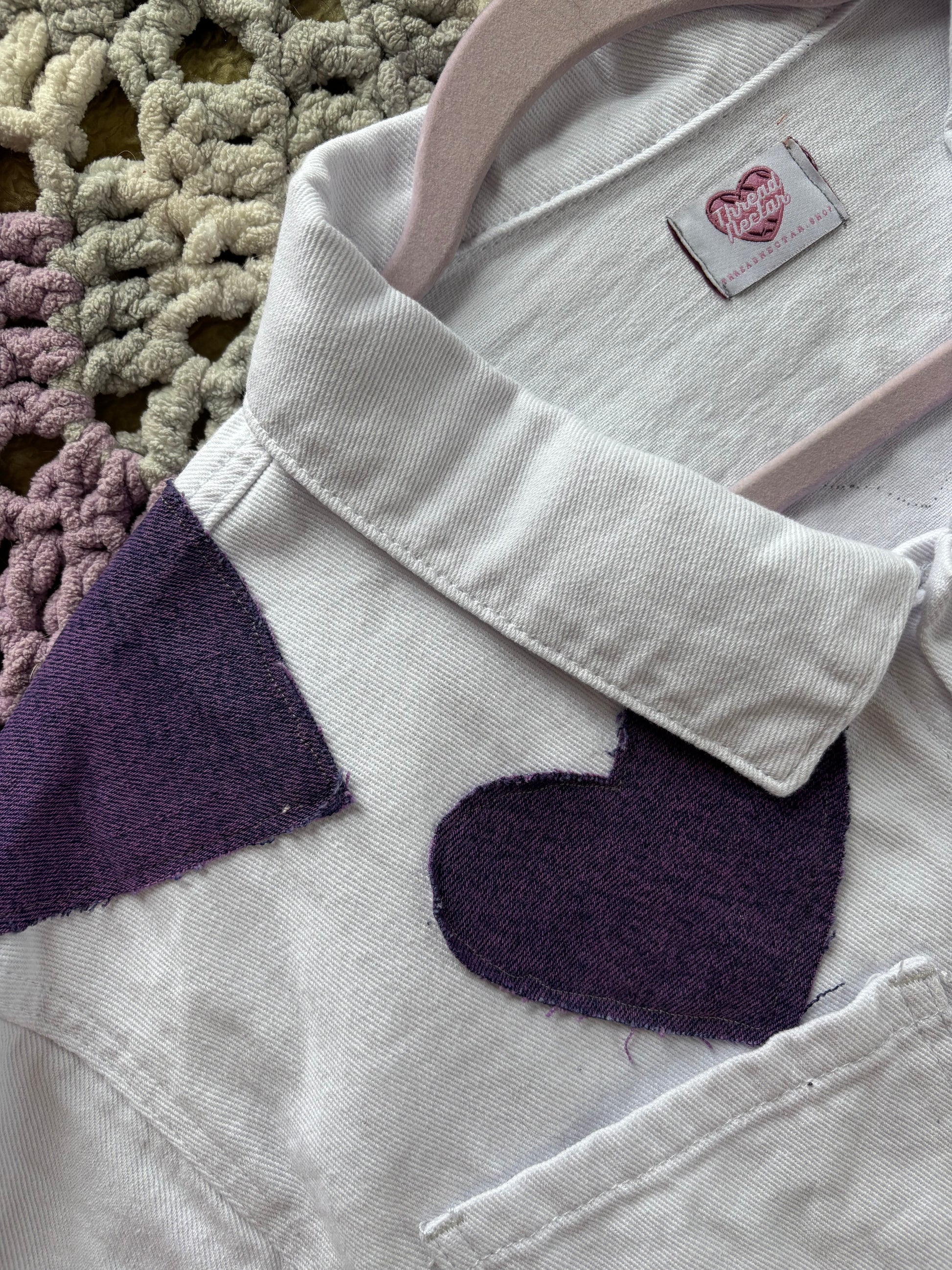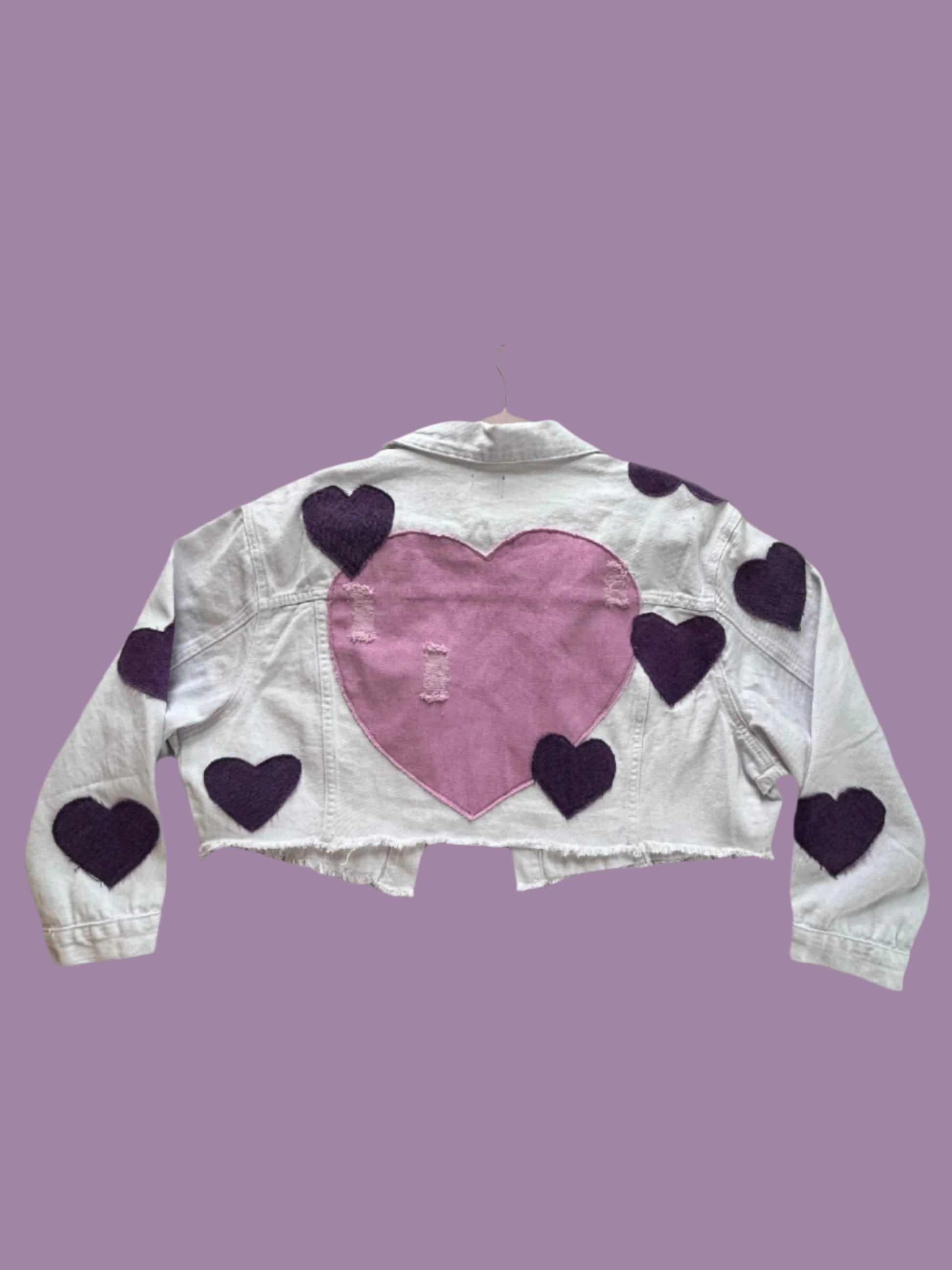Cropped White Denim Frayed Purple Hearts Jacket [3X]