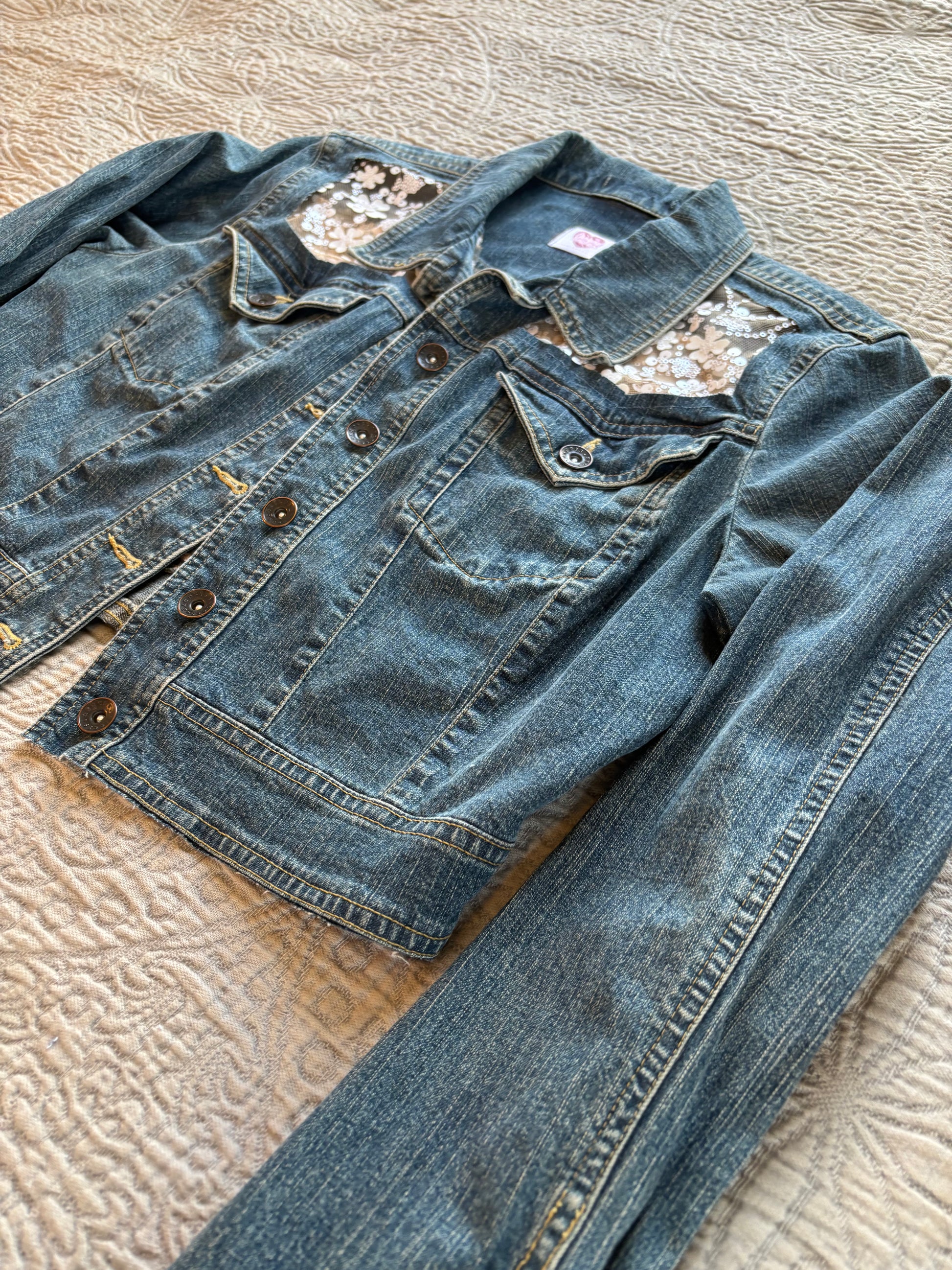Cropped White Flowers Jacket [L]