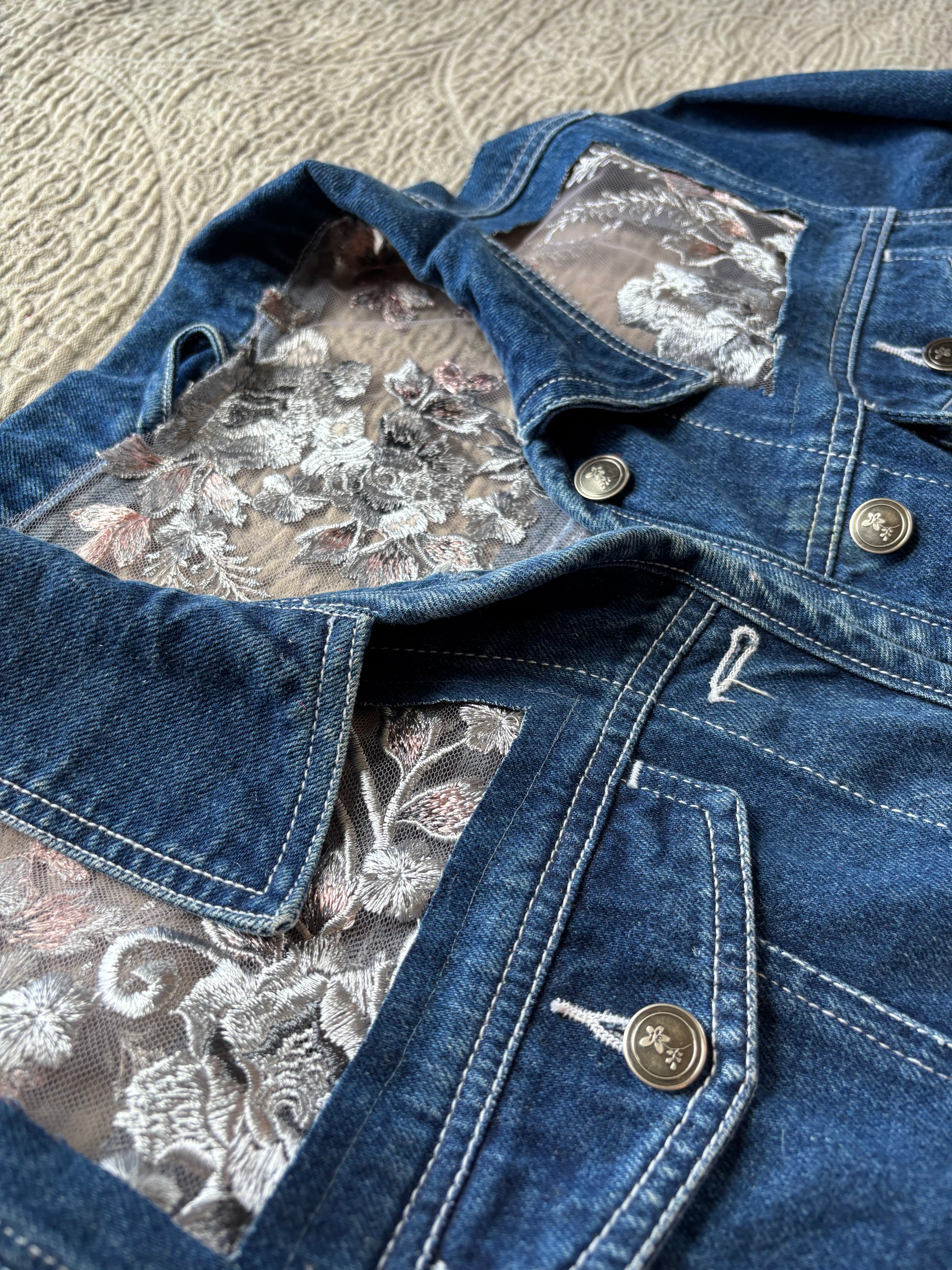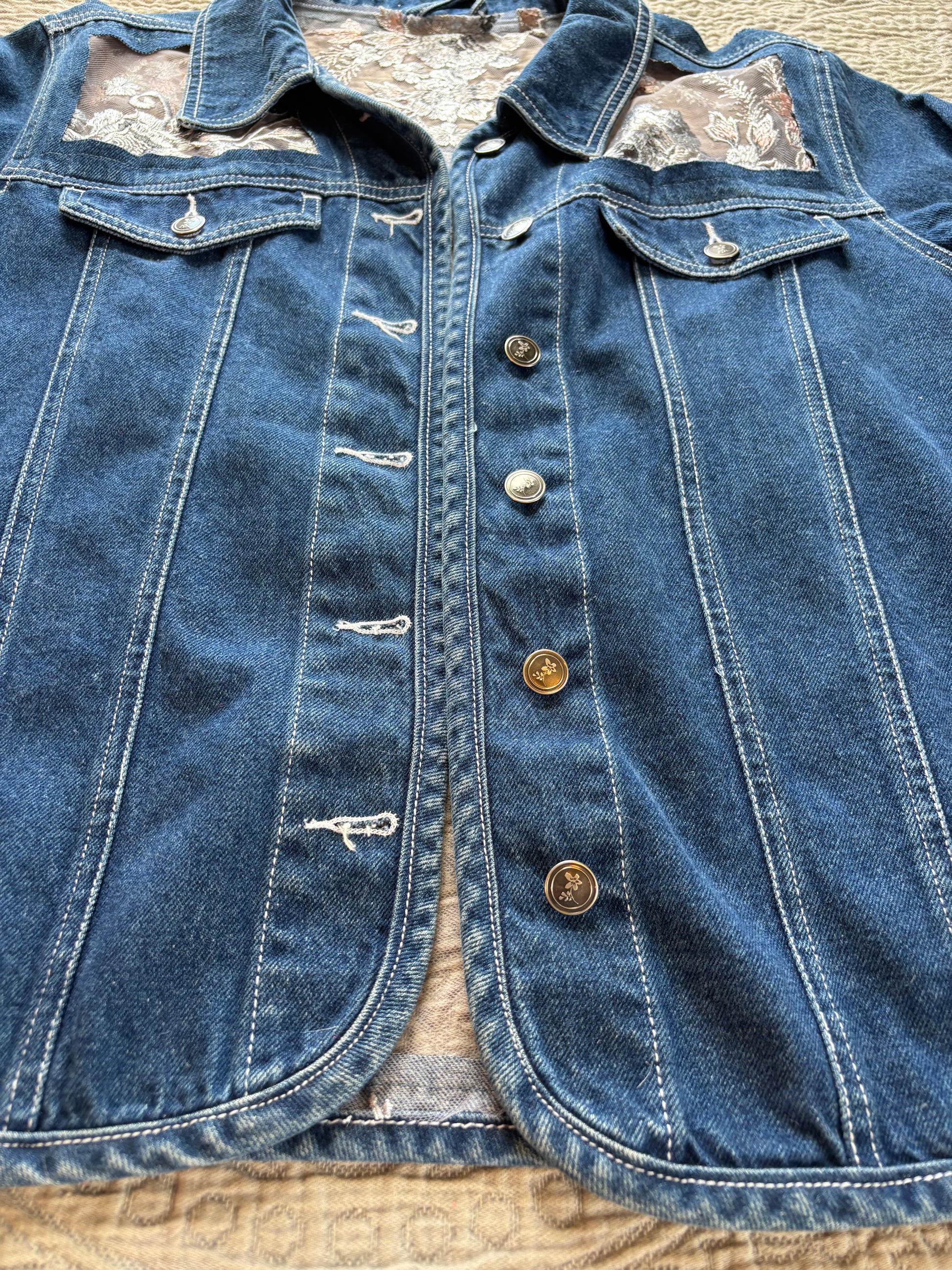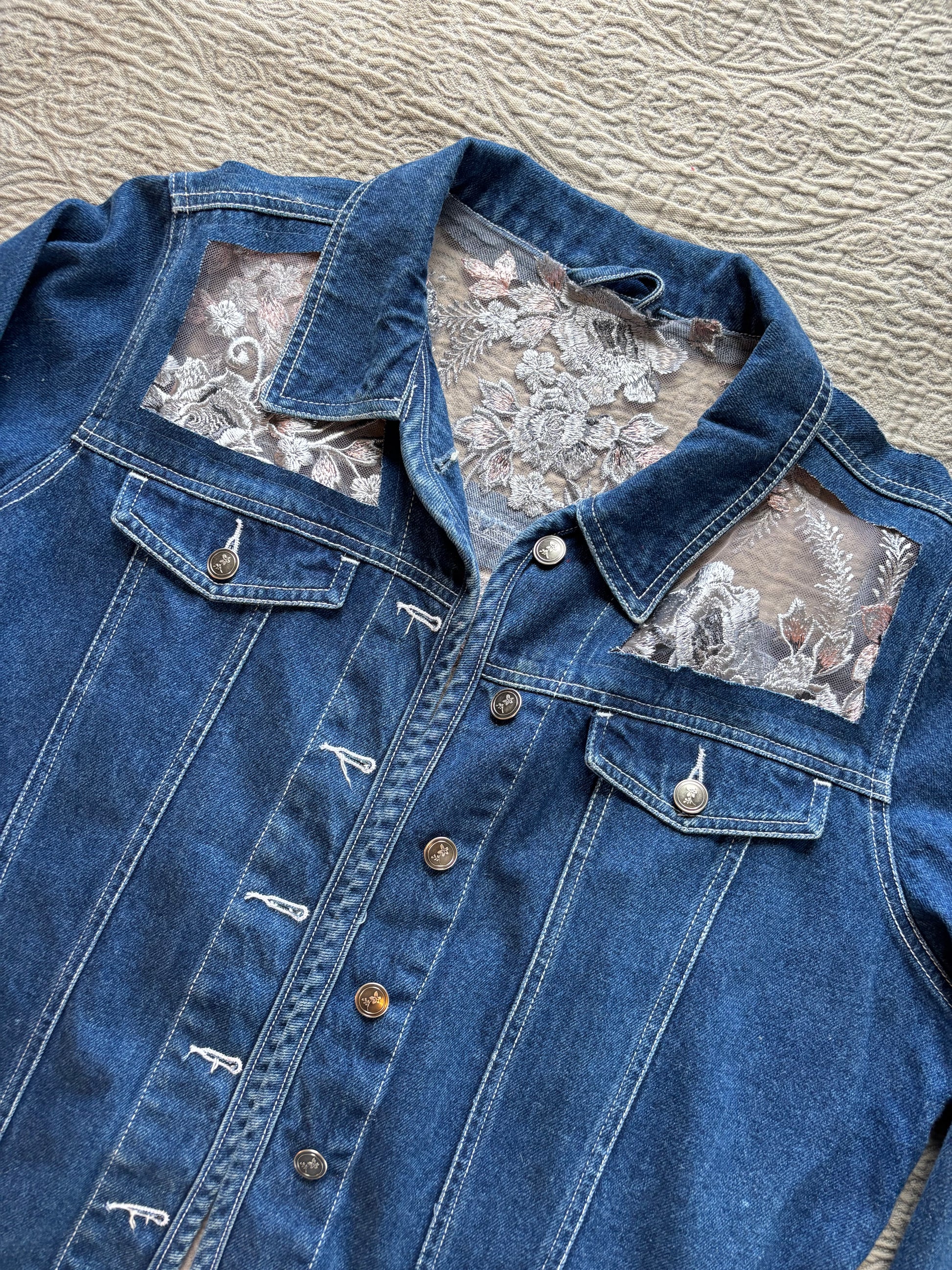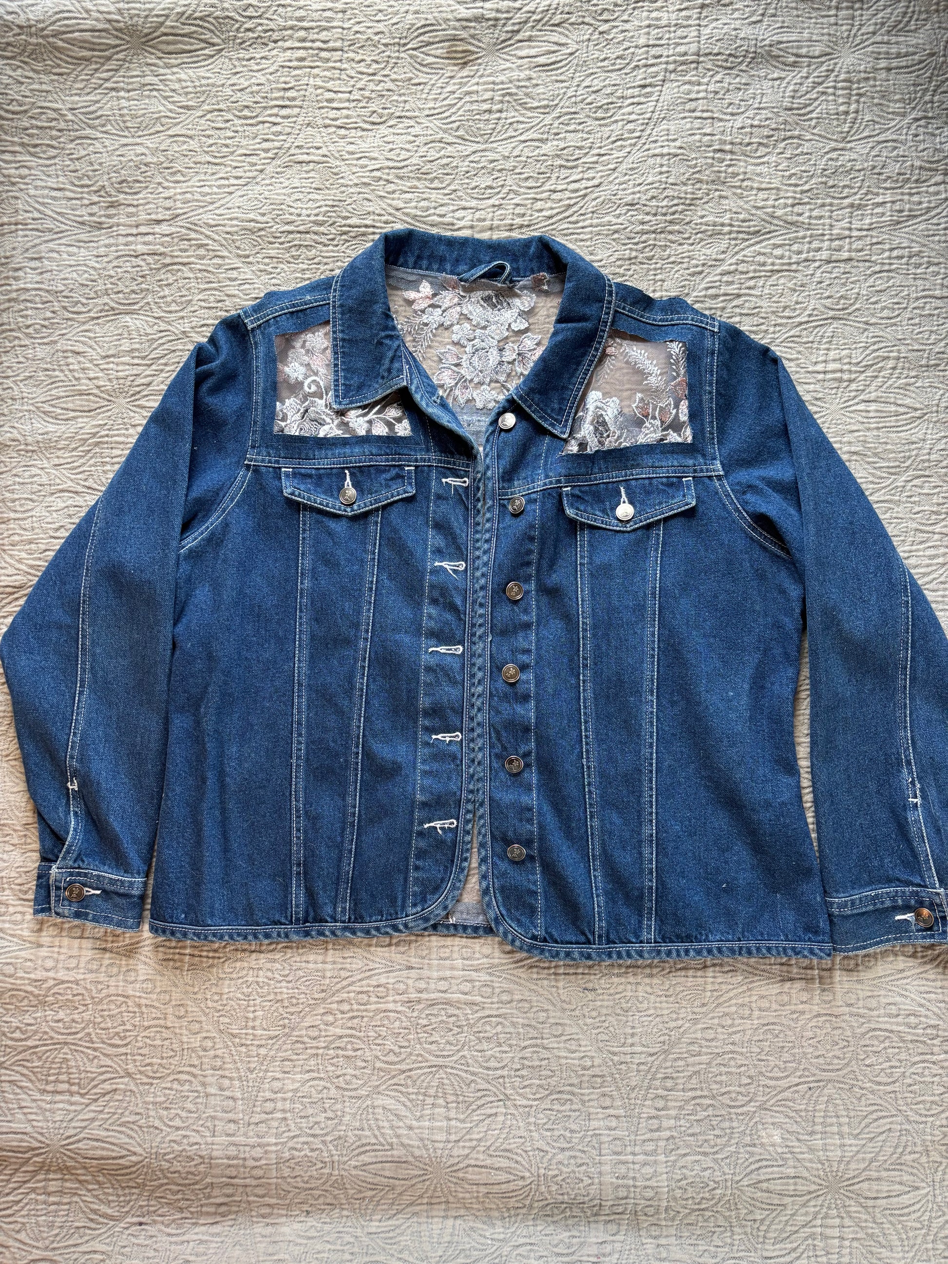 Dark Denim Denim Silver Floral Jacket [1X]