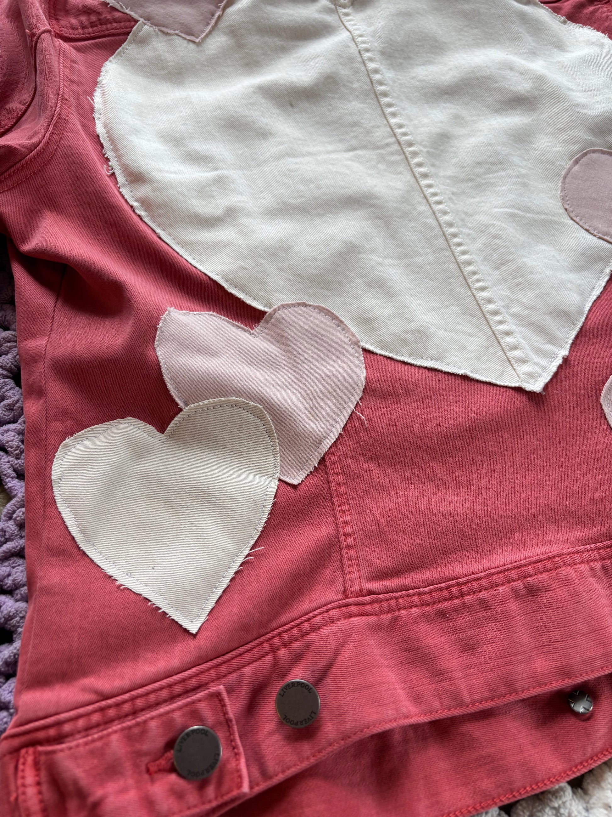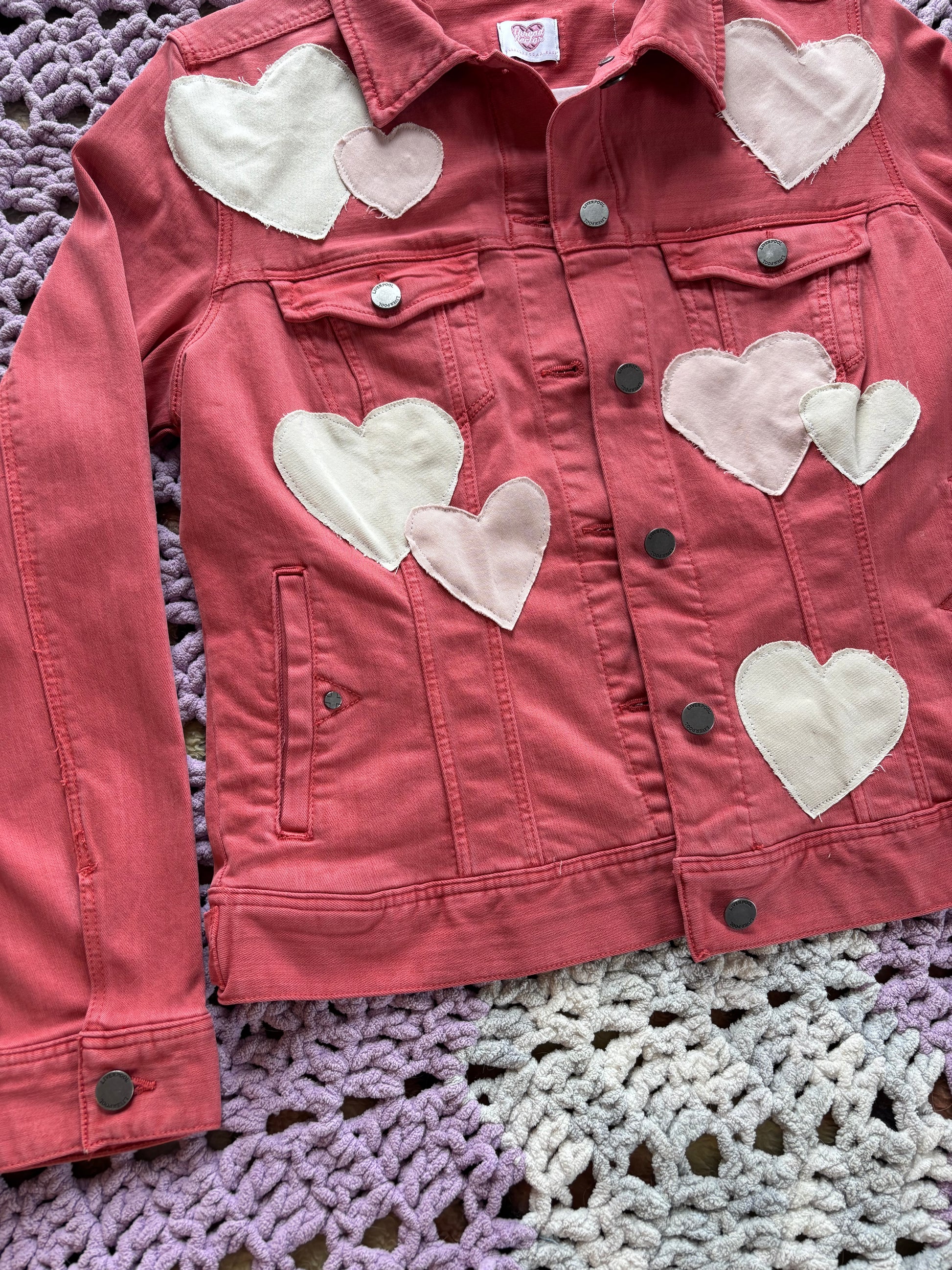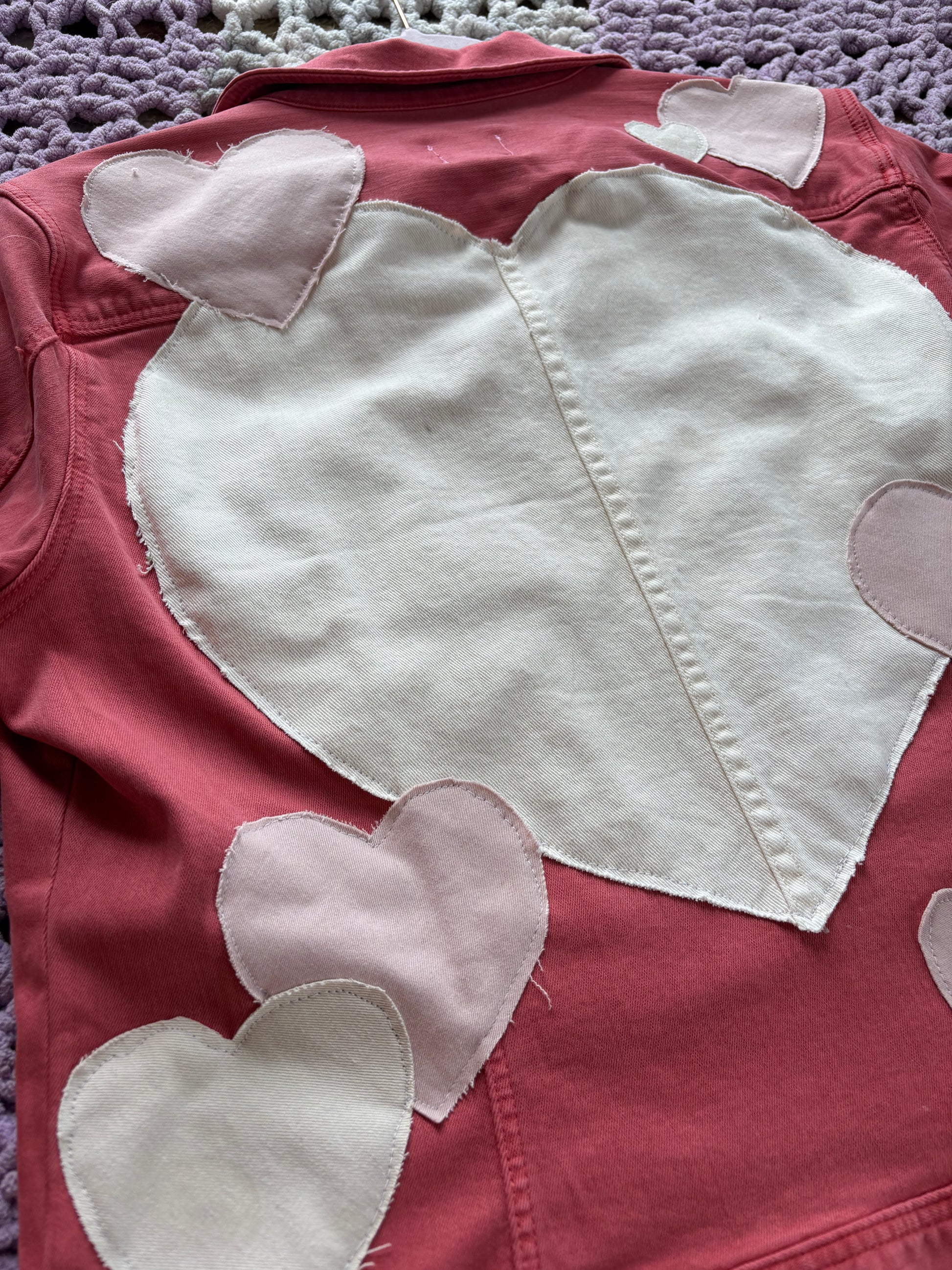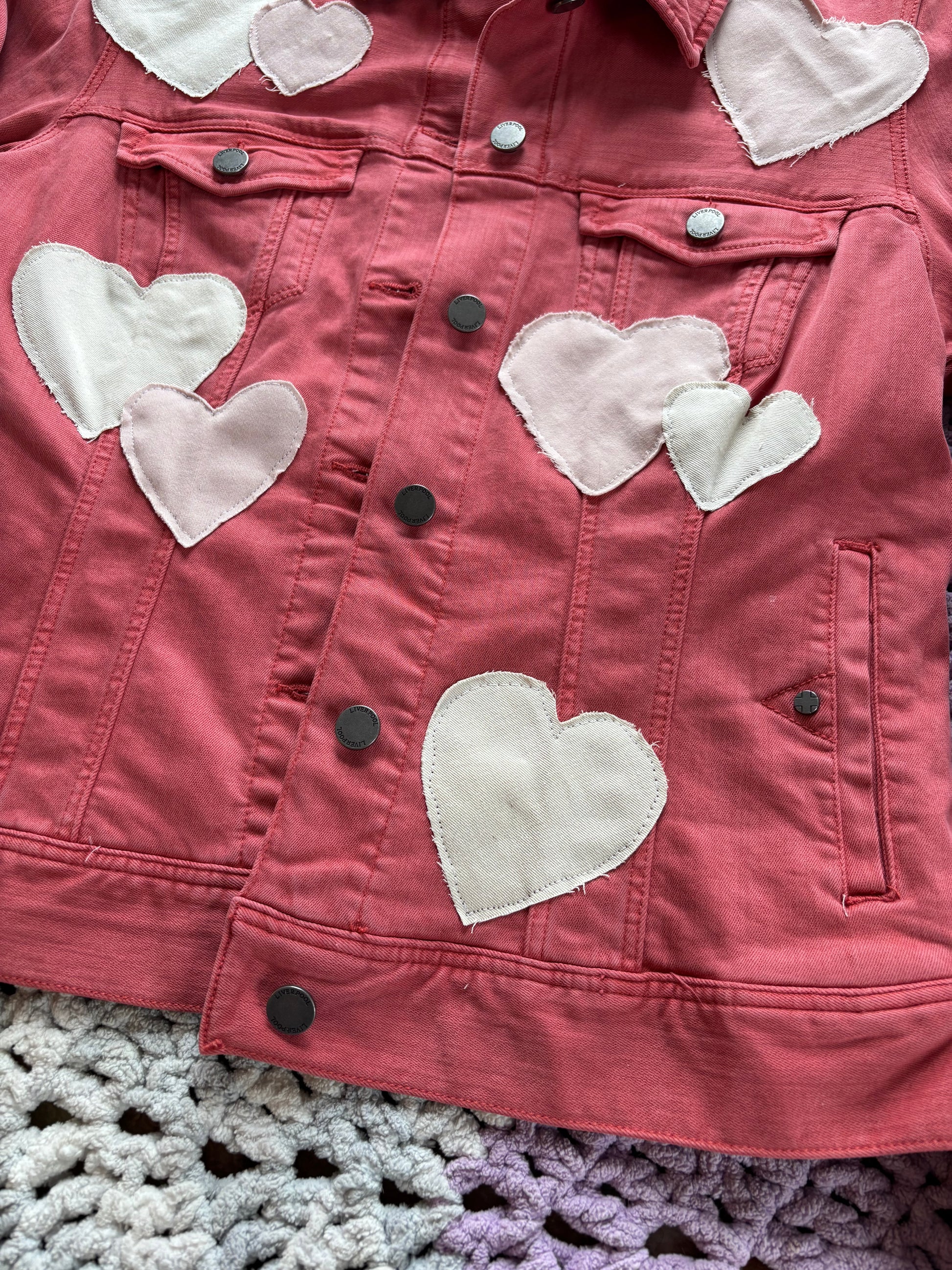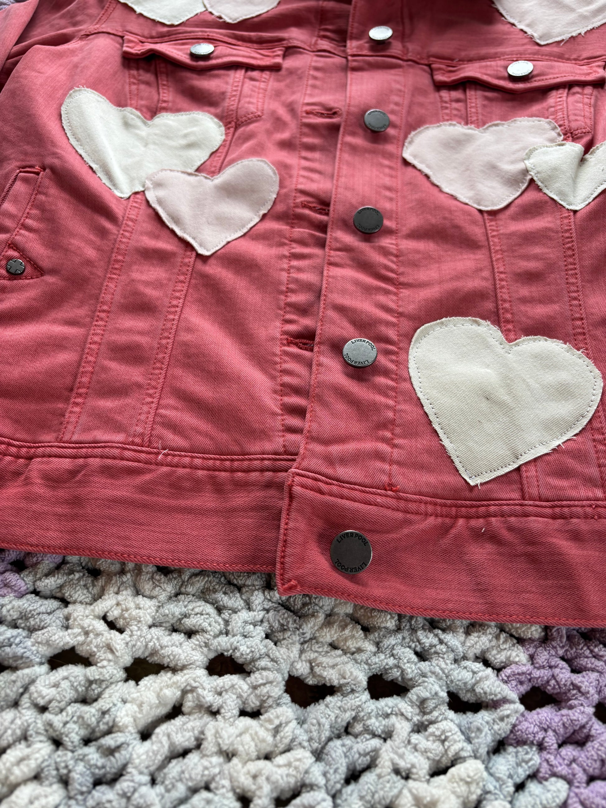 Dark Pink Denim Frayed Hearts Jacket [XL]