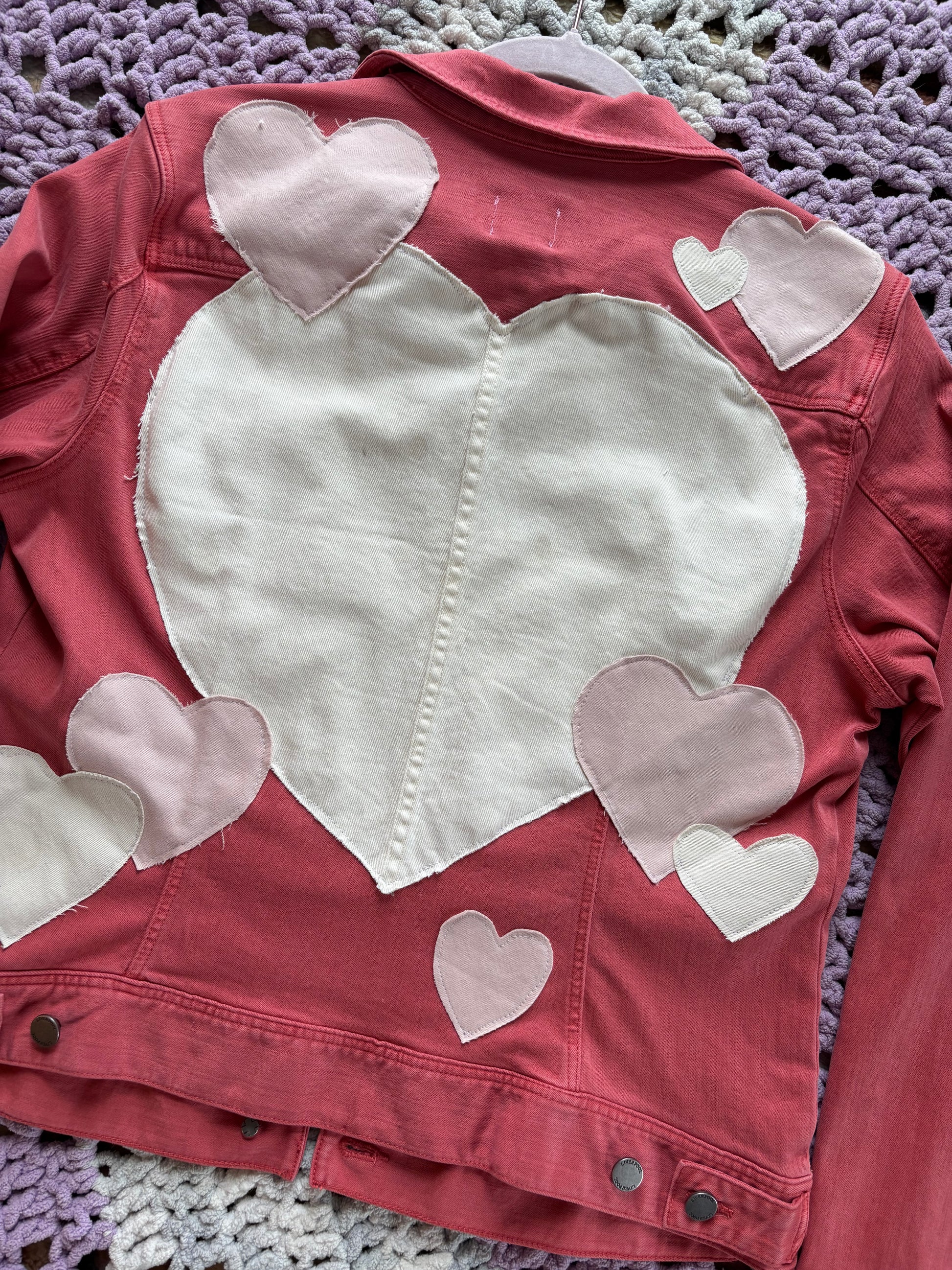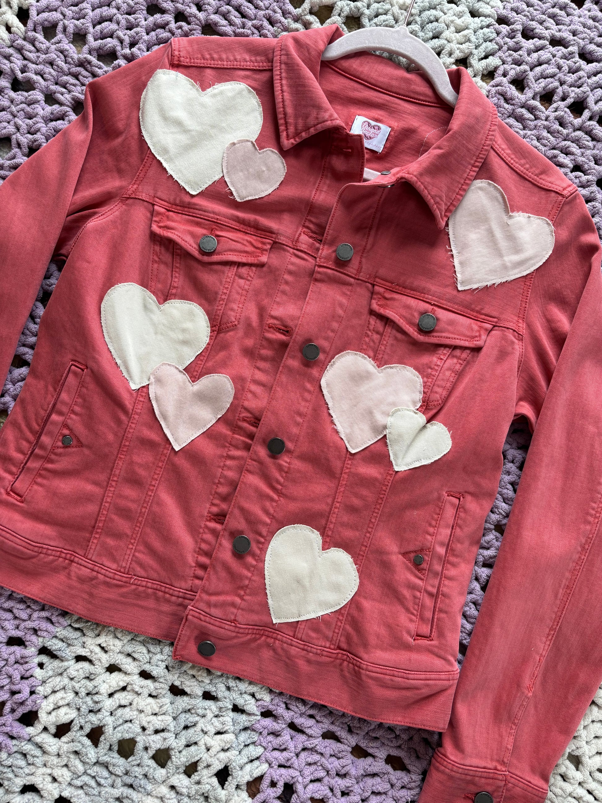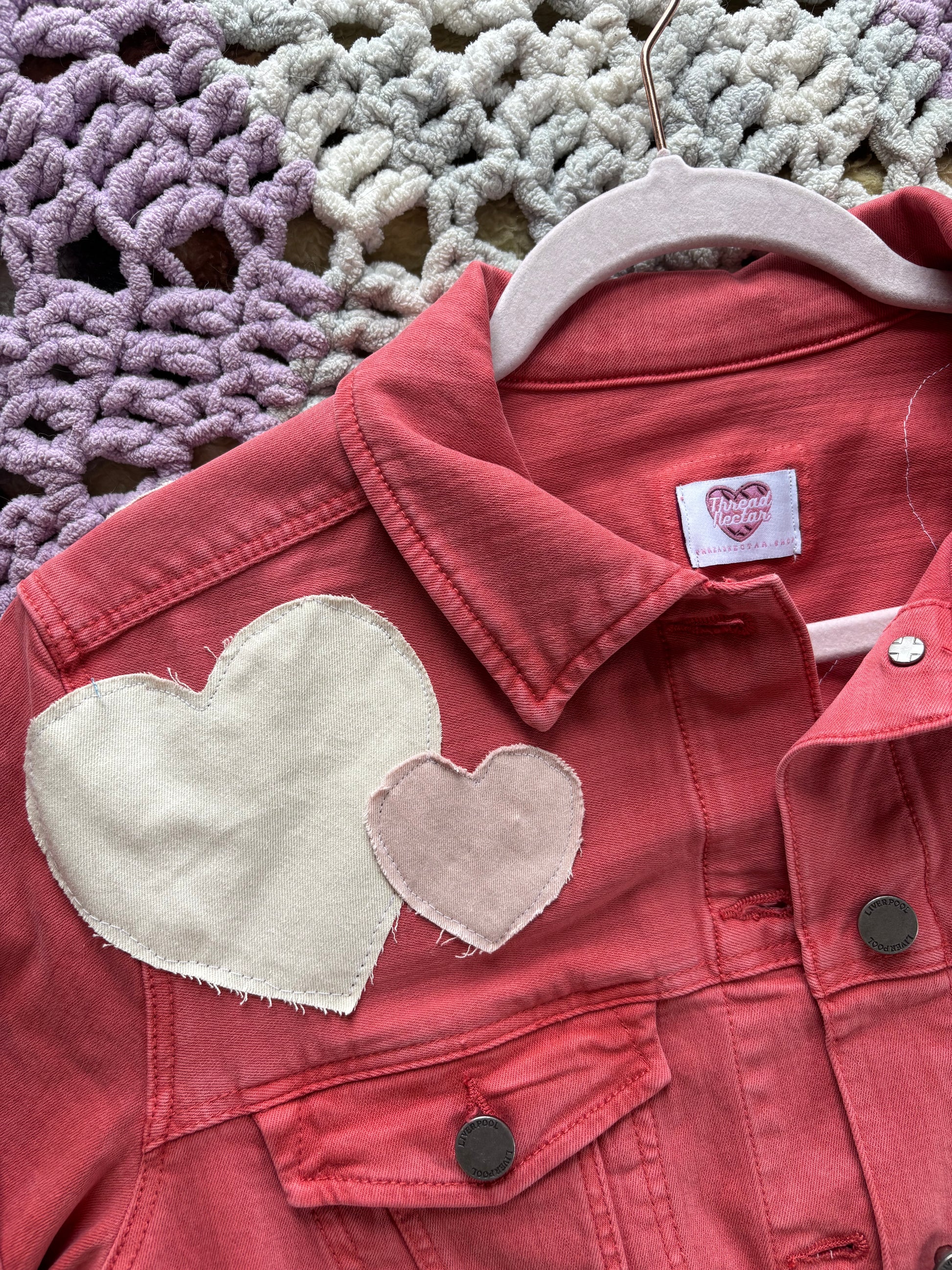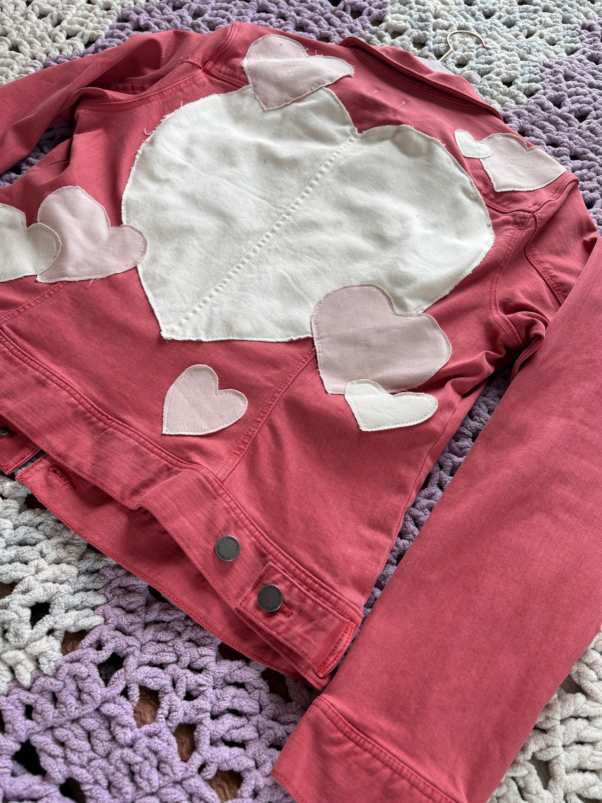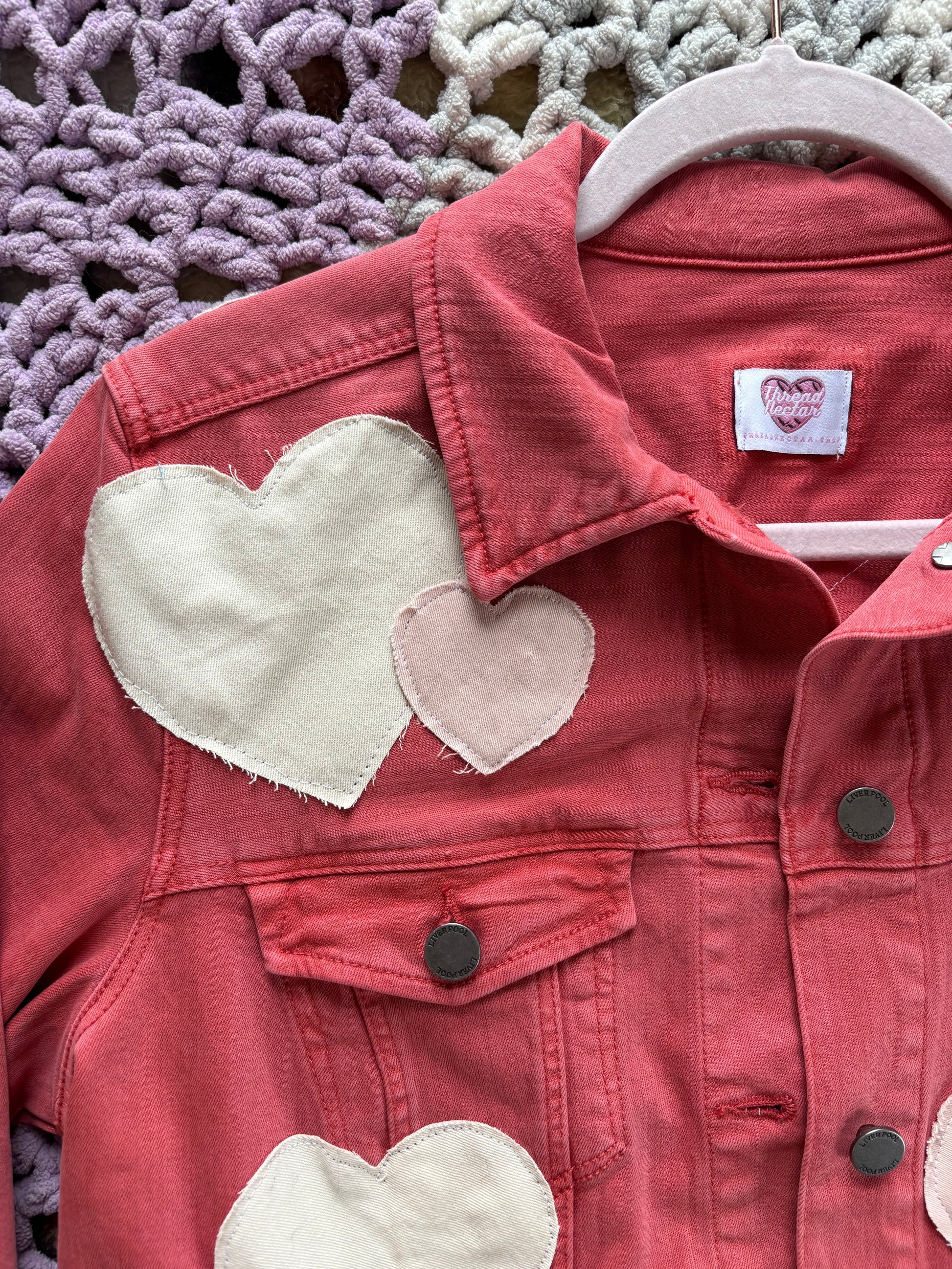 Dark Pink Denim Frayed Hearts Jacket [XL]