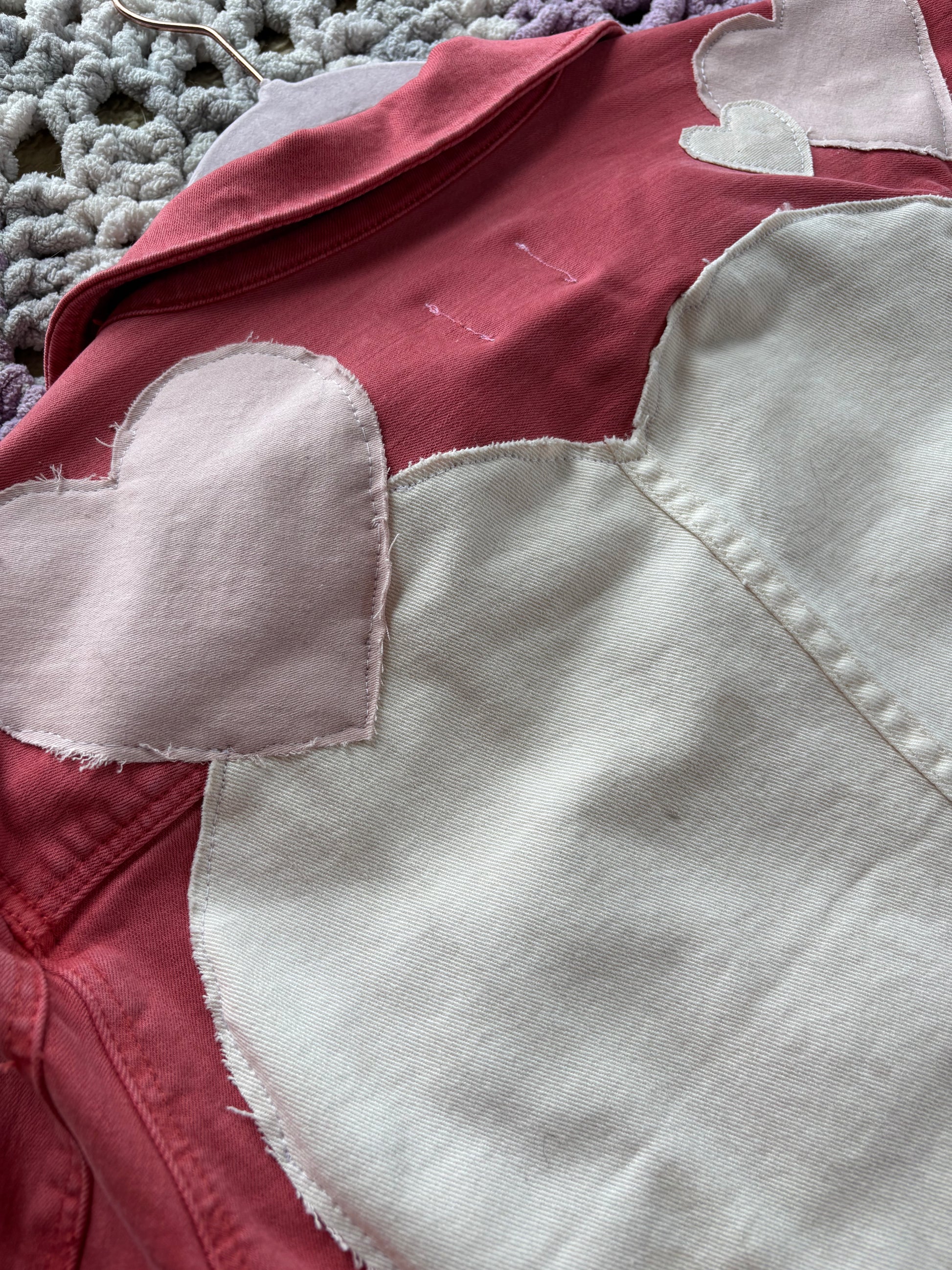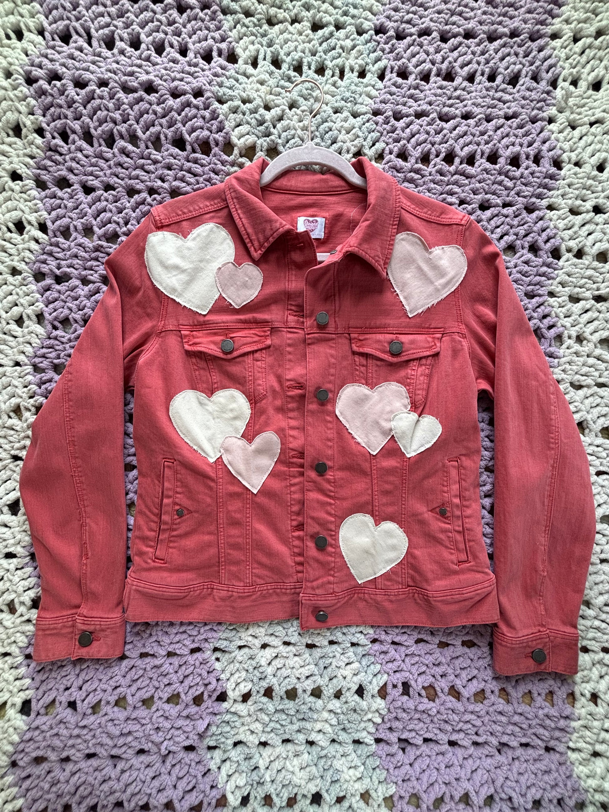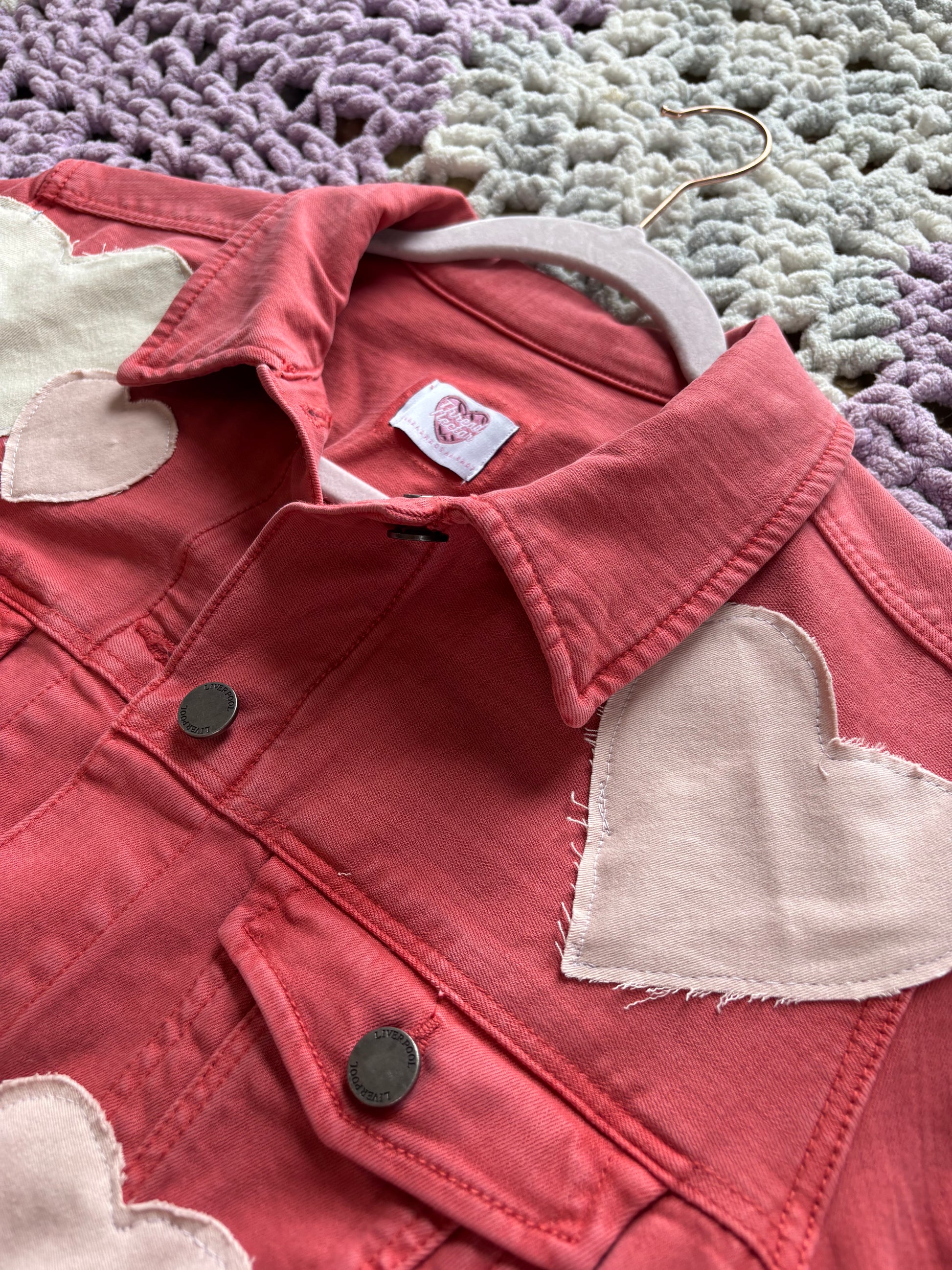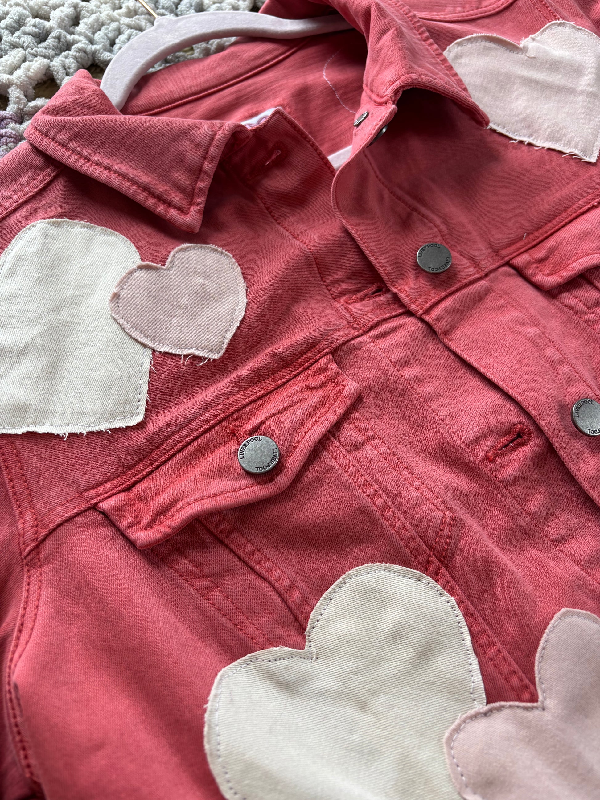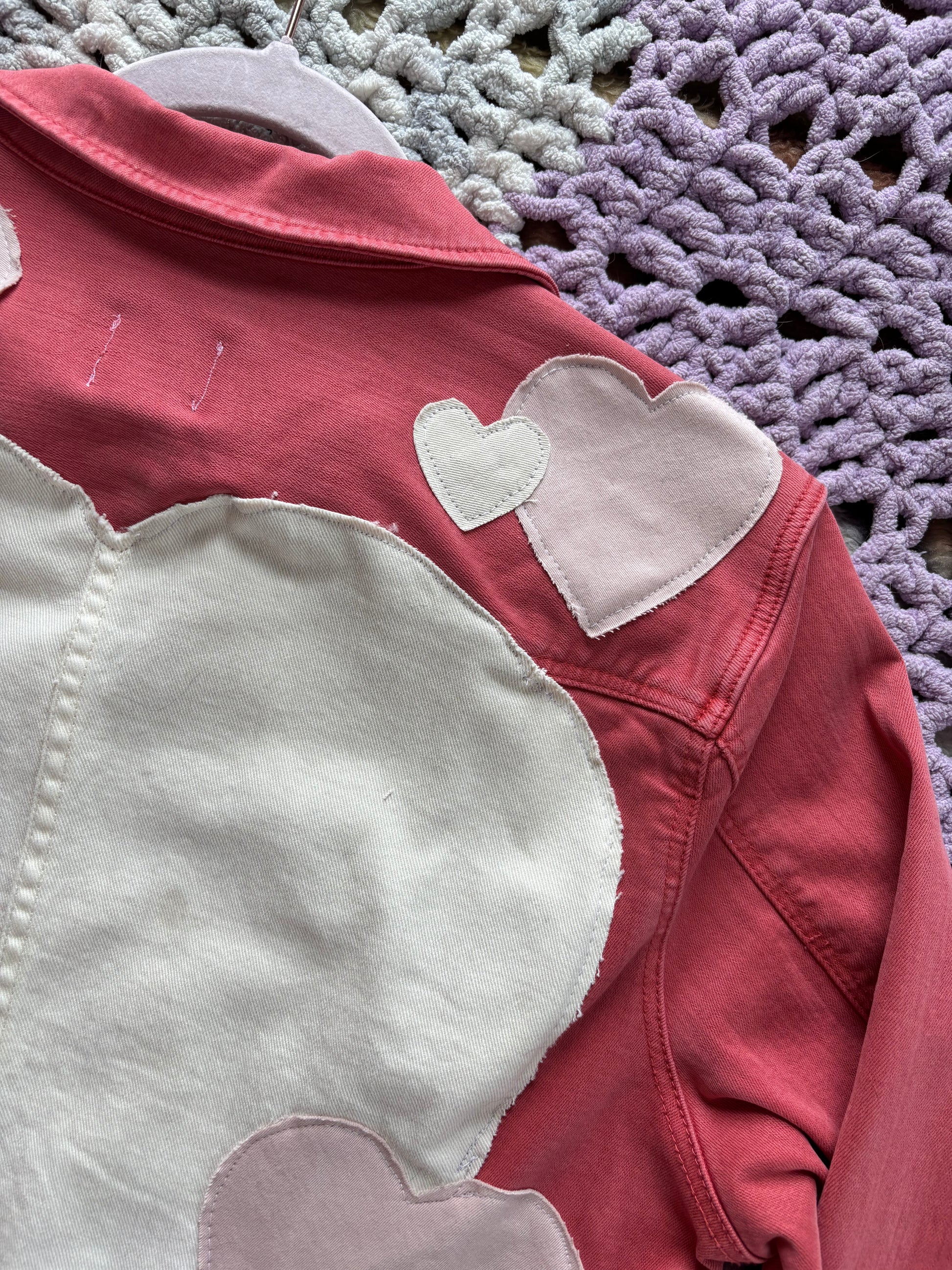 Dark Pink Denim Frayed Hearts Jacket [XL]