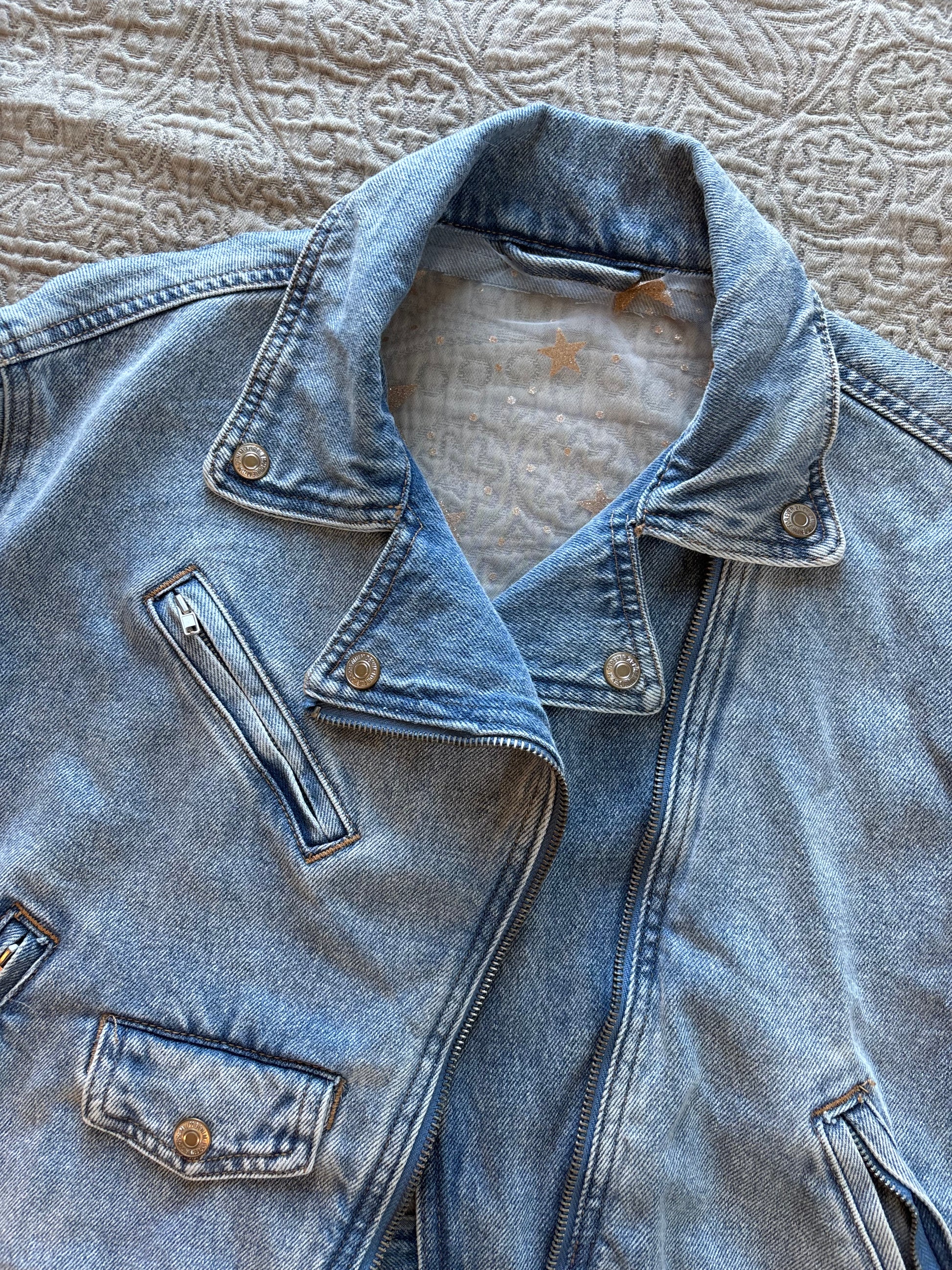 Gold Stars Light Wash Denim Bomber Jacket [XL]