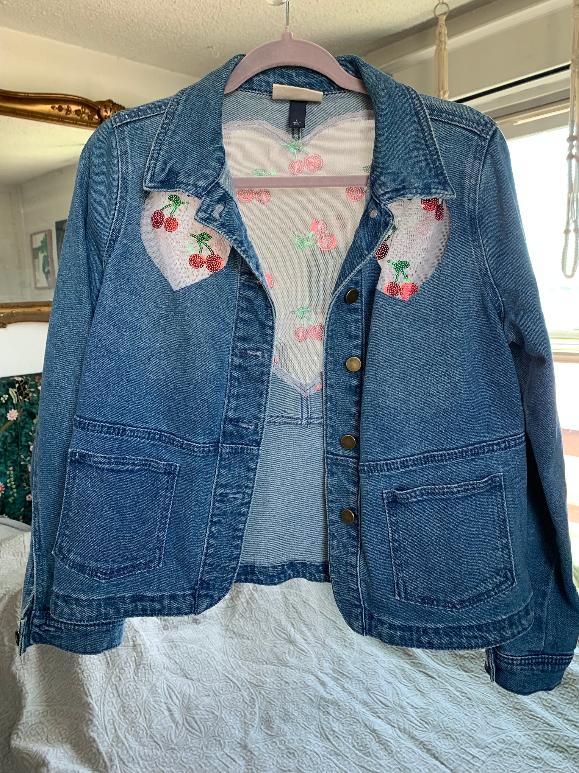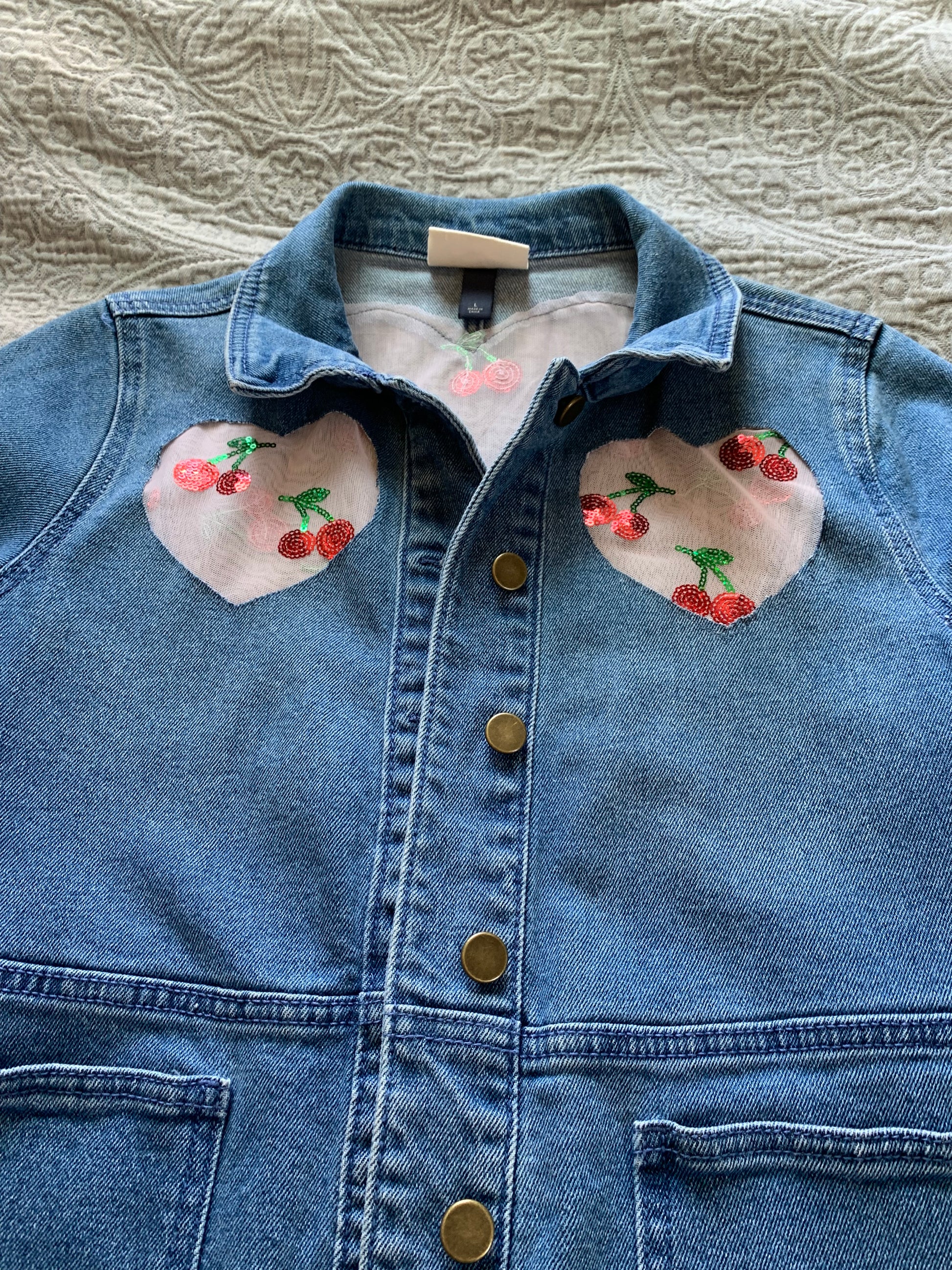 Heart Cutout Denim Cherries [L]