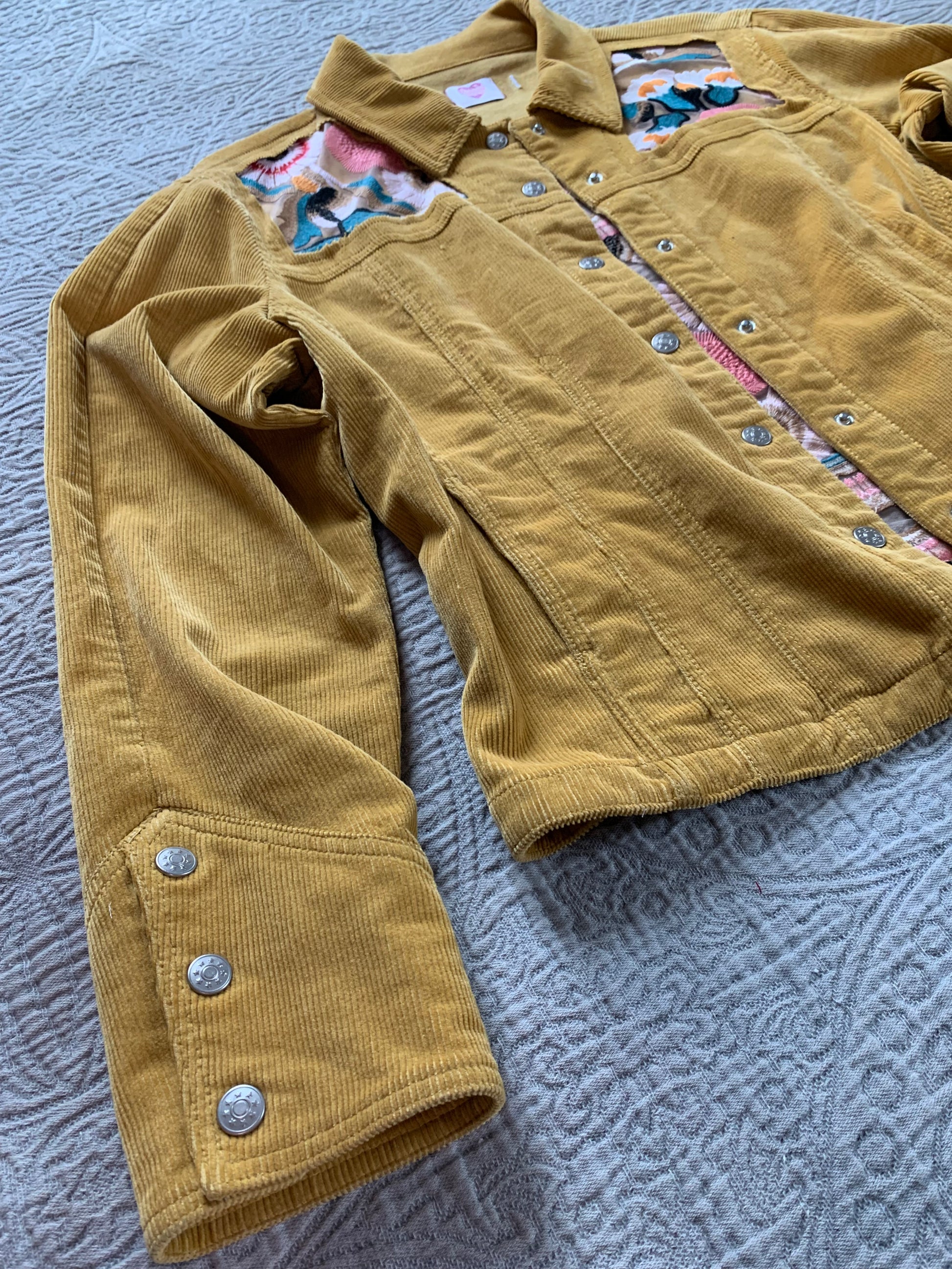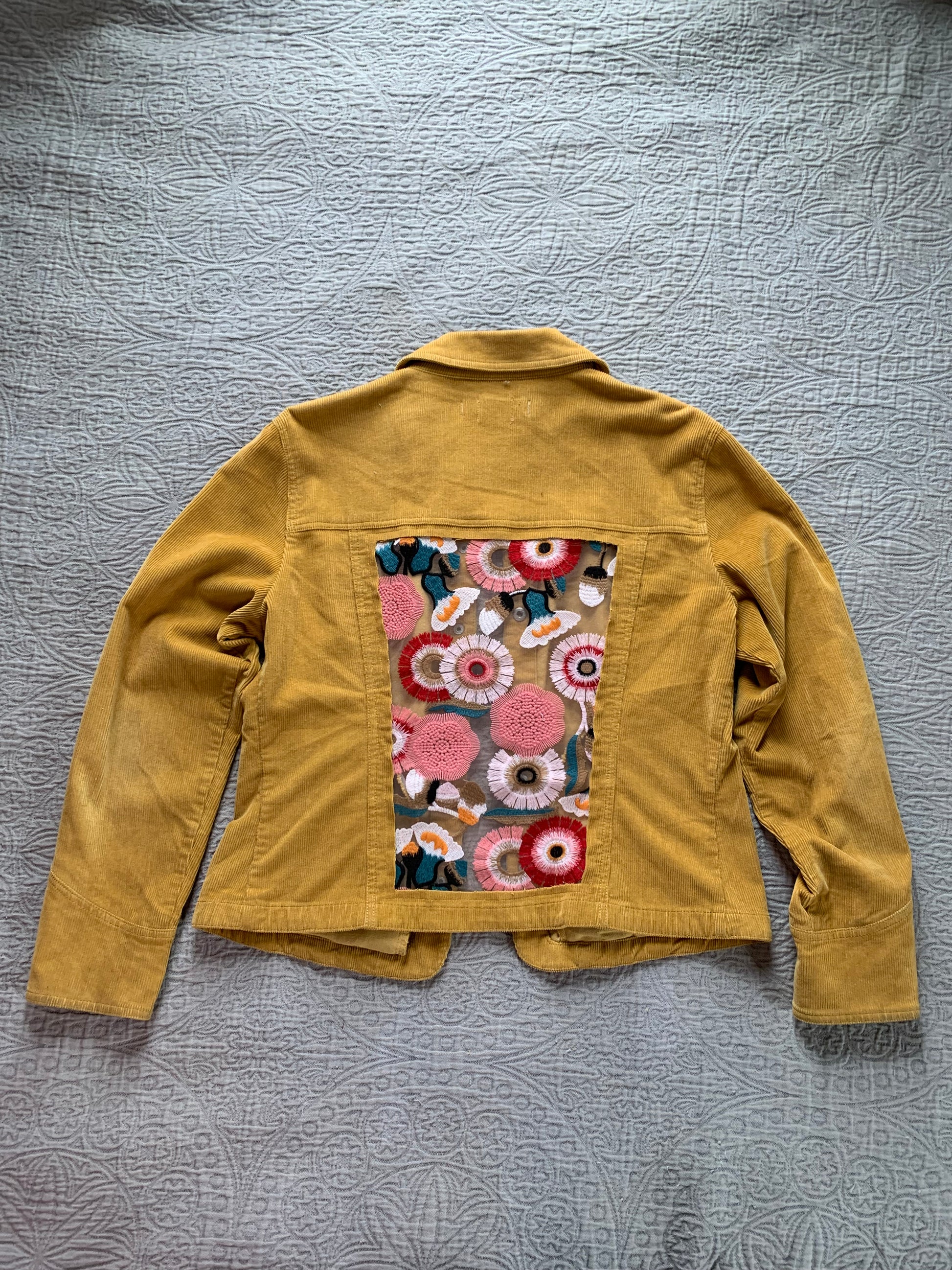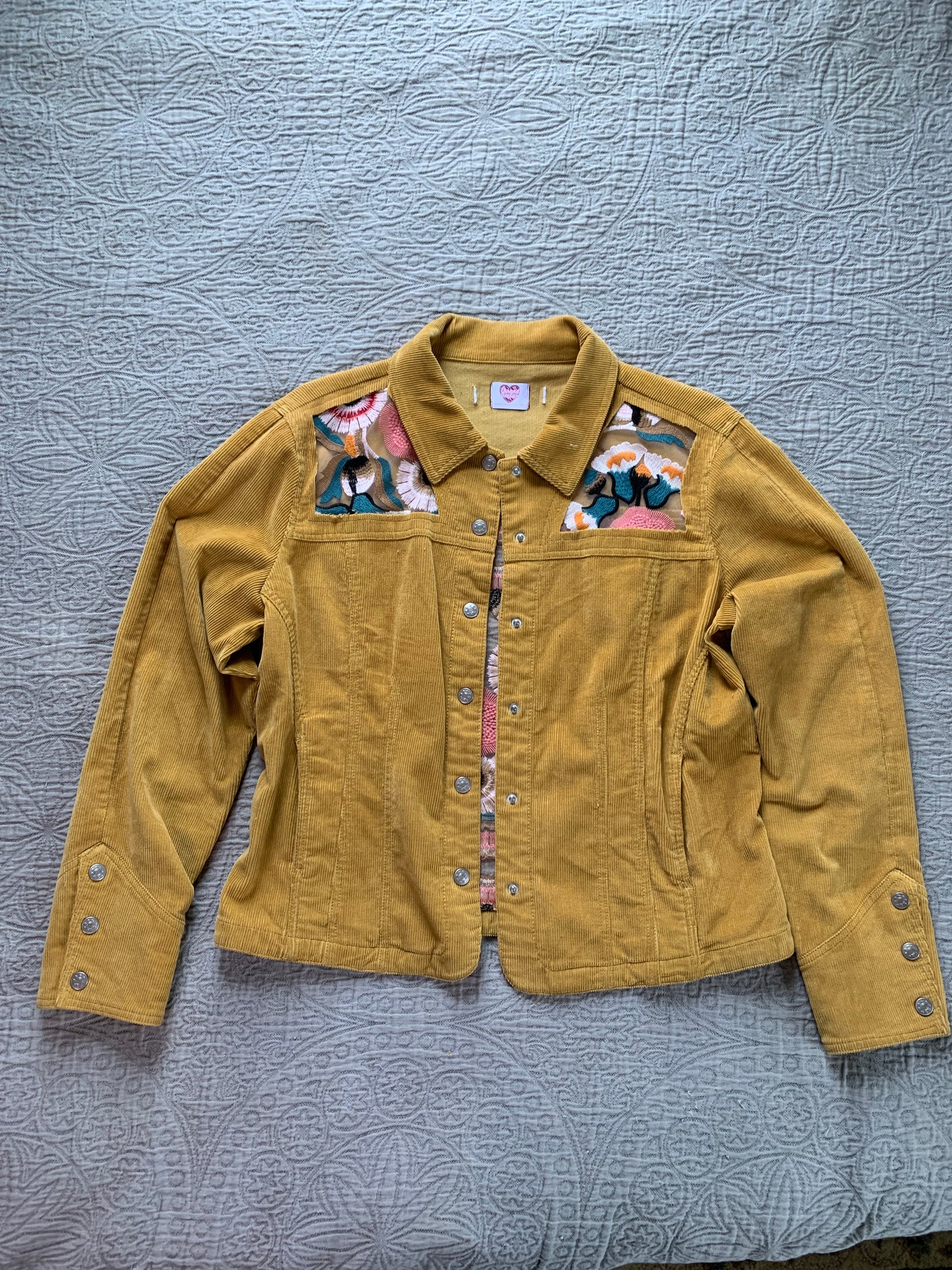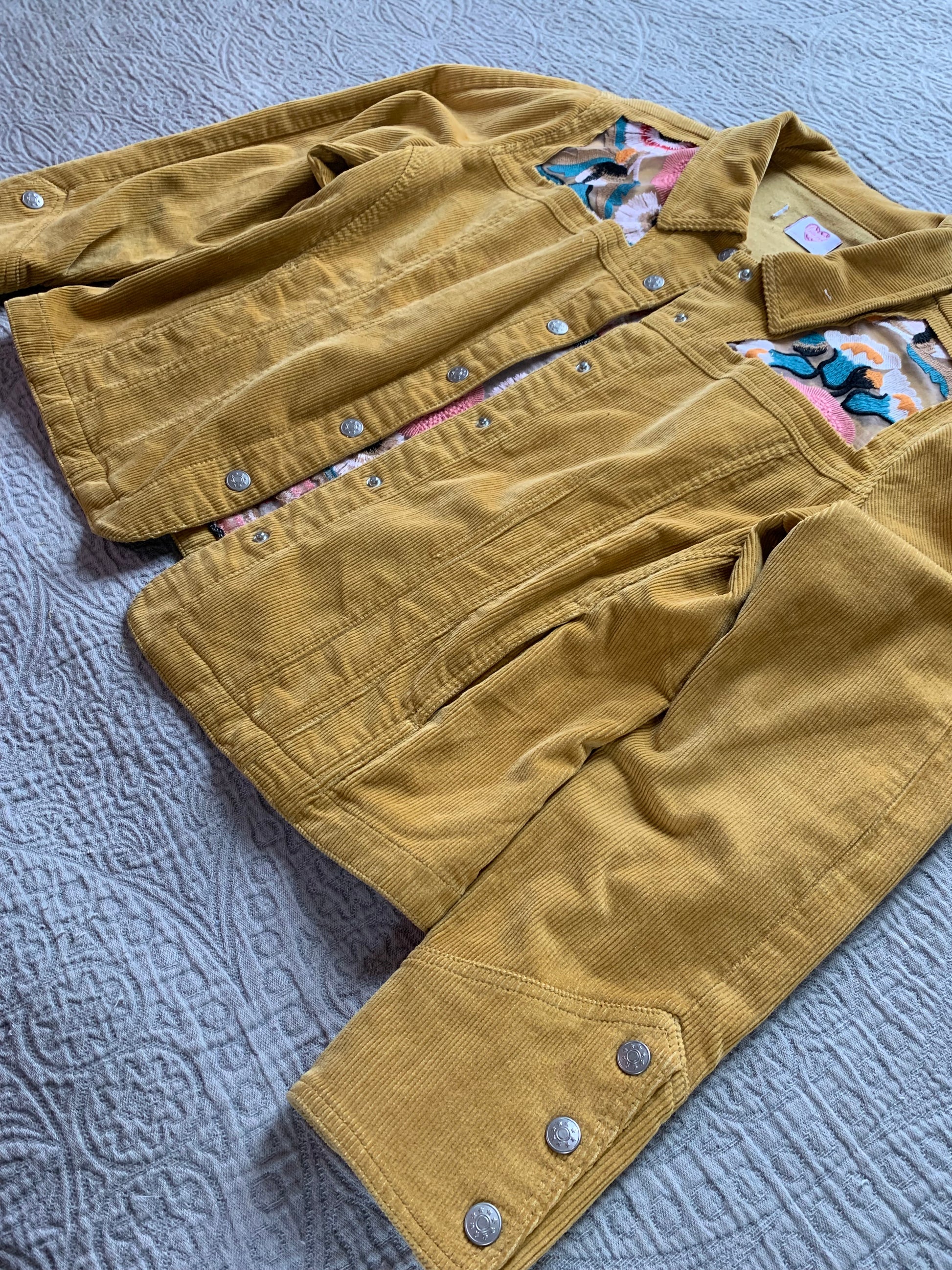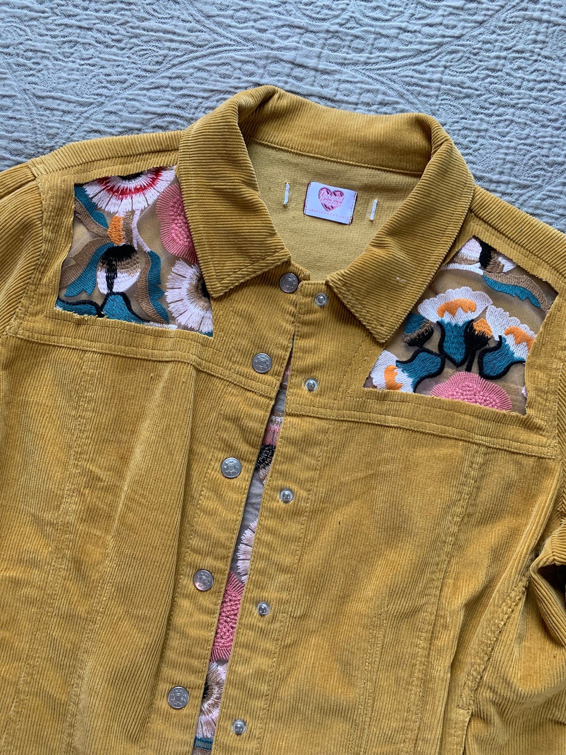 Mustard Corduroy Peach Floral Jacket [XL]
