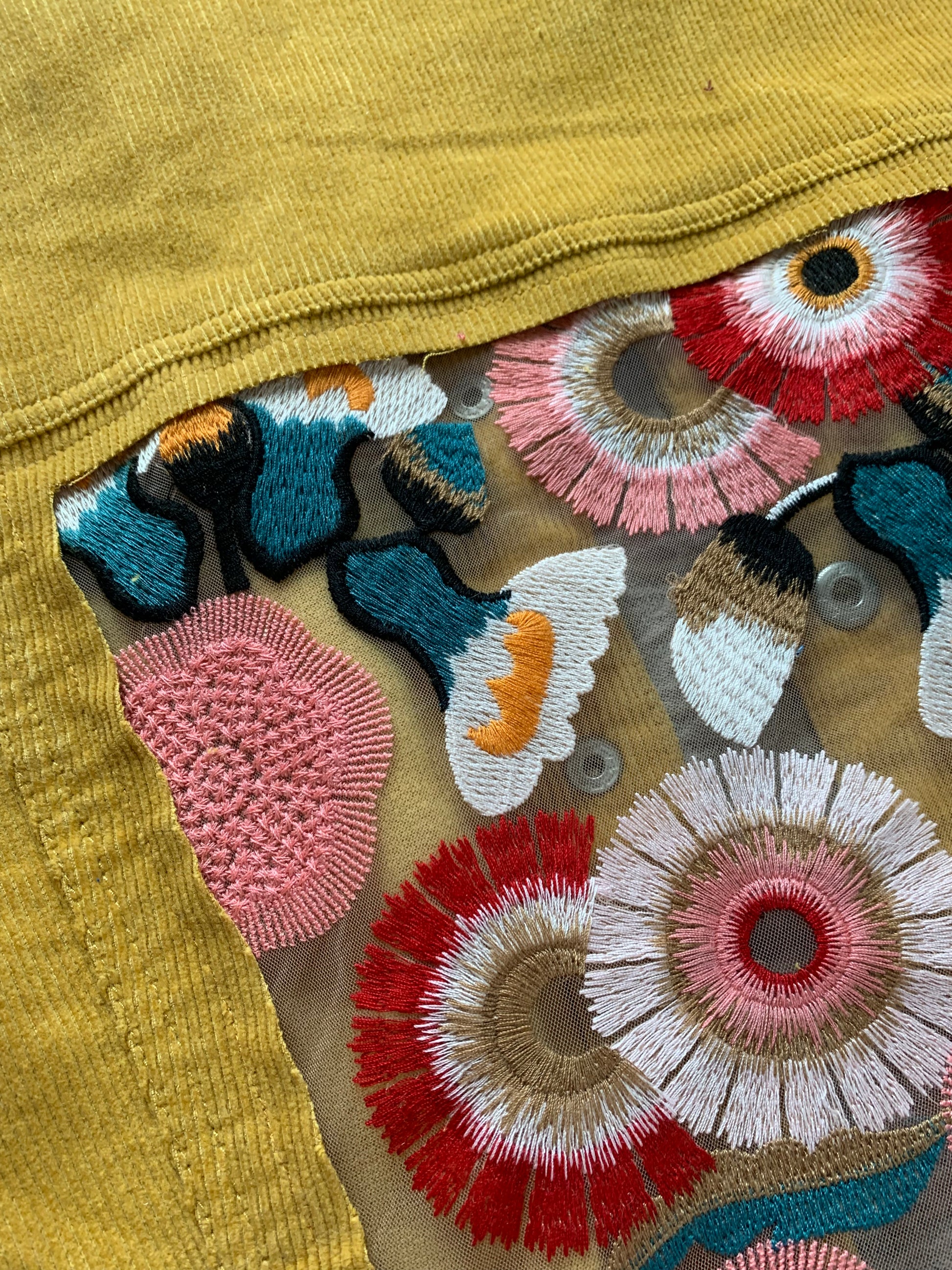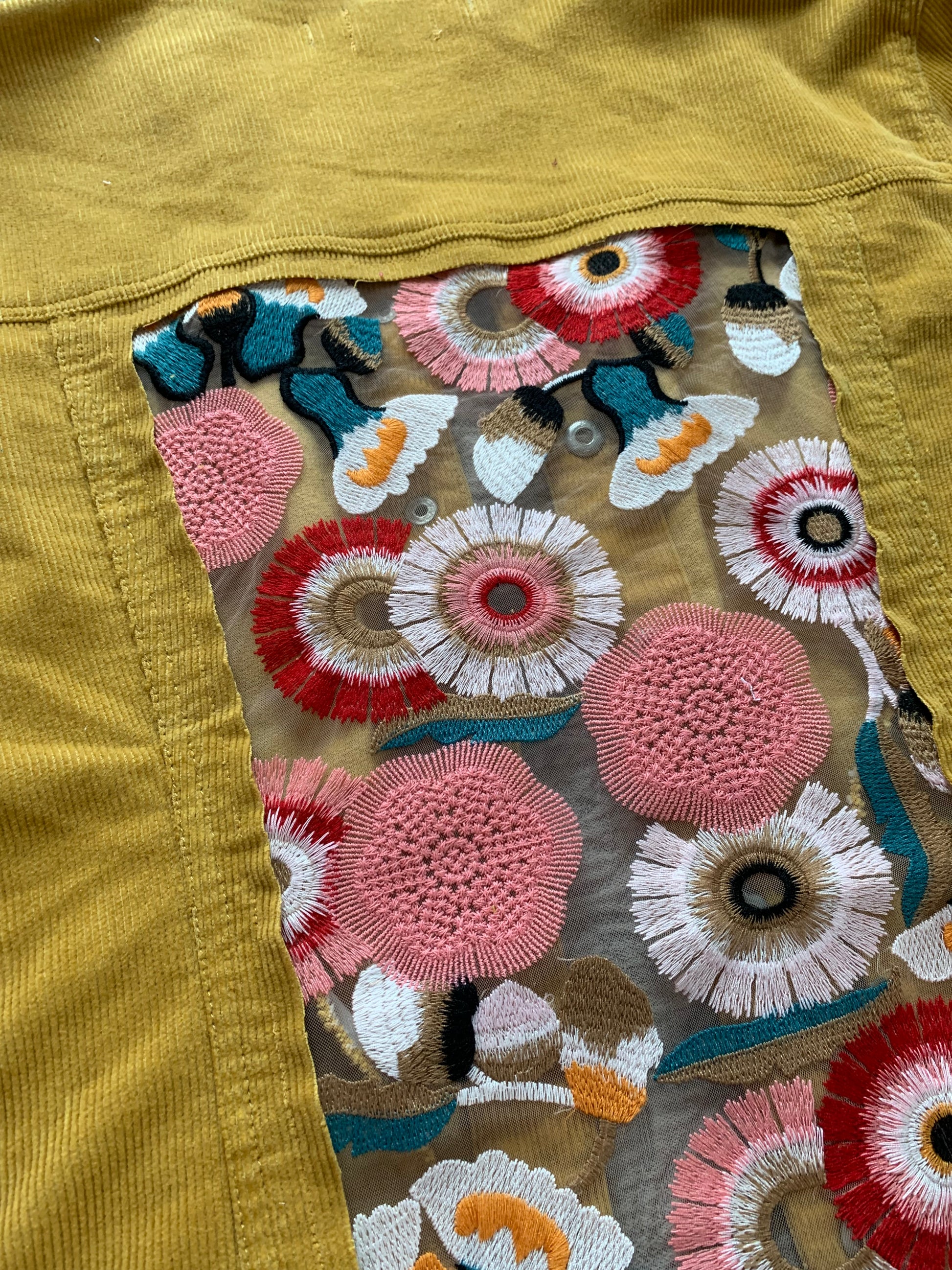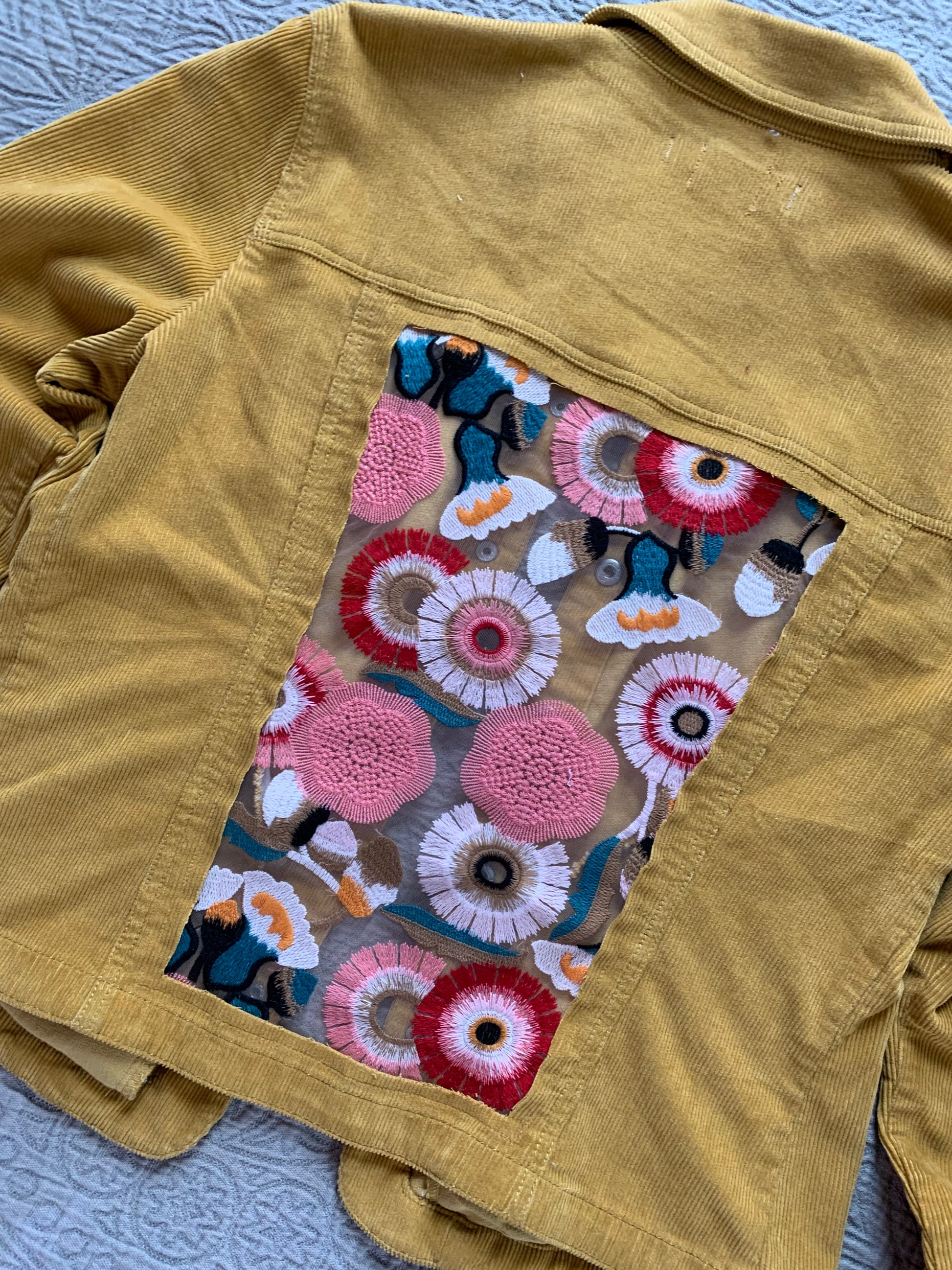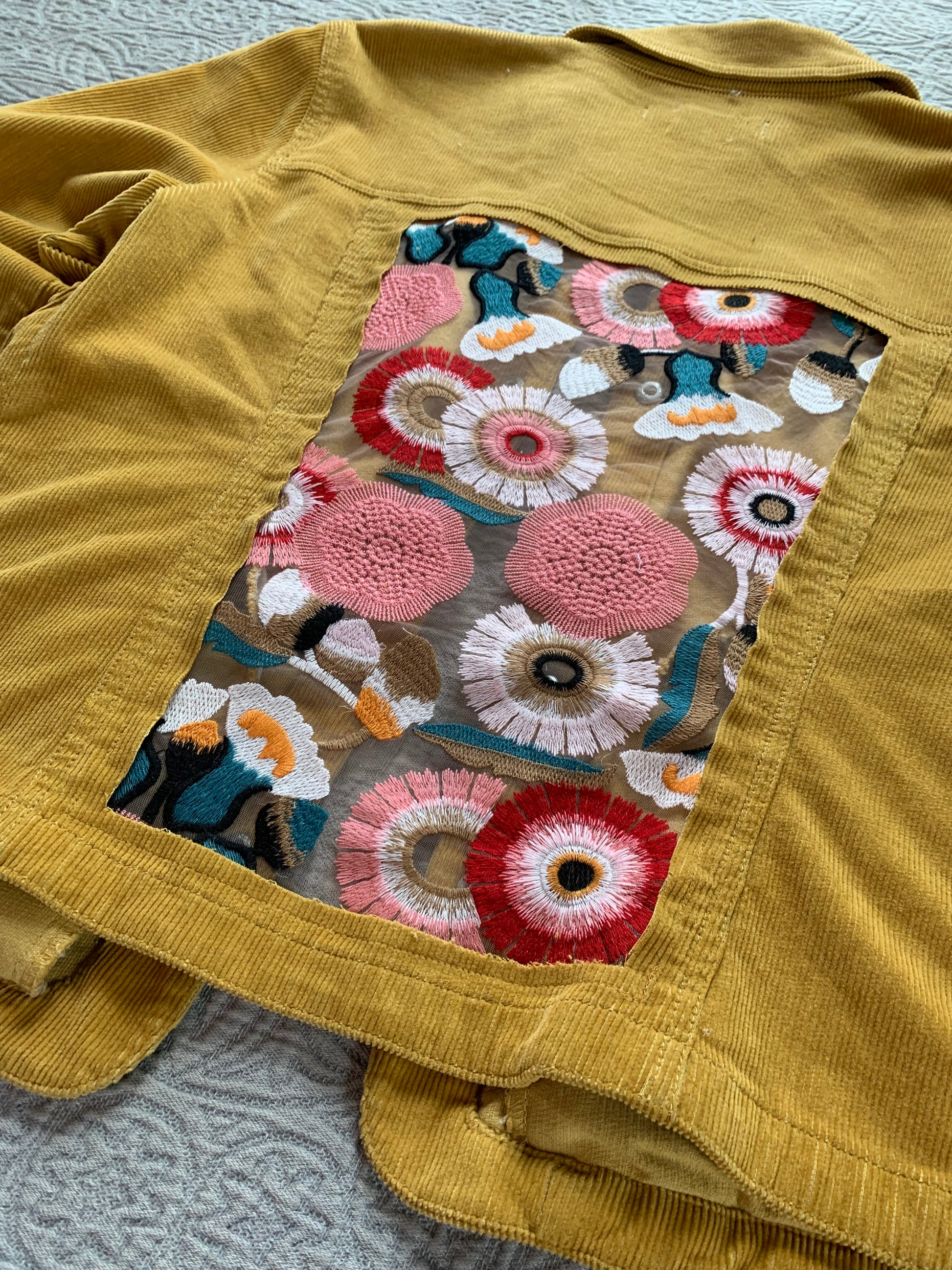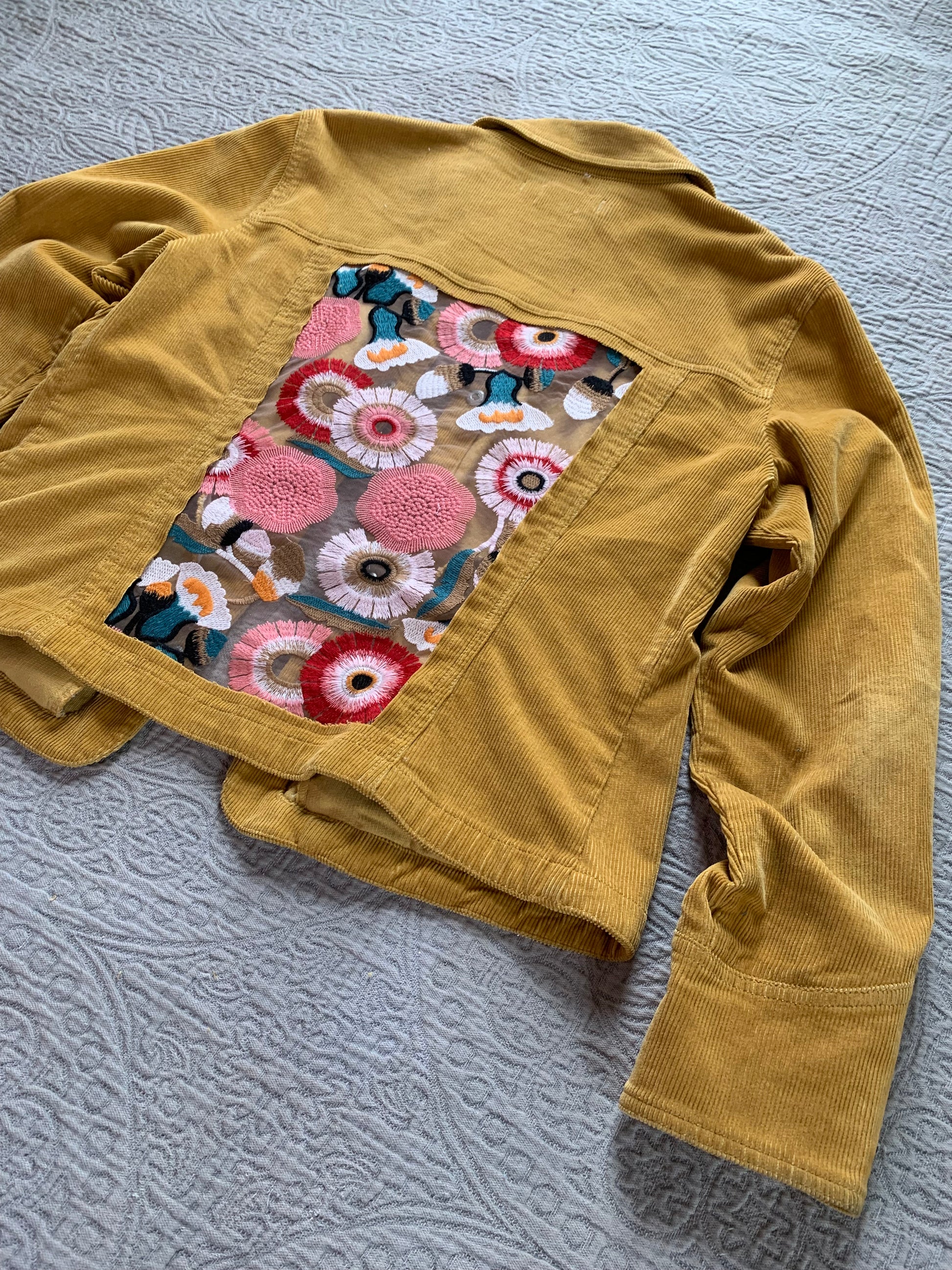 Mustard Corduroy Peach Floral Jacket [XL]