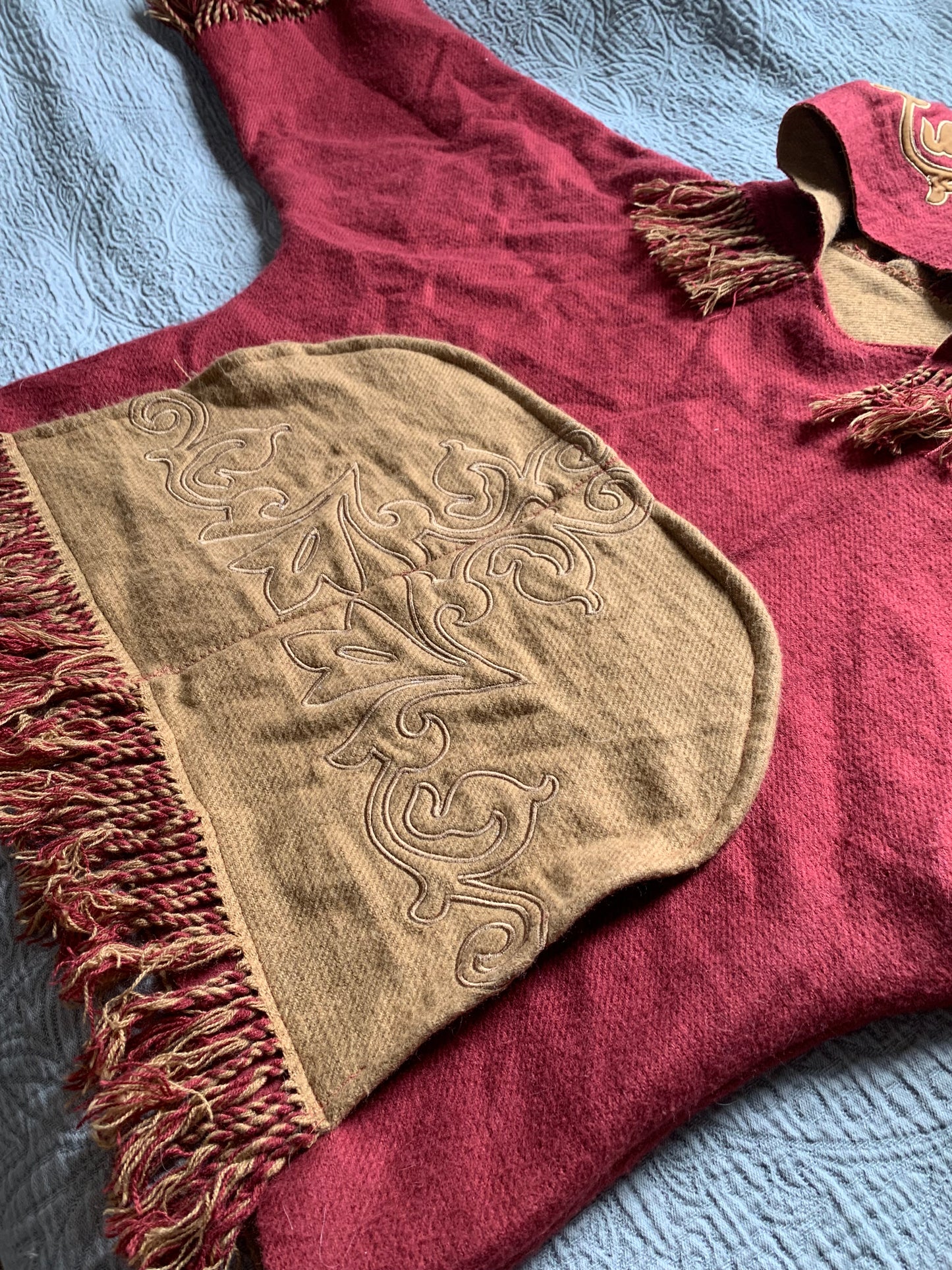 Red and Gold Embroidered Blanket Hoodie