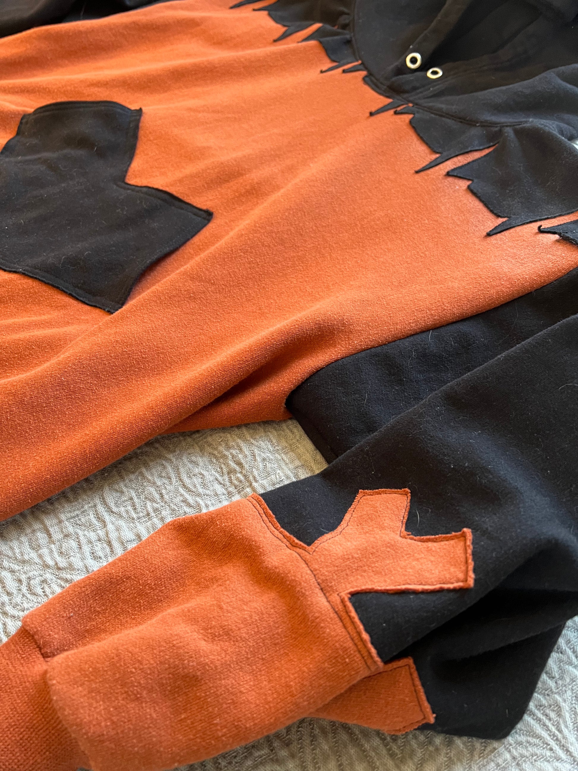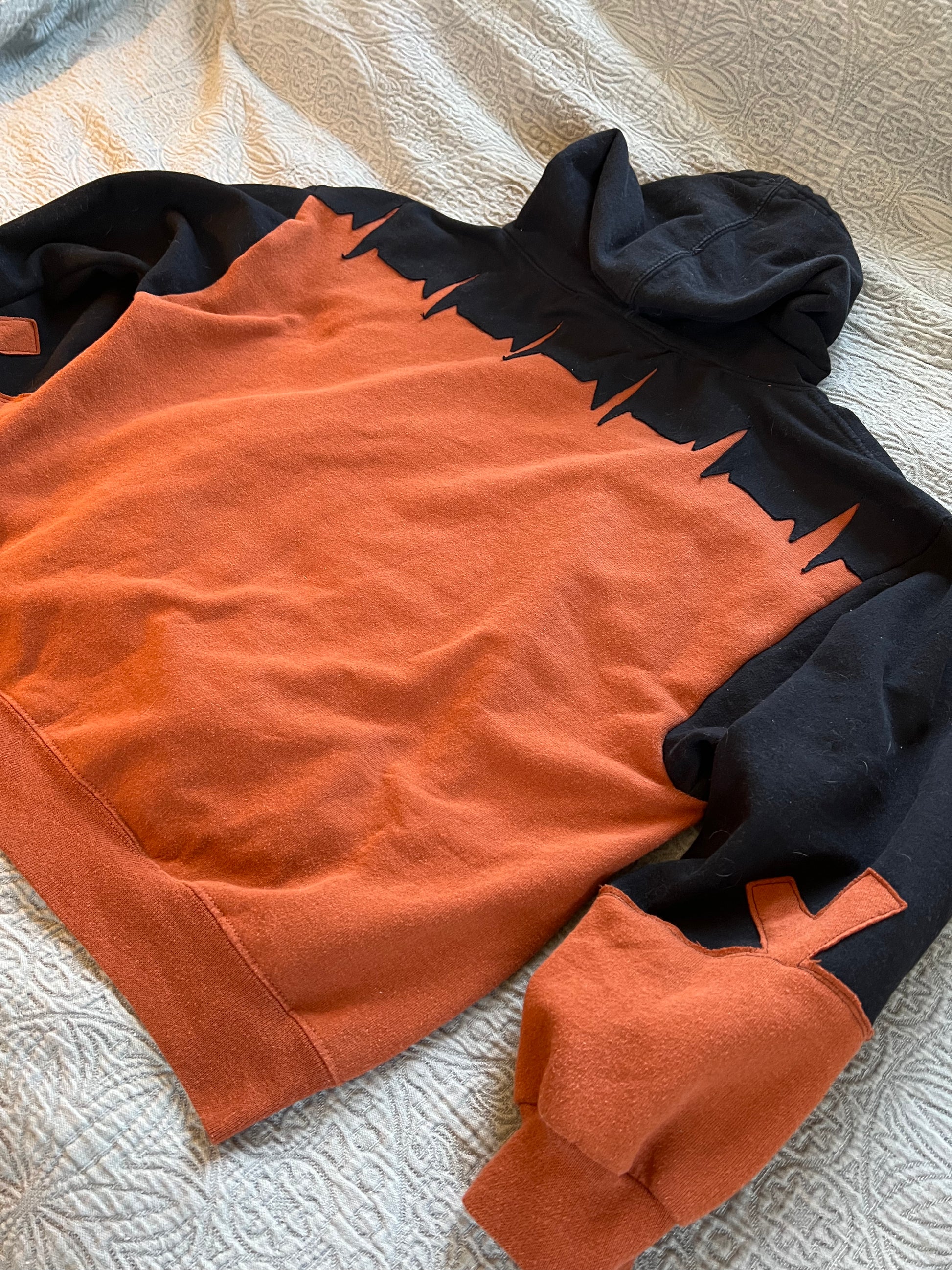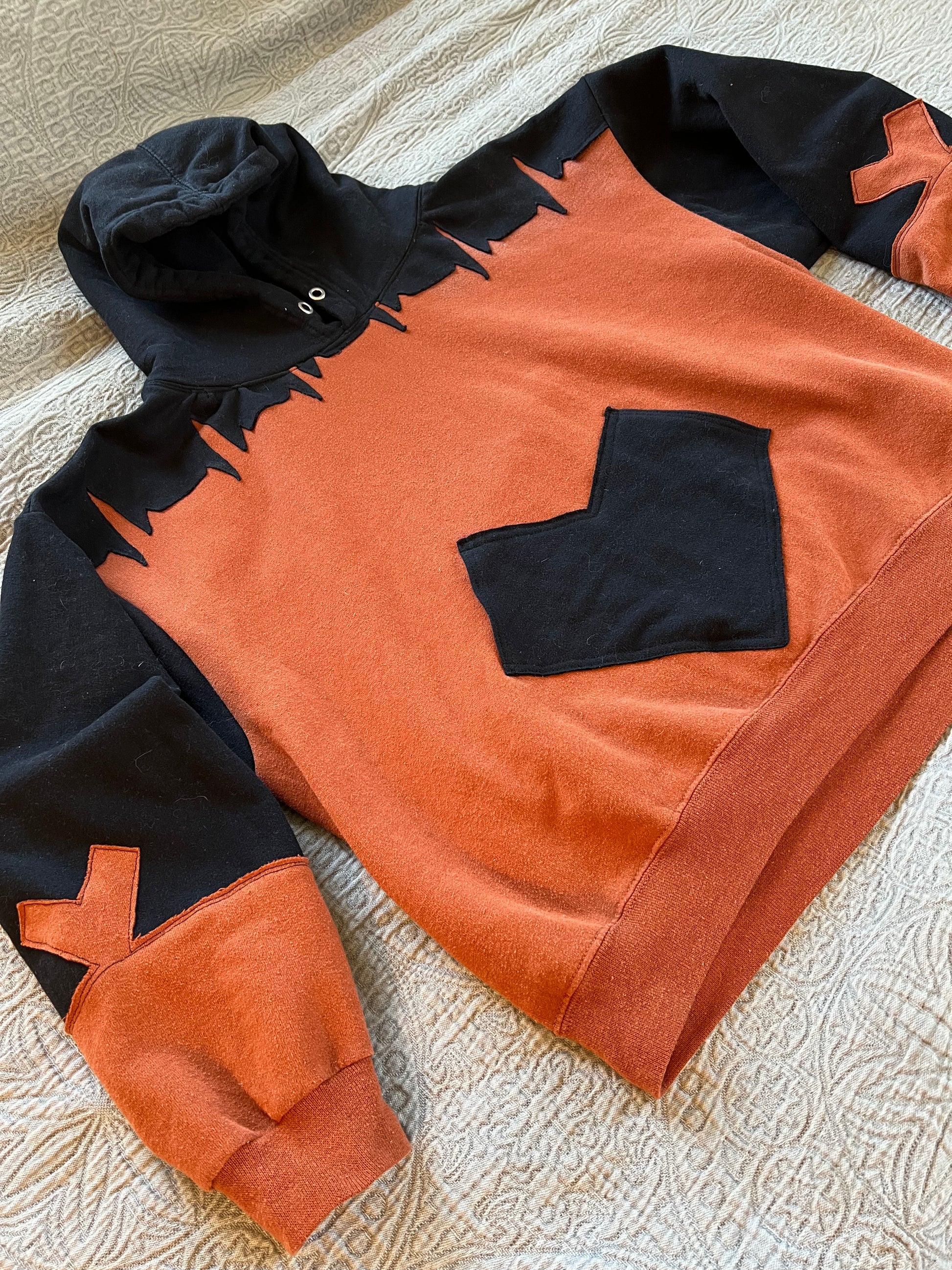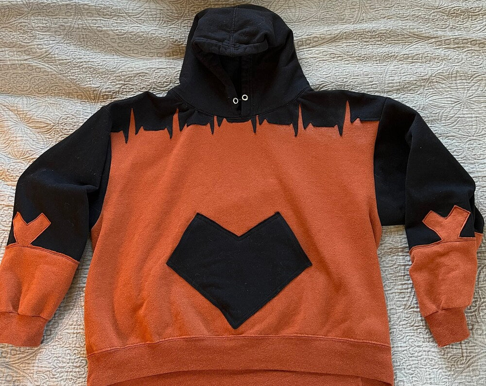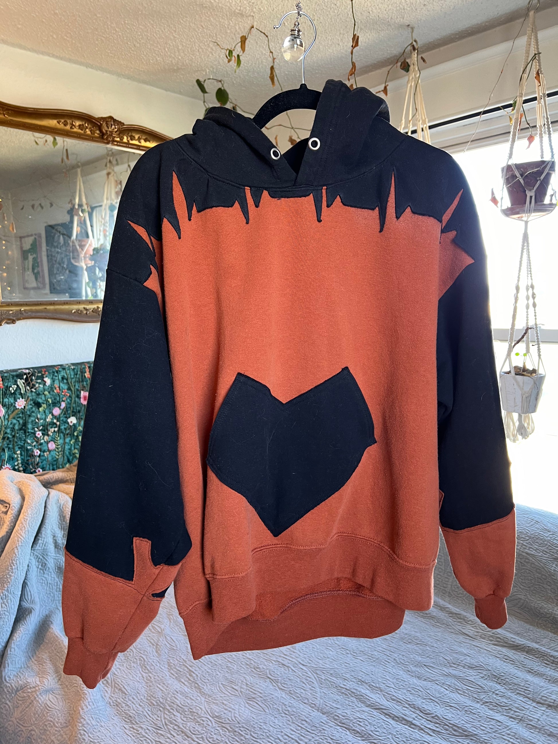 EKG Heartbeat Hoodie made from thrifted materials and lots of love. Size XL and a functional heart pocket on the front.