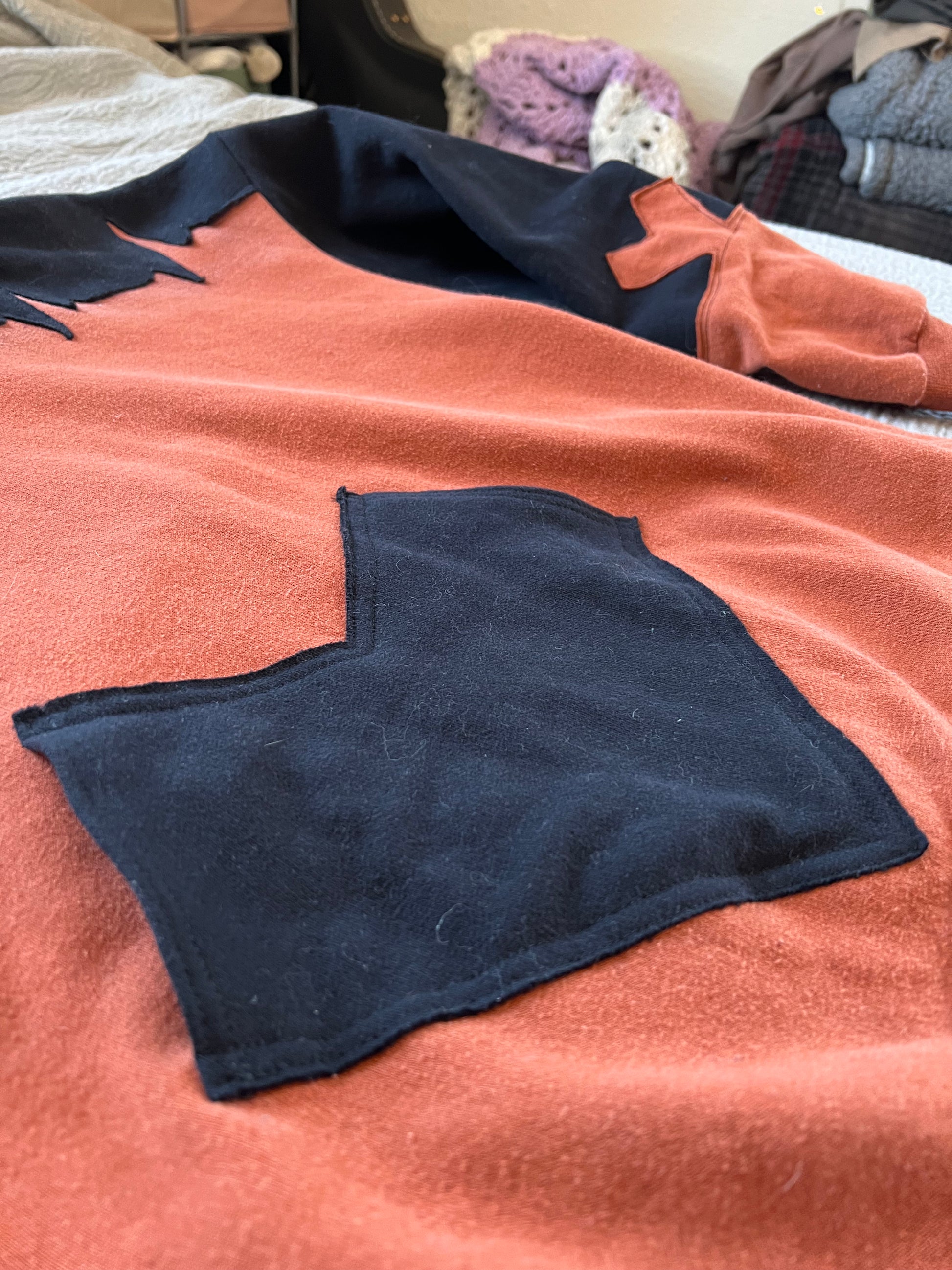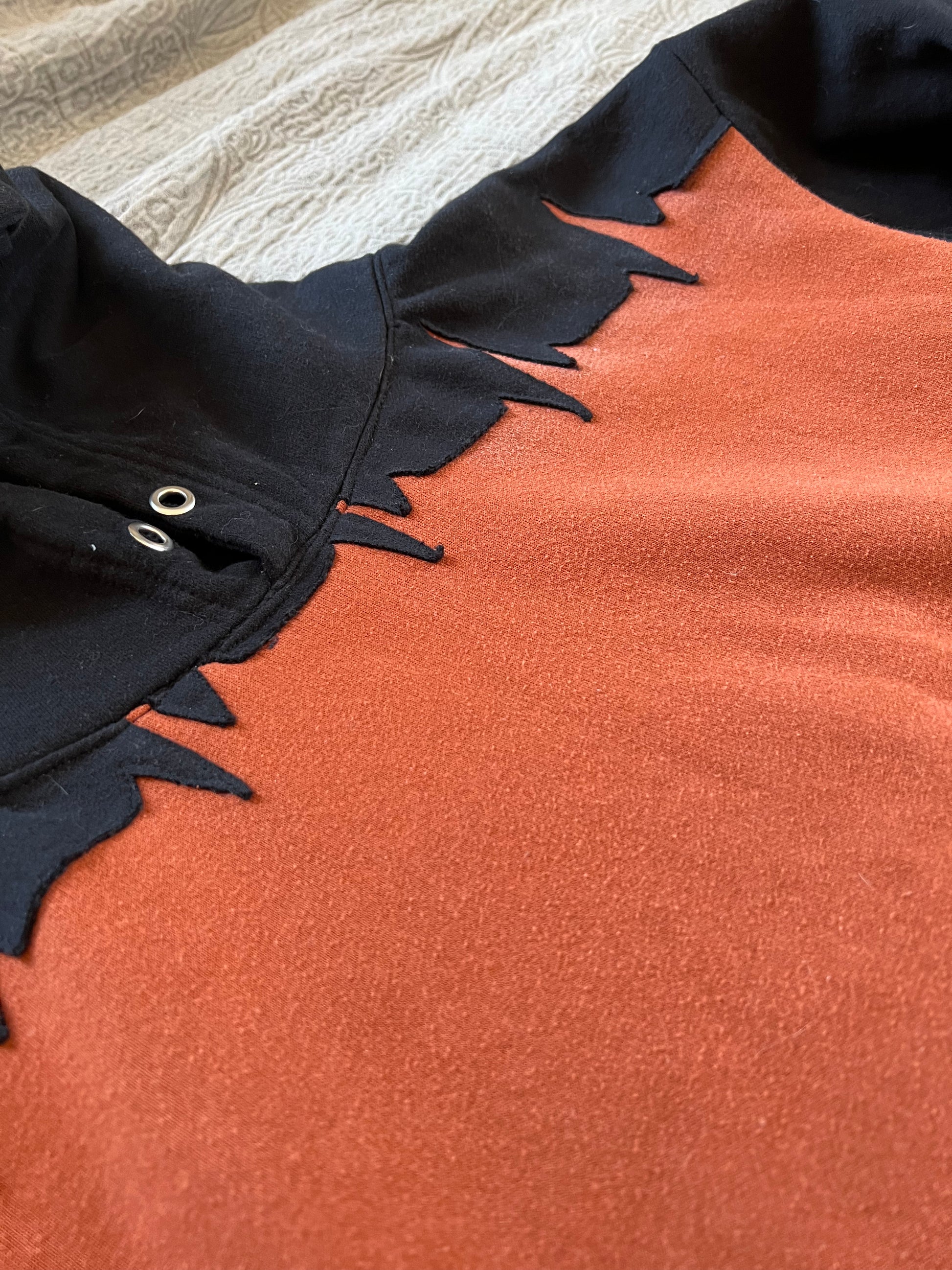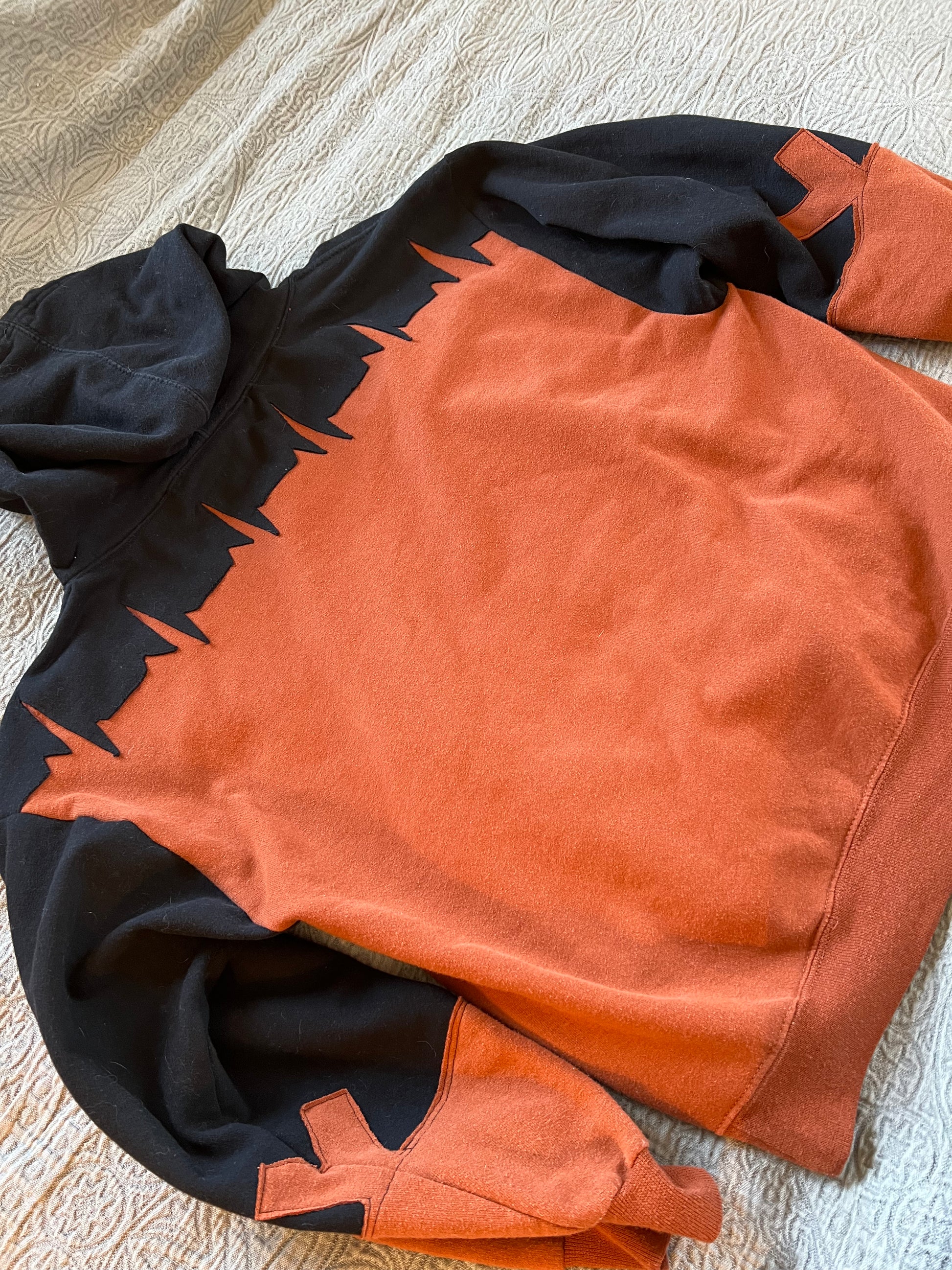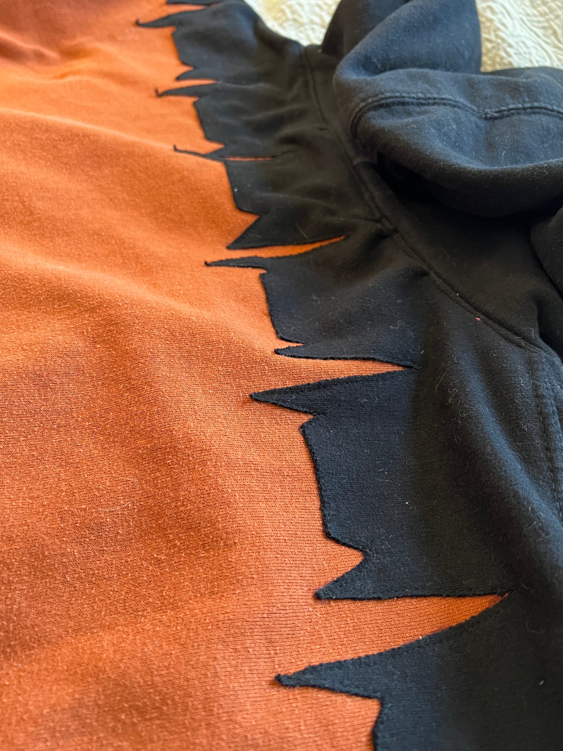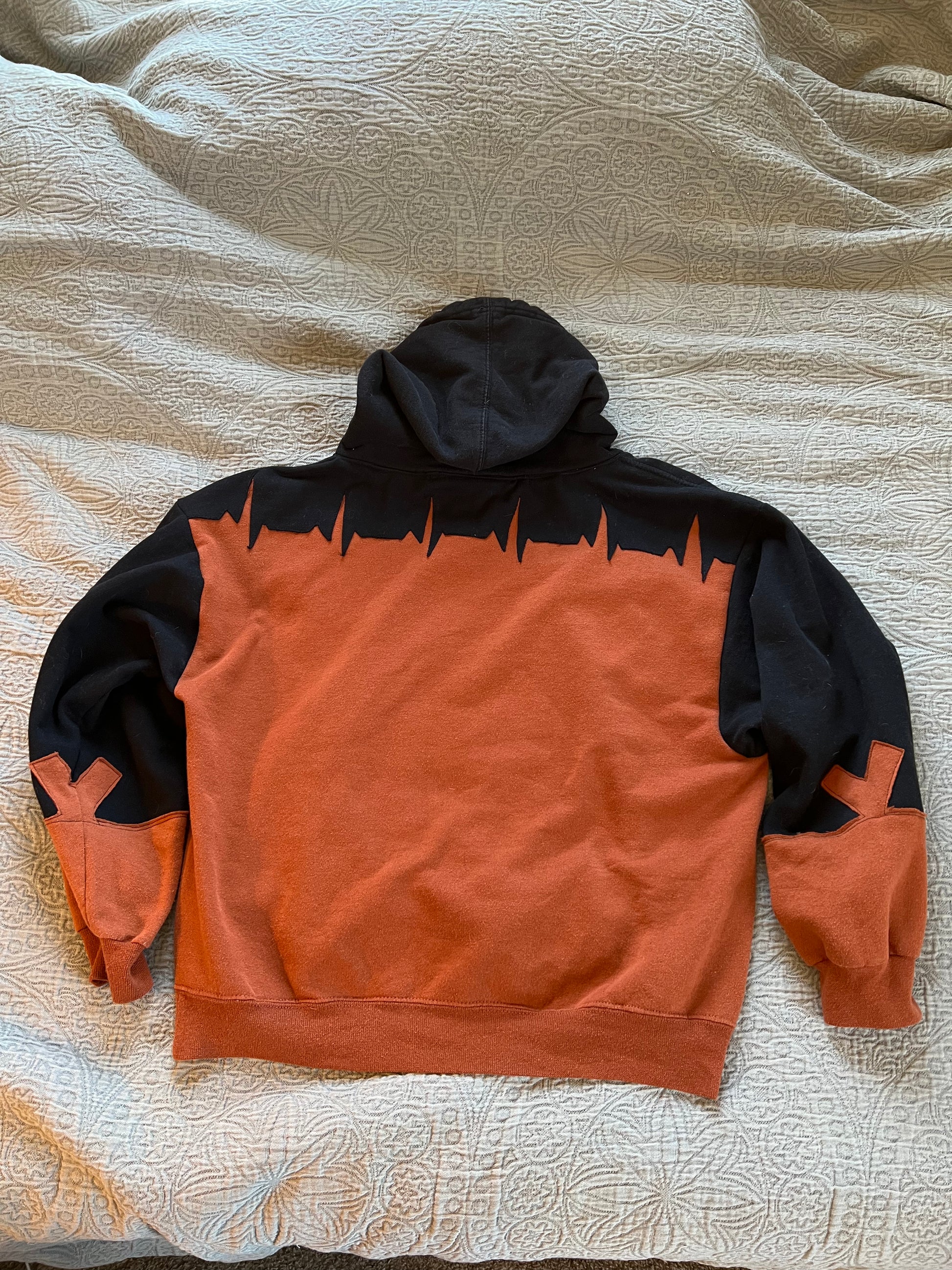 EKG Heartbeat Hoodie made from thrifted materials and lots of love. Size XL and a functional heart pocket on the front.